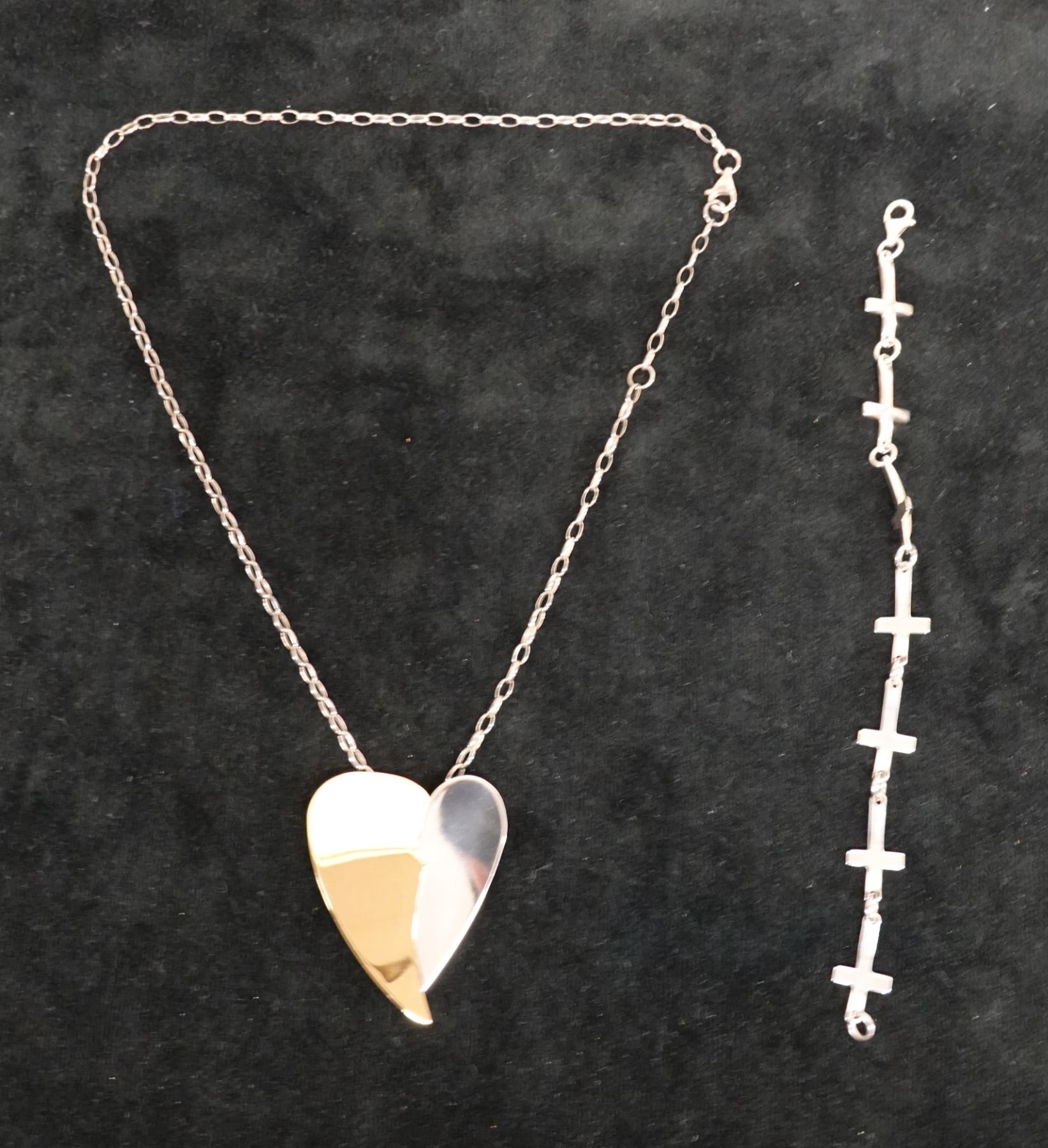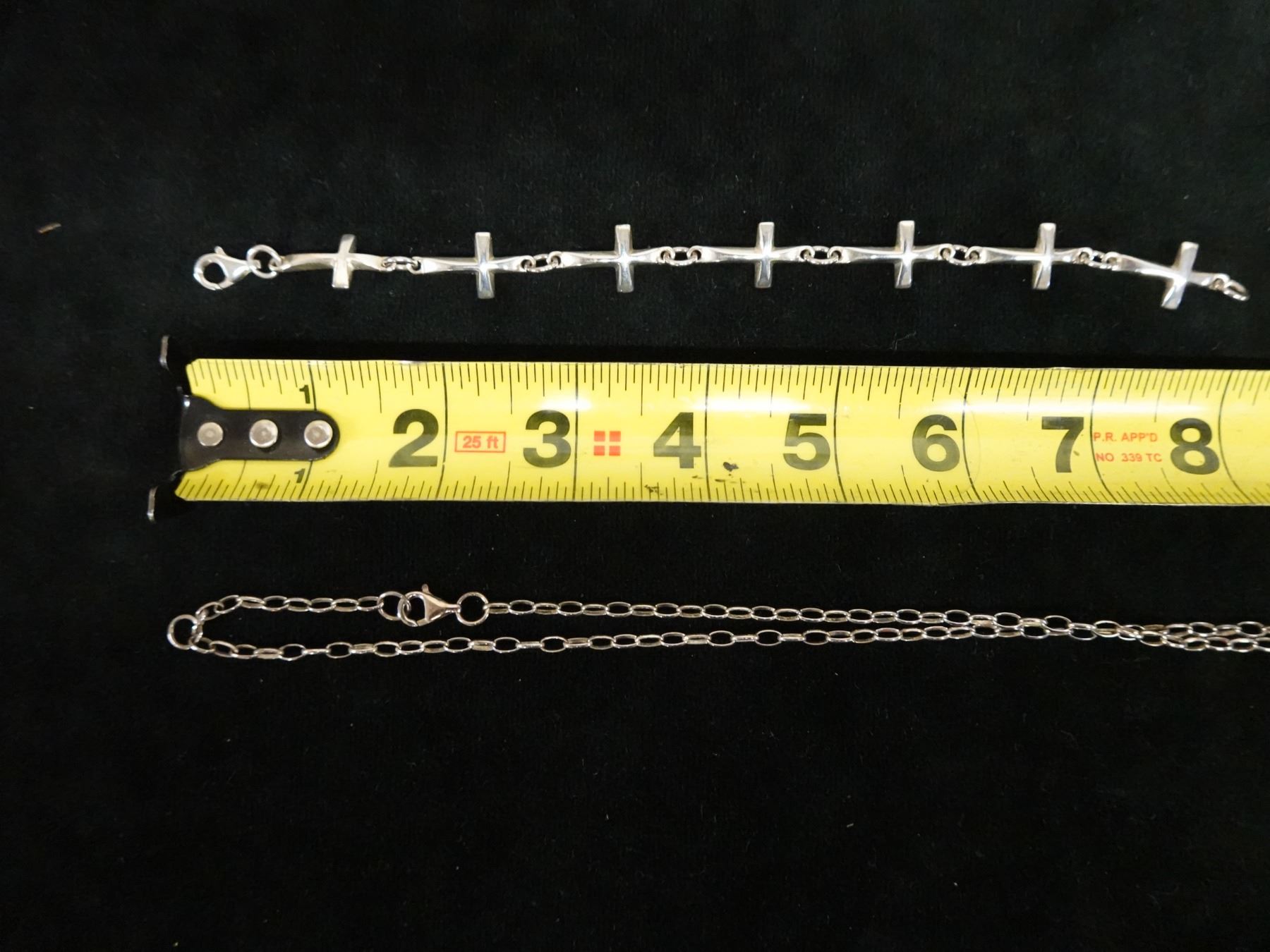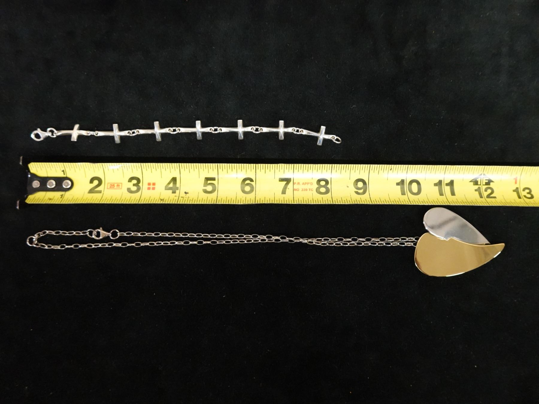 RLM Studio Sterling Silver 925 Necklace w/ Heart Pendant & Cross Bracelet, Misc Sizes