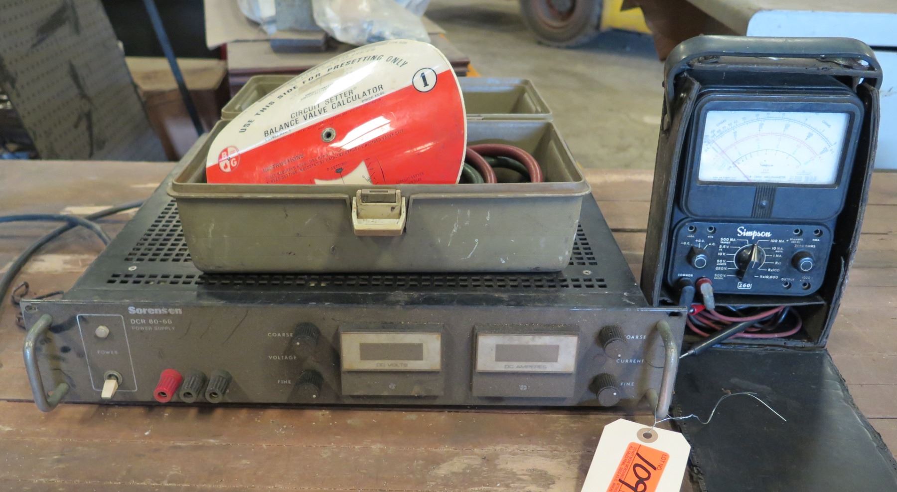 Simpson 260 Series Multimeter, Bell & Gossett ITT Fluid Meter, Sorensen DCR 80-6B Power Supply, etc