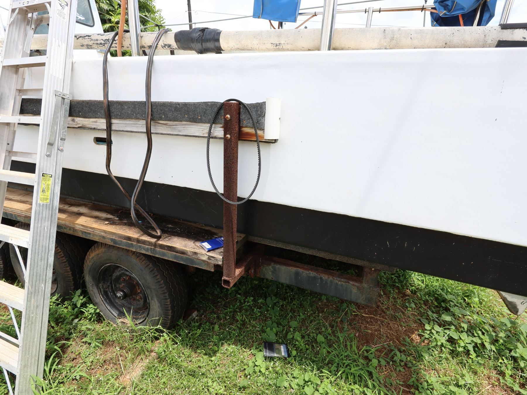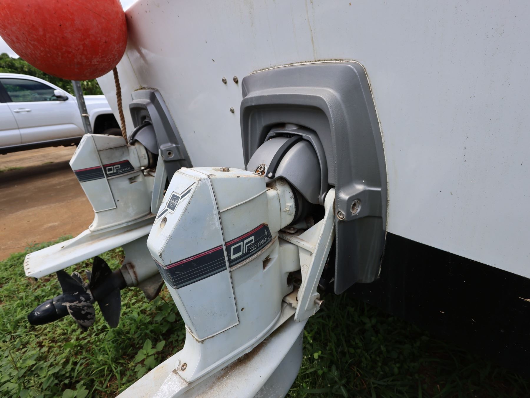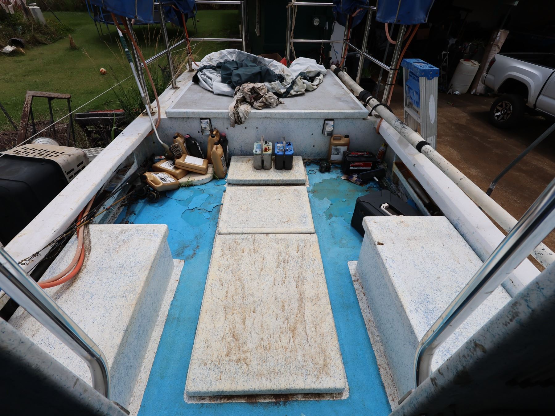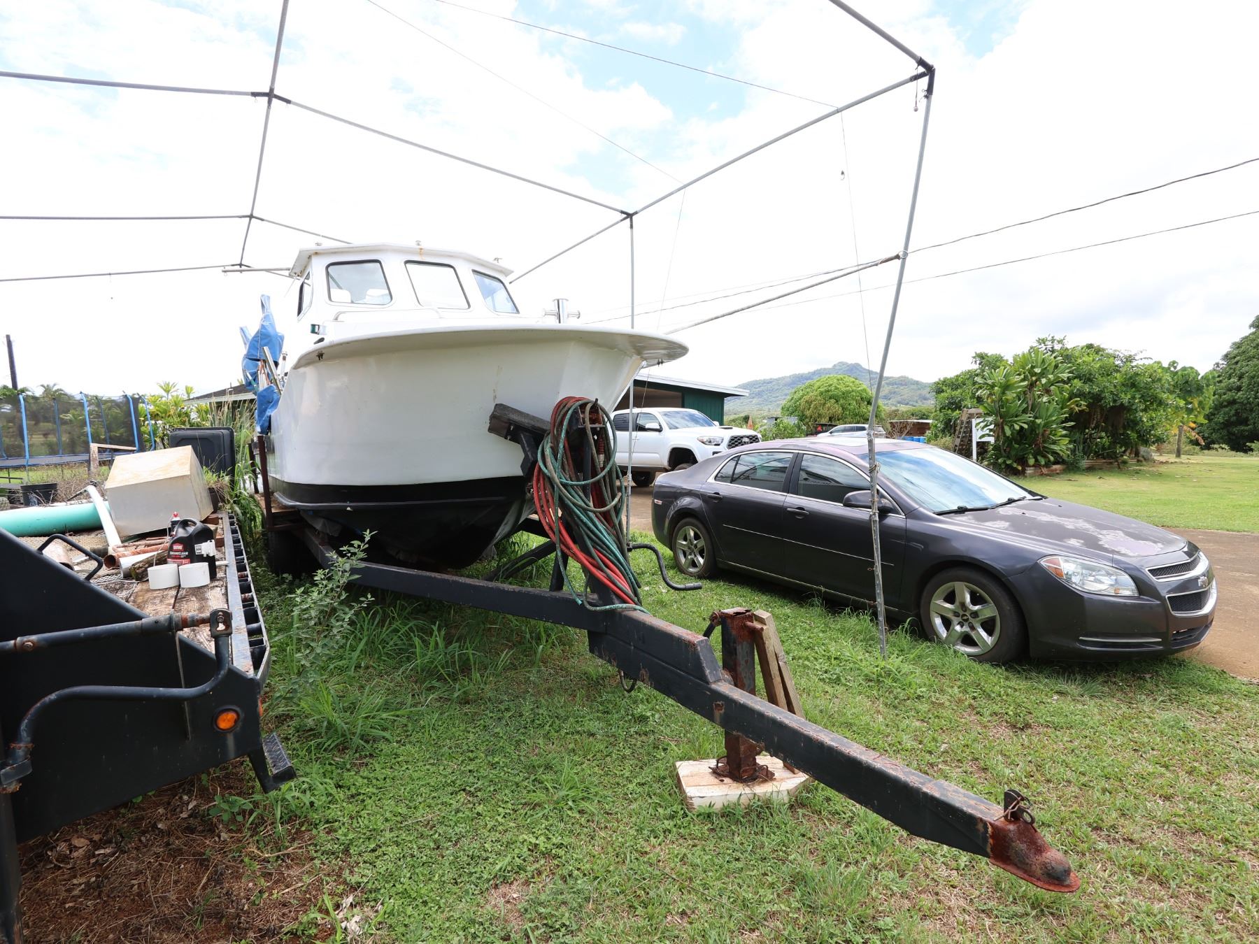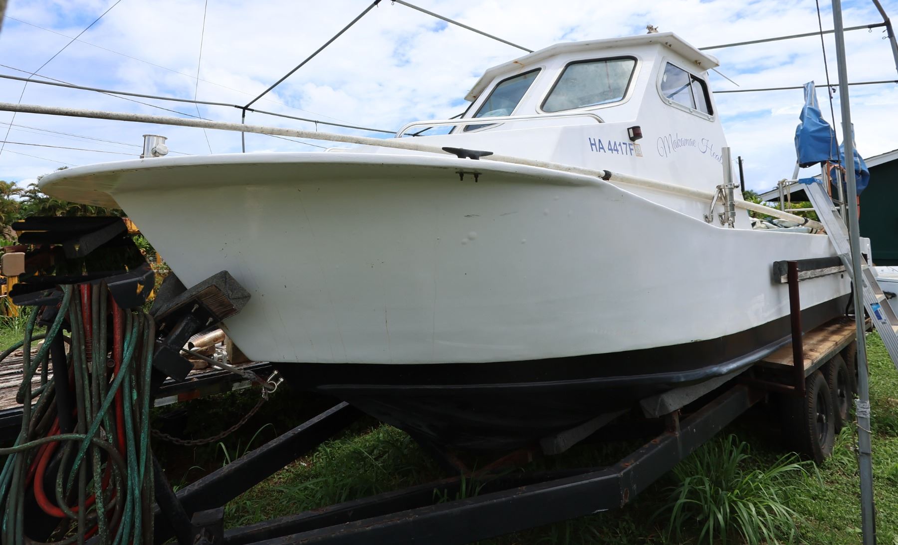 Radon 32-Foot Boat with twin inboard 6-cylinder Volvo Penta motor with 290DP legs, four hydraulic reels, one pinch puller, 1KW transducer with a 585 screen, GPS, 250-gallon aluminum fuel tank. Includes a triple axle homemade trailer.