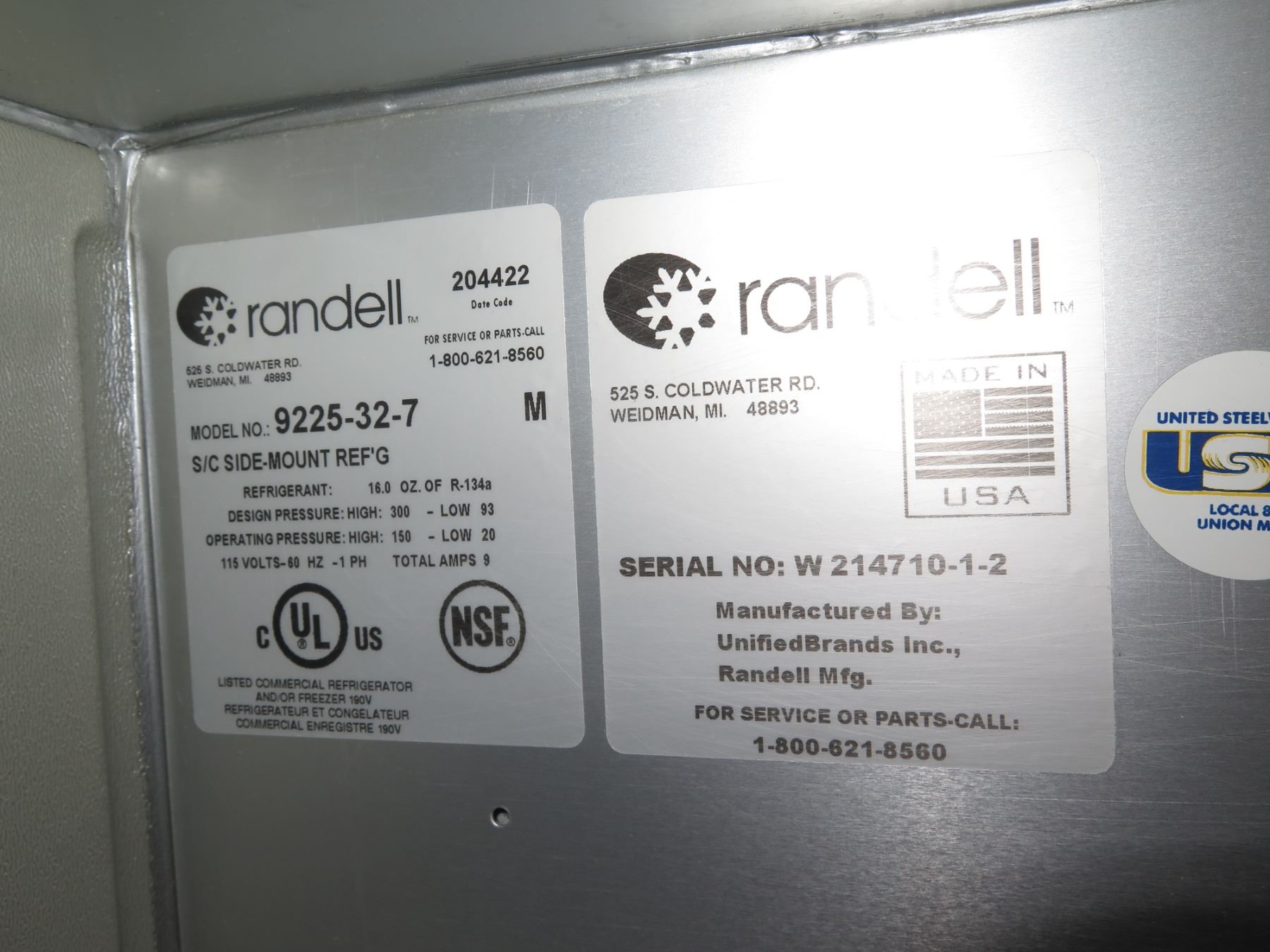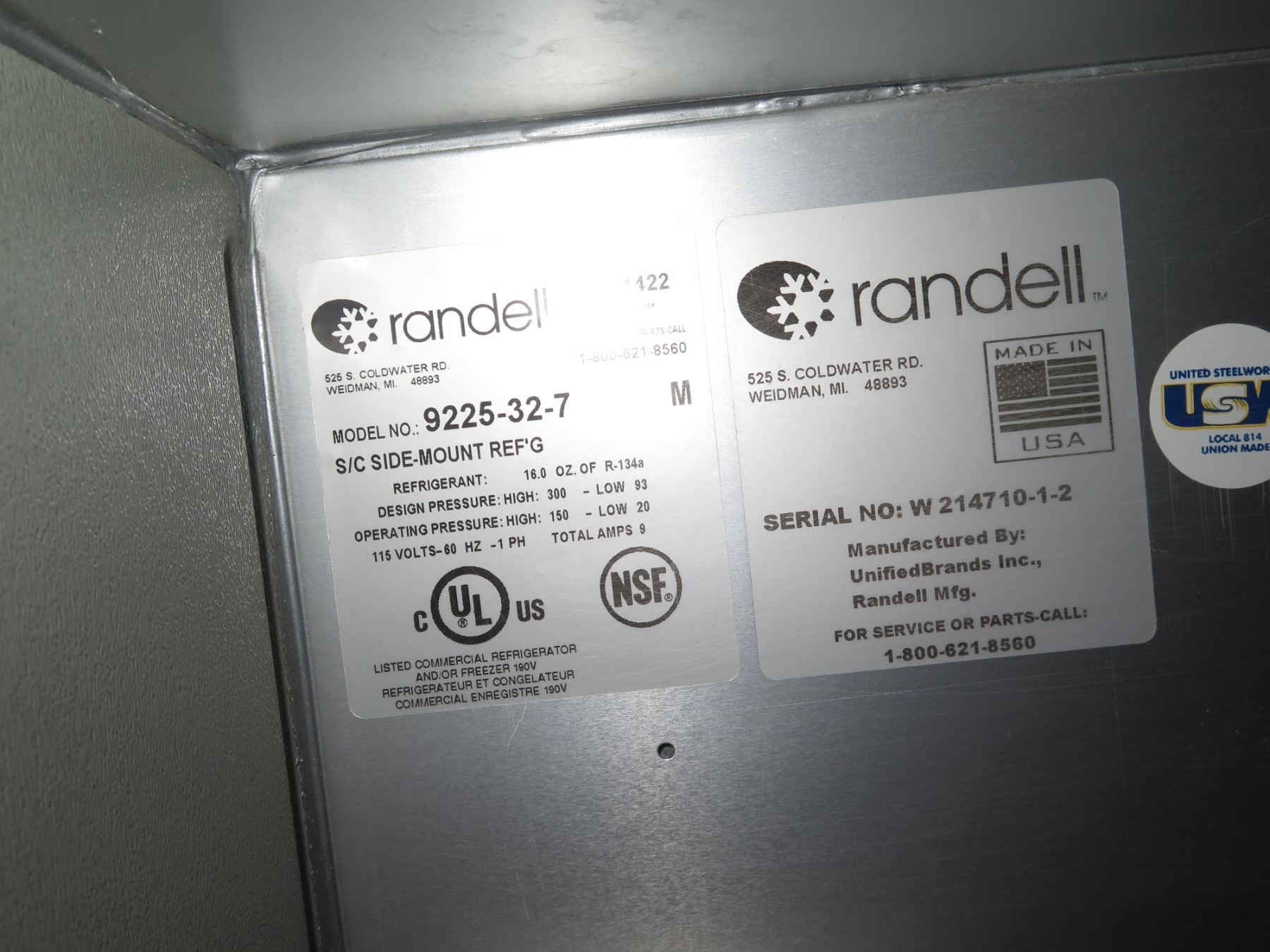 Randell 9225-32-7 Refrigerated Side-Mount Counter/Work Top (turns on, does NOT get cold - marble slab not included)