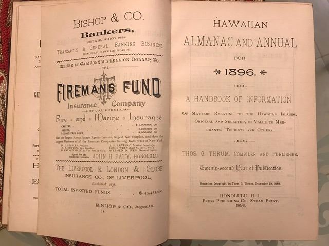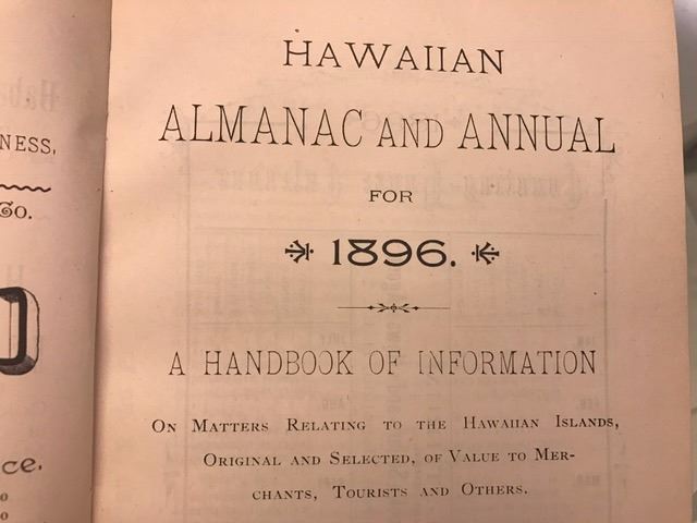 Rare Vintage Hawaiian Book: 1896 Hawaii Almanac