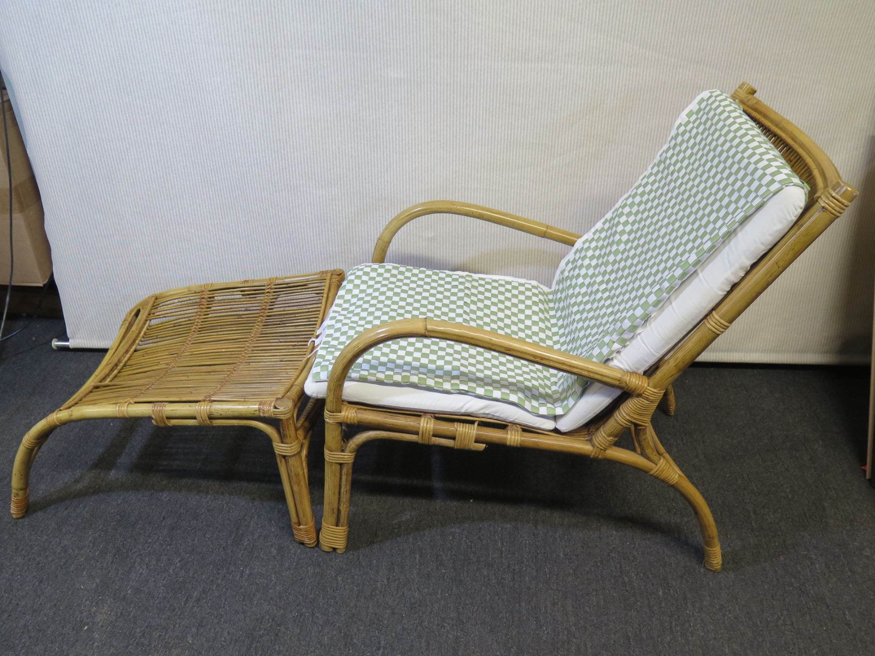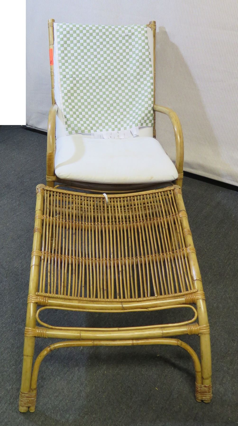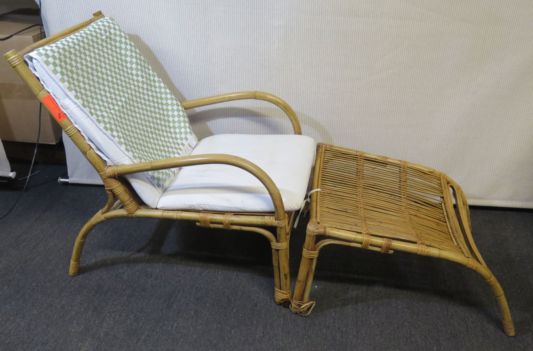Rattan Chair w/ Ottoman & Back/Seat Cushion 20" x 22" x 35"H