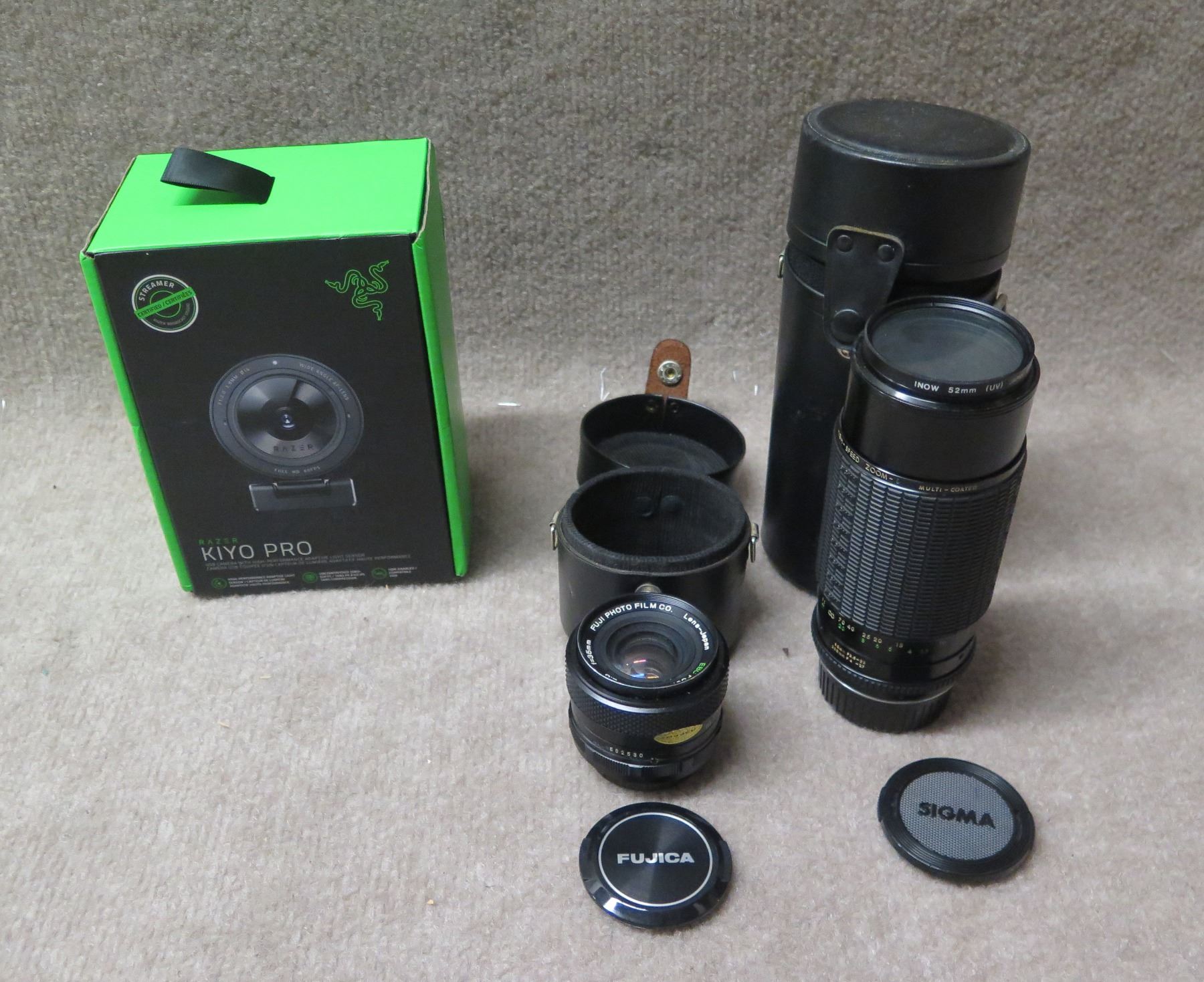 Razer KIYO Pro Webcam in Box, Fujica & Sigma Camera Lenses