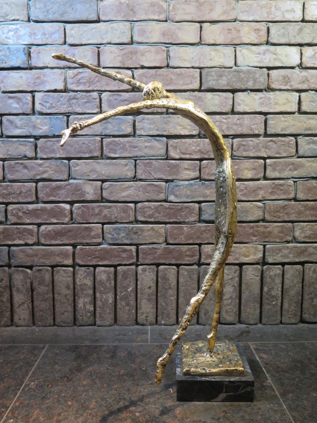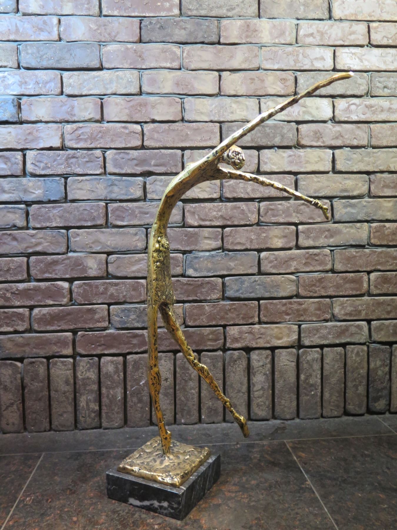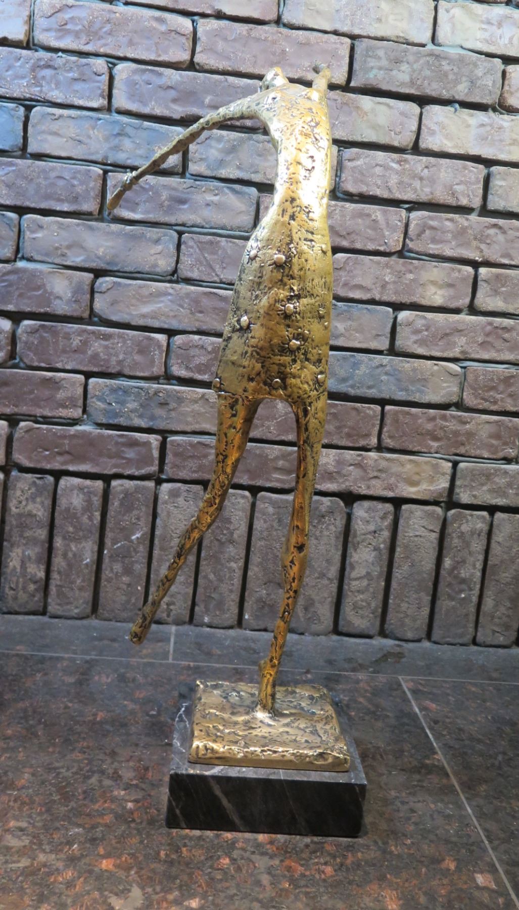 Reaching Figure Abstract Statue on Stone Base 30"H