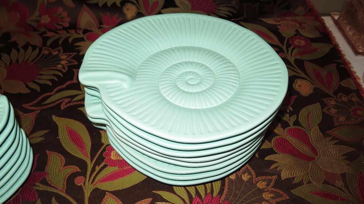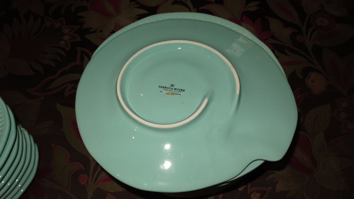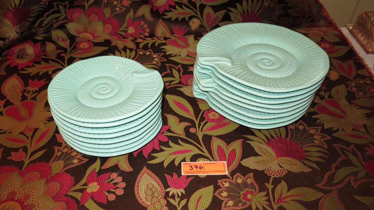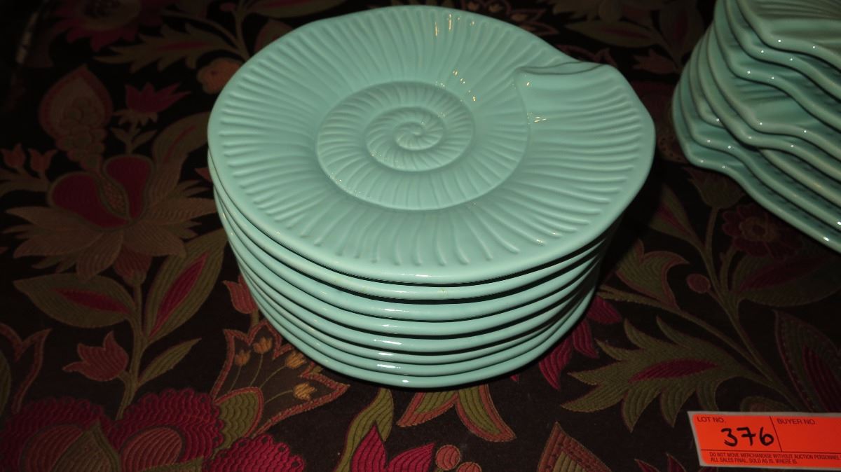 Rebecca Moses Aqua Seashell Porcelain Dinner Plates - 8 Lrg, 8 Sml