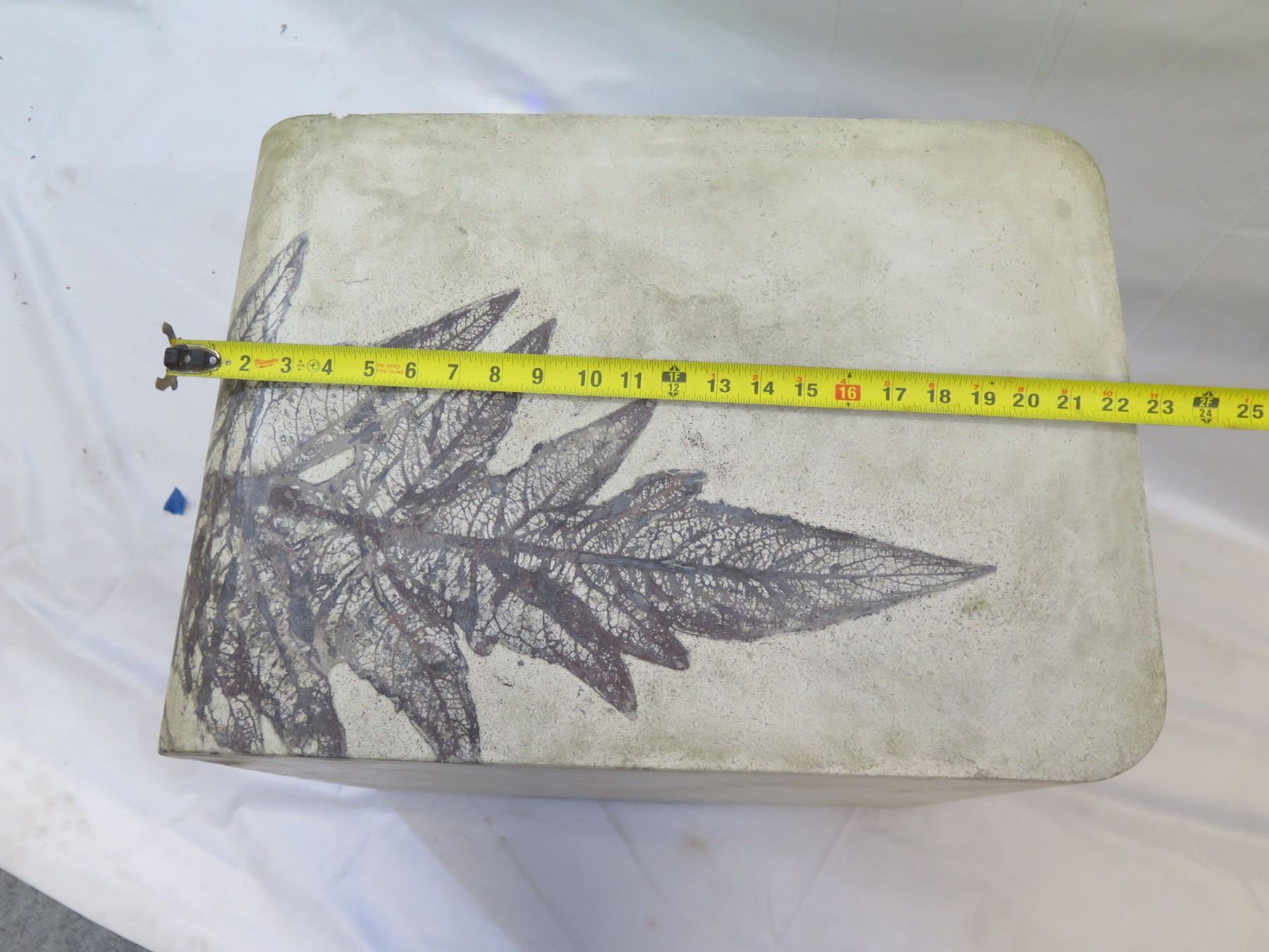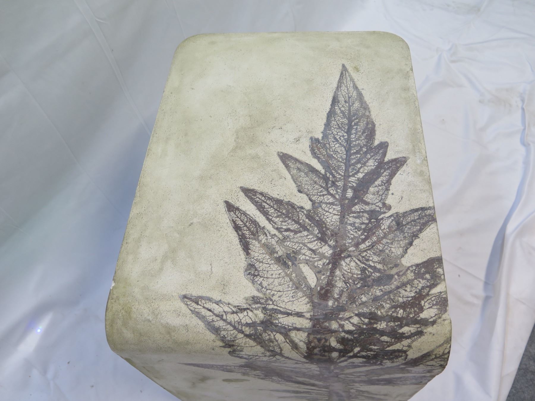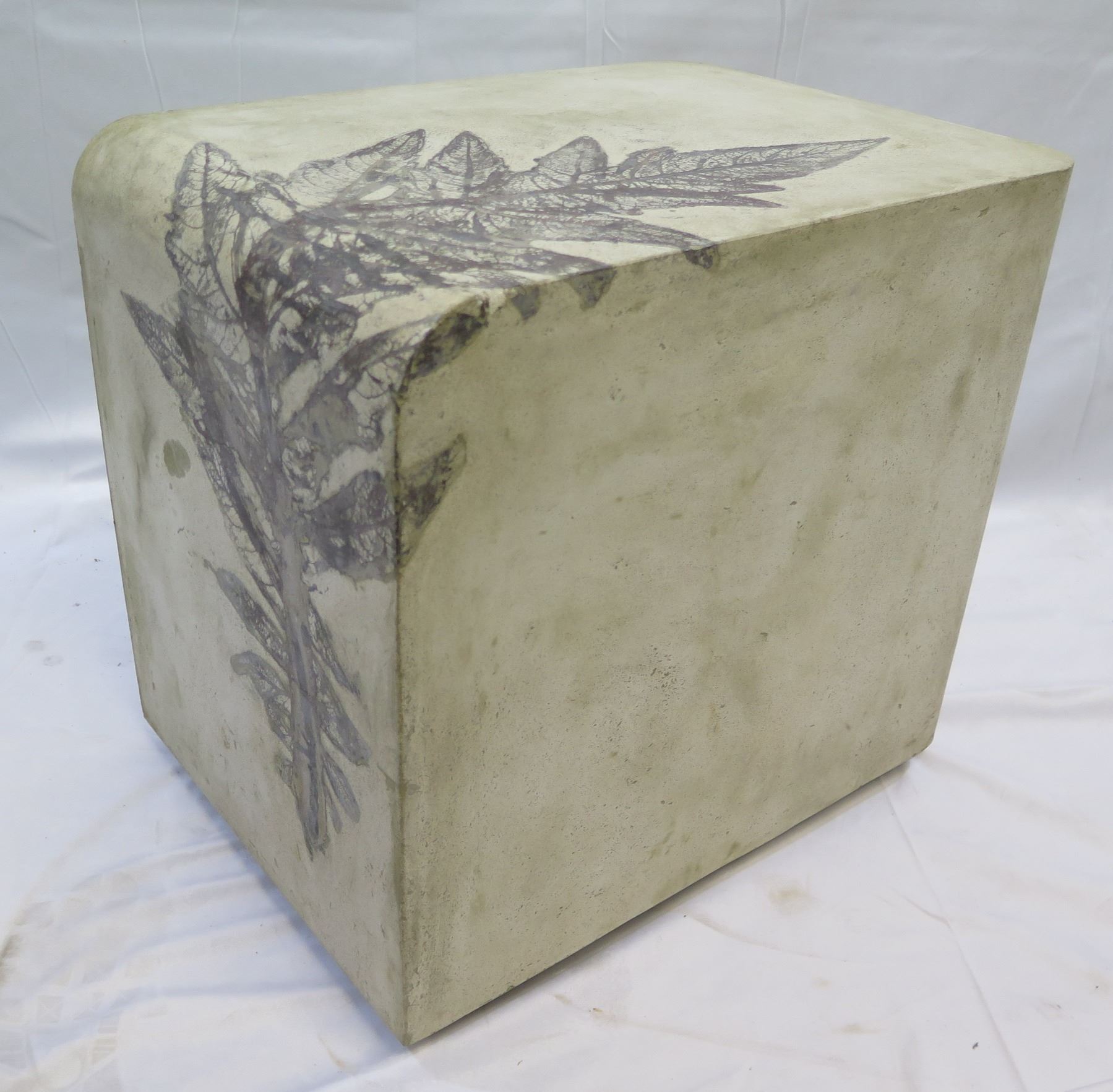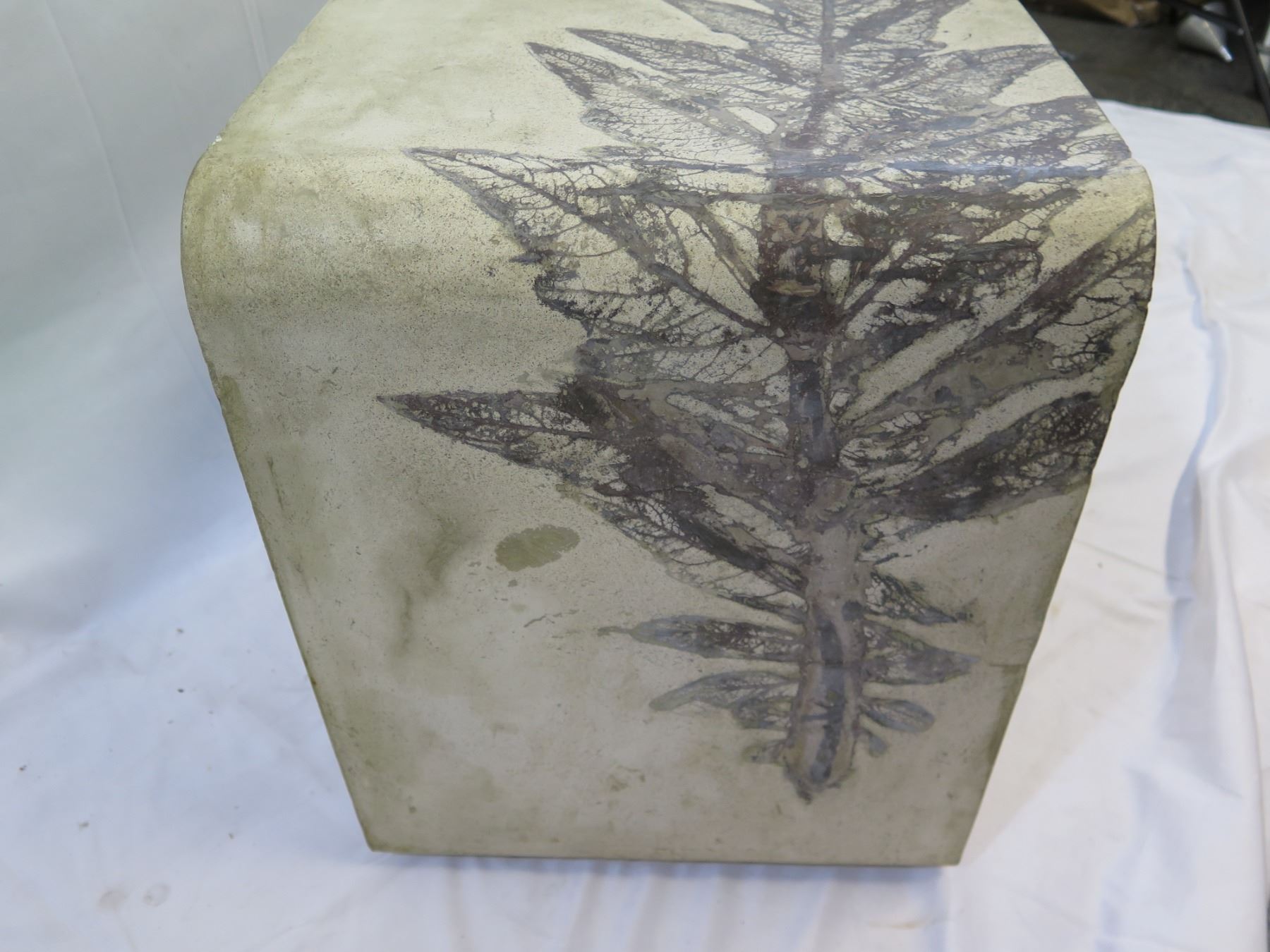 Rectangular Concrete Side Table w/ Leaf Print (hollow) 16"x22"x20"H (Retail $3900)