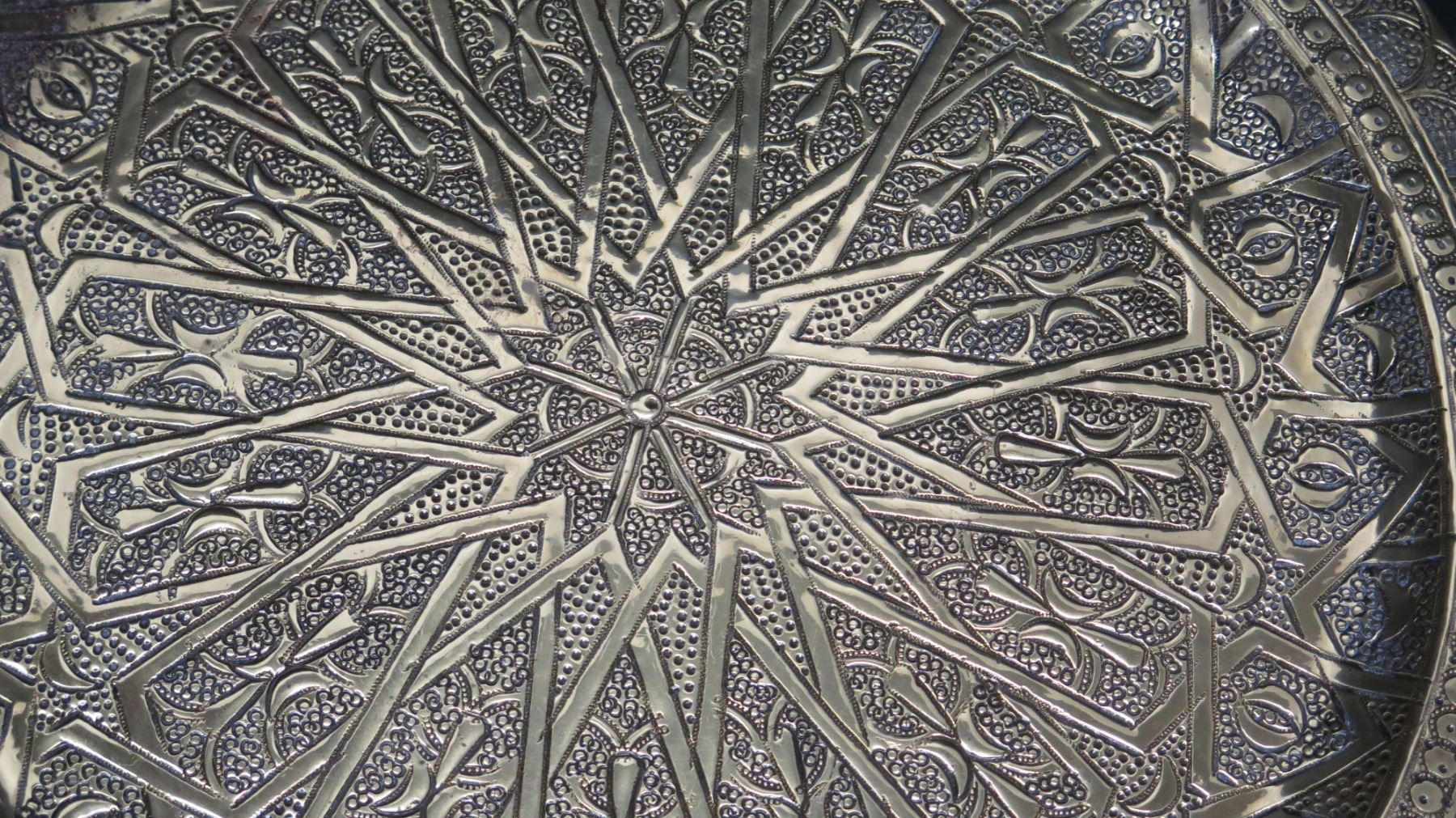 Rectangular Egyptian Platter w/ Raised Form & 4 Round Platters