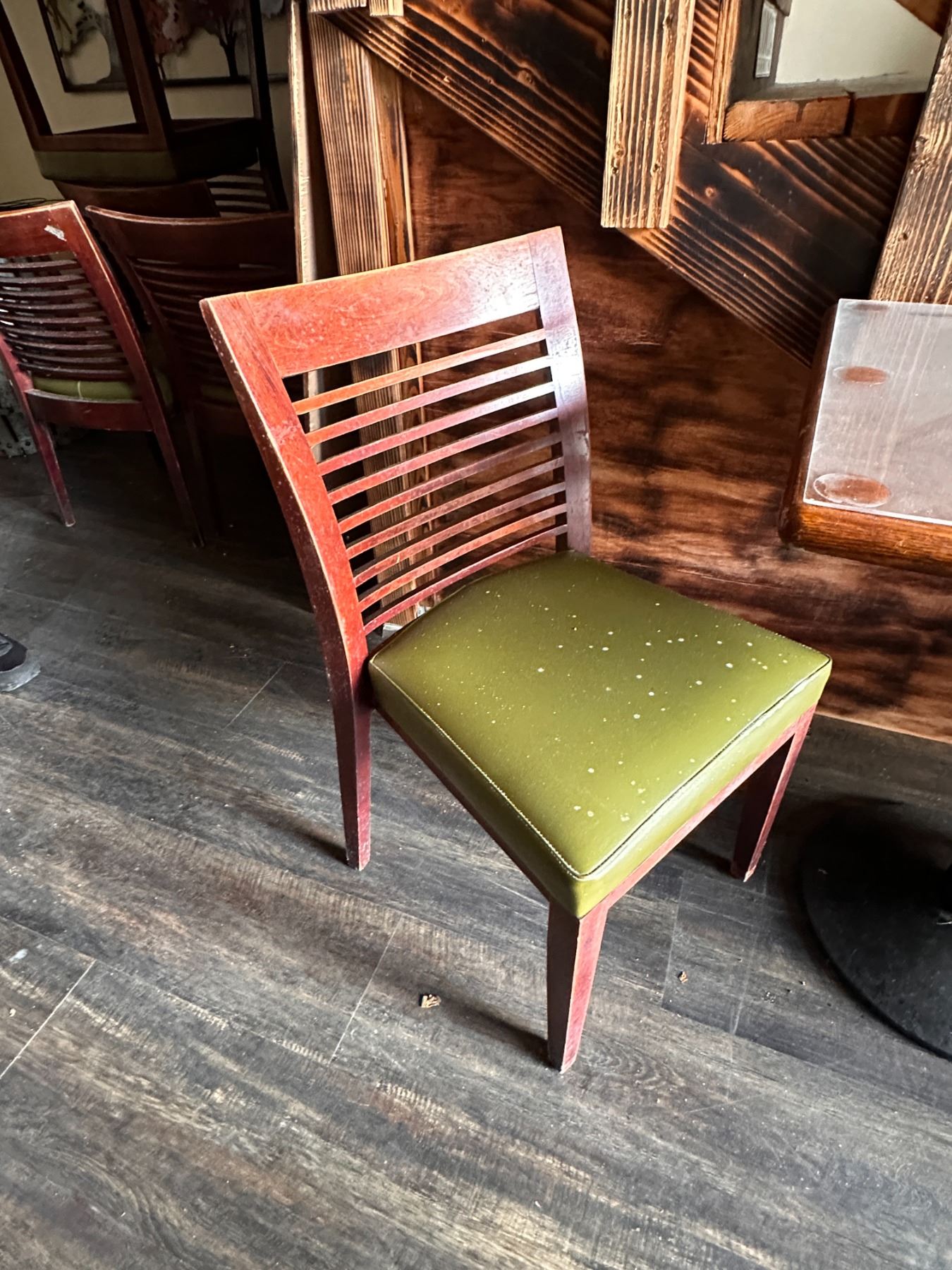 Rectangular Table 29  x 23  x 30 H w/ 4 Wooden Chairs w/ Slatted Backs 17  x 16  x 33.5