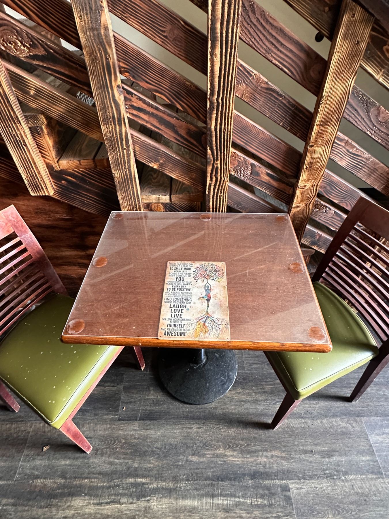 Rectangular Table 29" x 23" x 30"H w/ 4 Wooden Chairs w/ Slatted Backs 17" x 16" x 33.5"