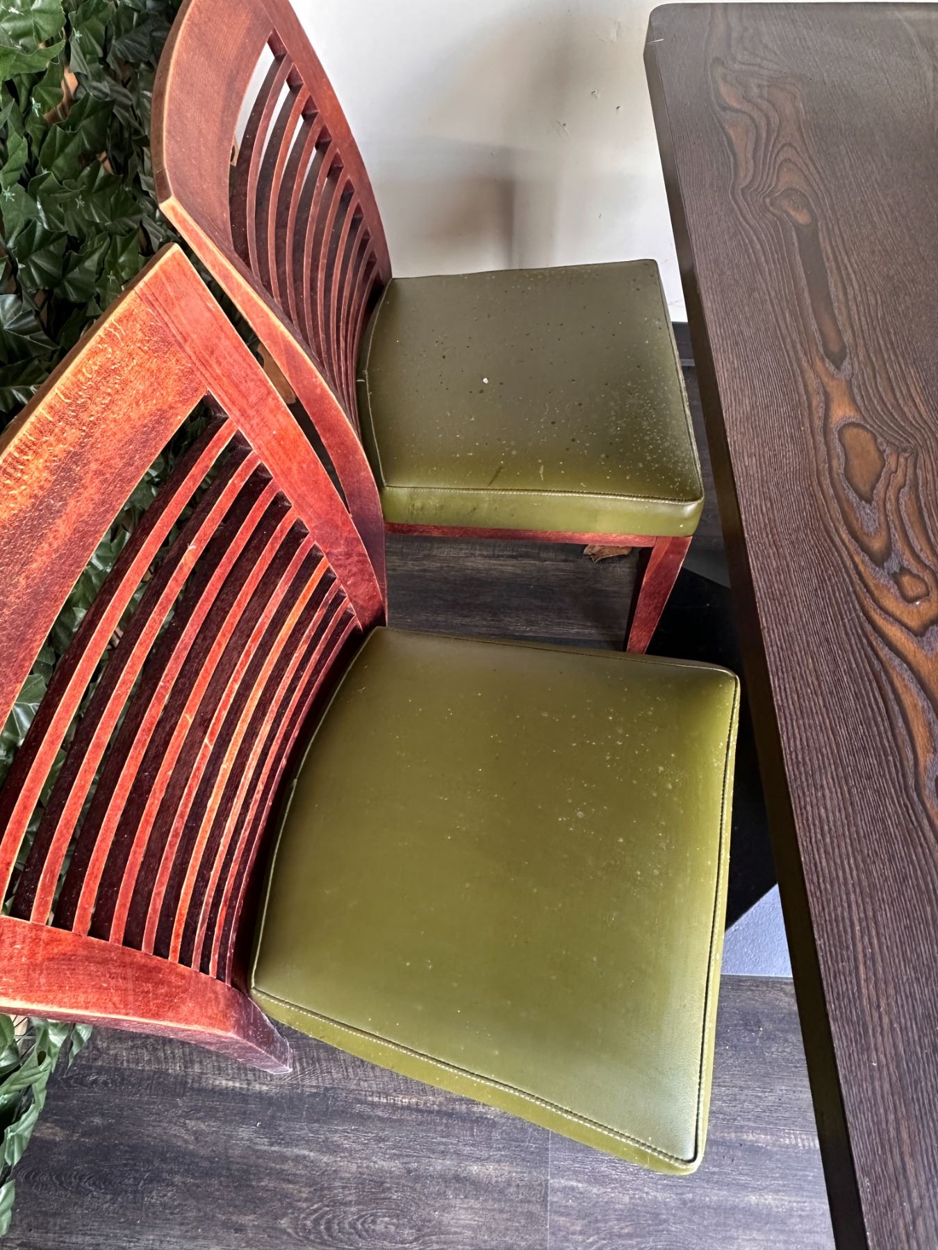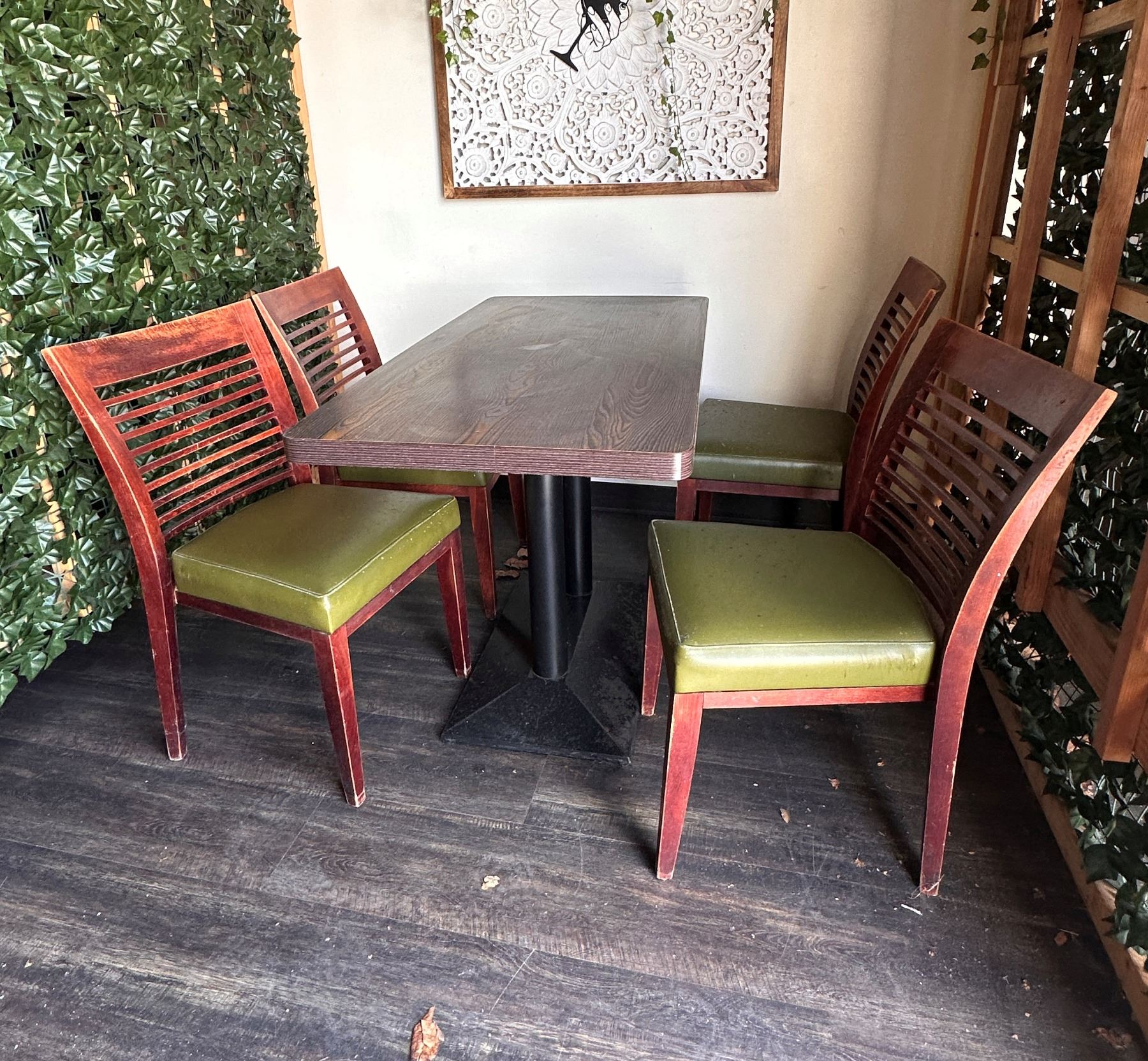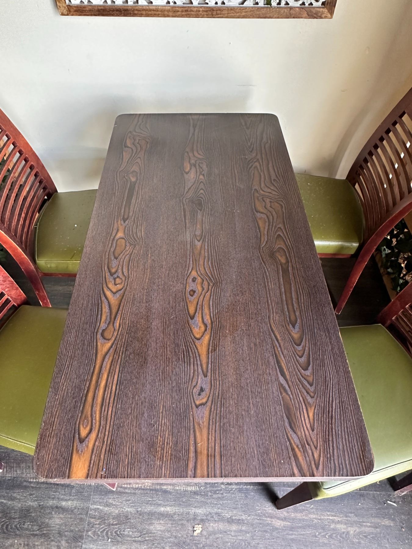 Rectangular Table 48" x 24" x 30"H w/ 4 Wooden Chairs w/ Slatted Backs 17" x 16" x 33.5"