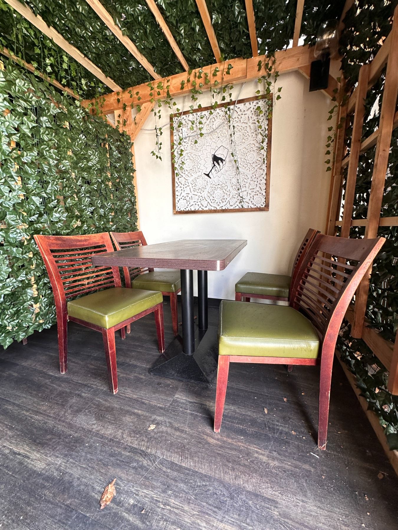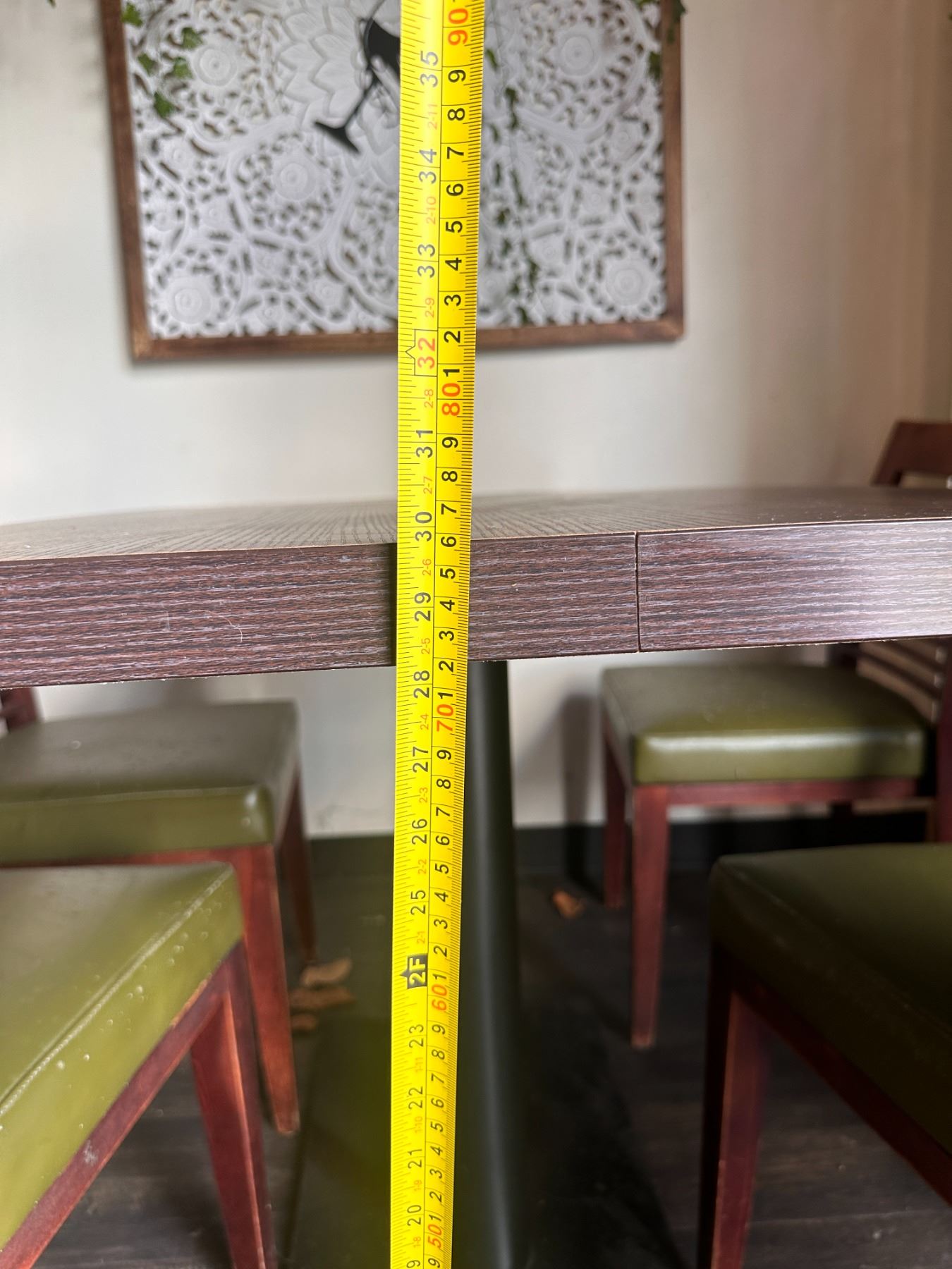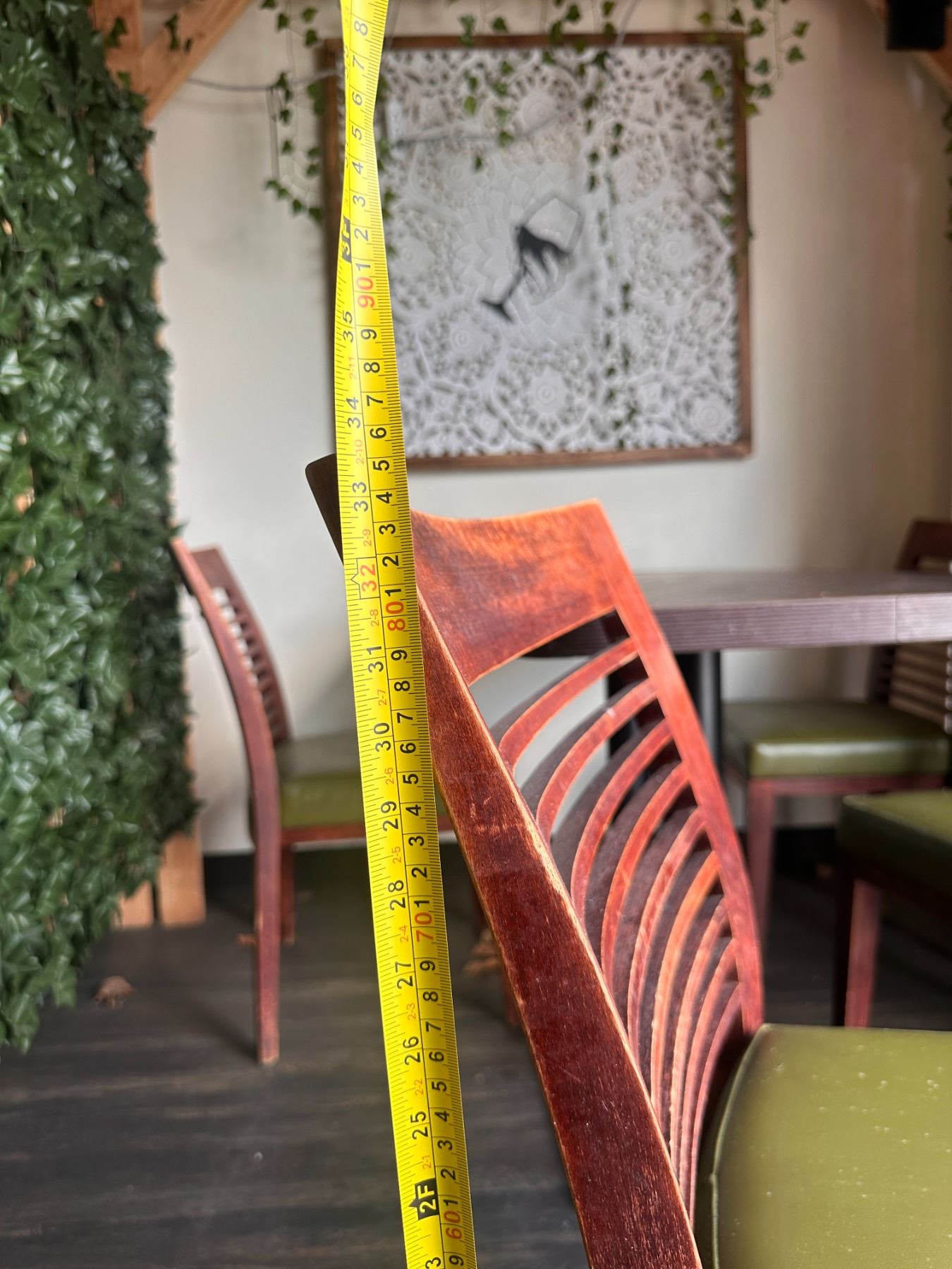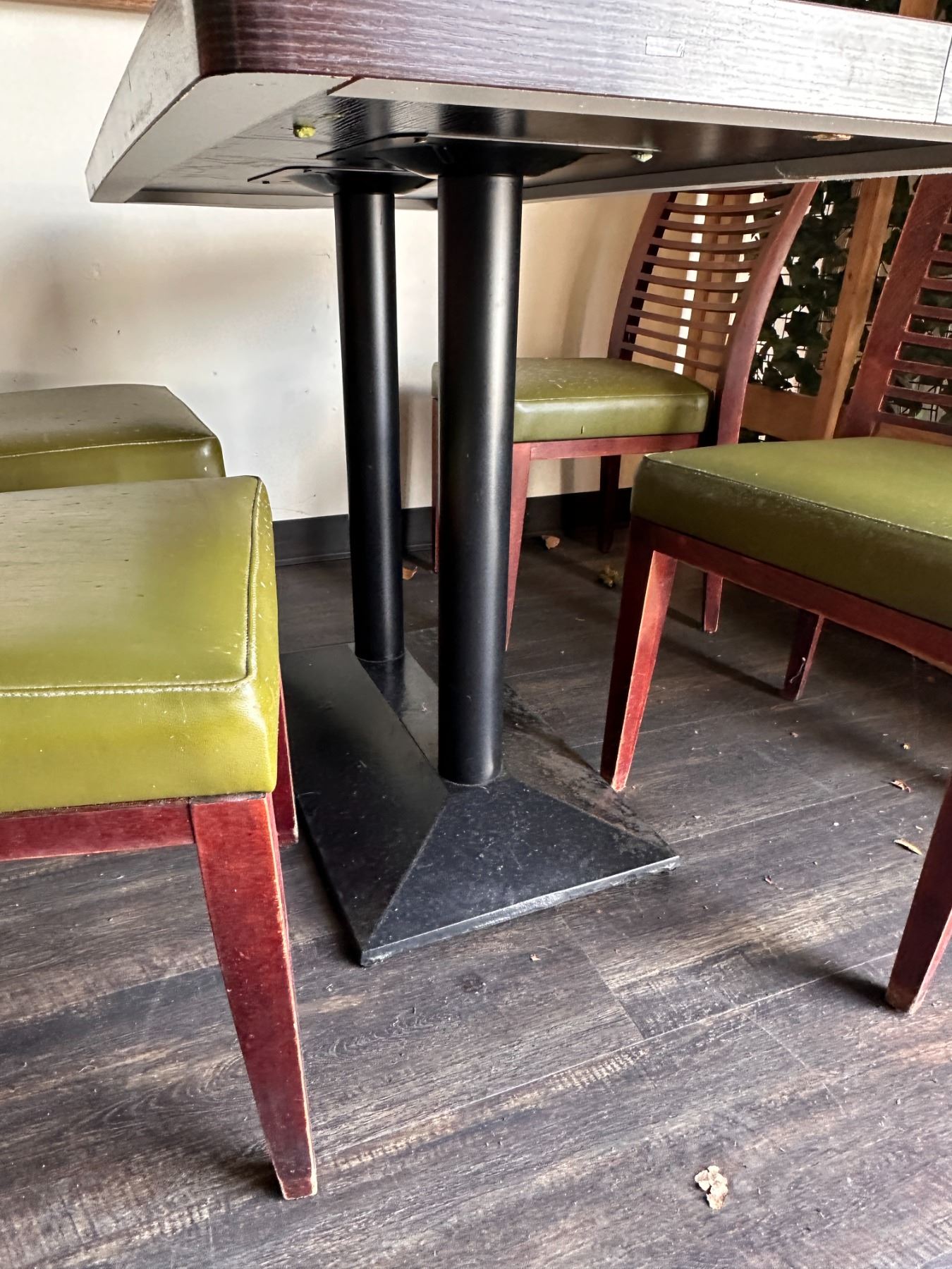 Rectangular Table 48" x 24" x 30"H w/ 4 Wooden Chairs w/ Slatted Backs 17" x 16" x 33.5"