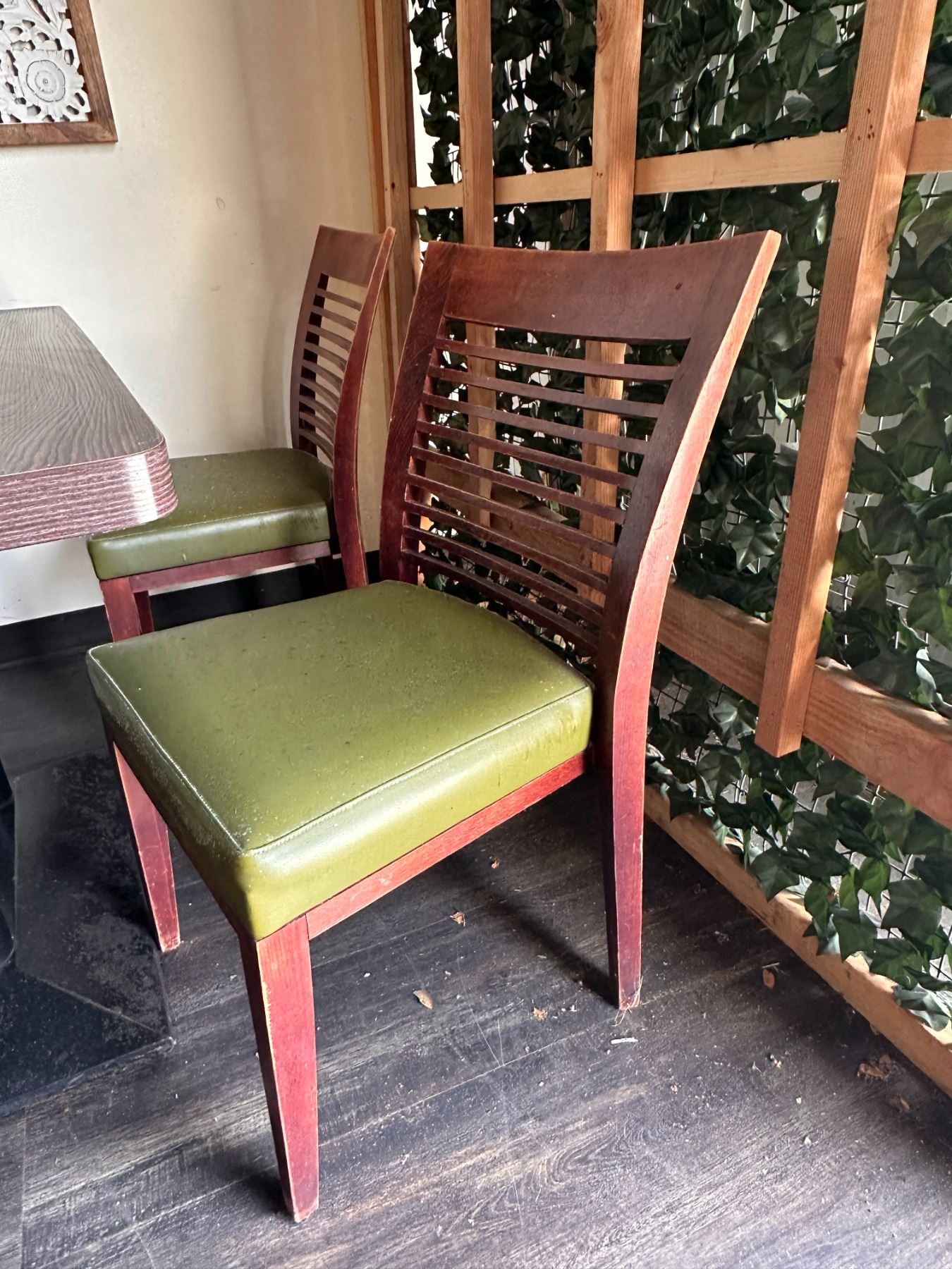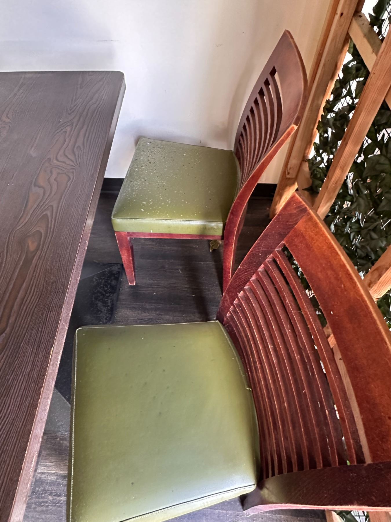 Rectangular Table 48" x 24" x 30"H w/ 4 Wooden Chairs w/ Slatted Backs 17" x 16" x 33.5"