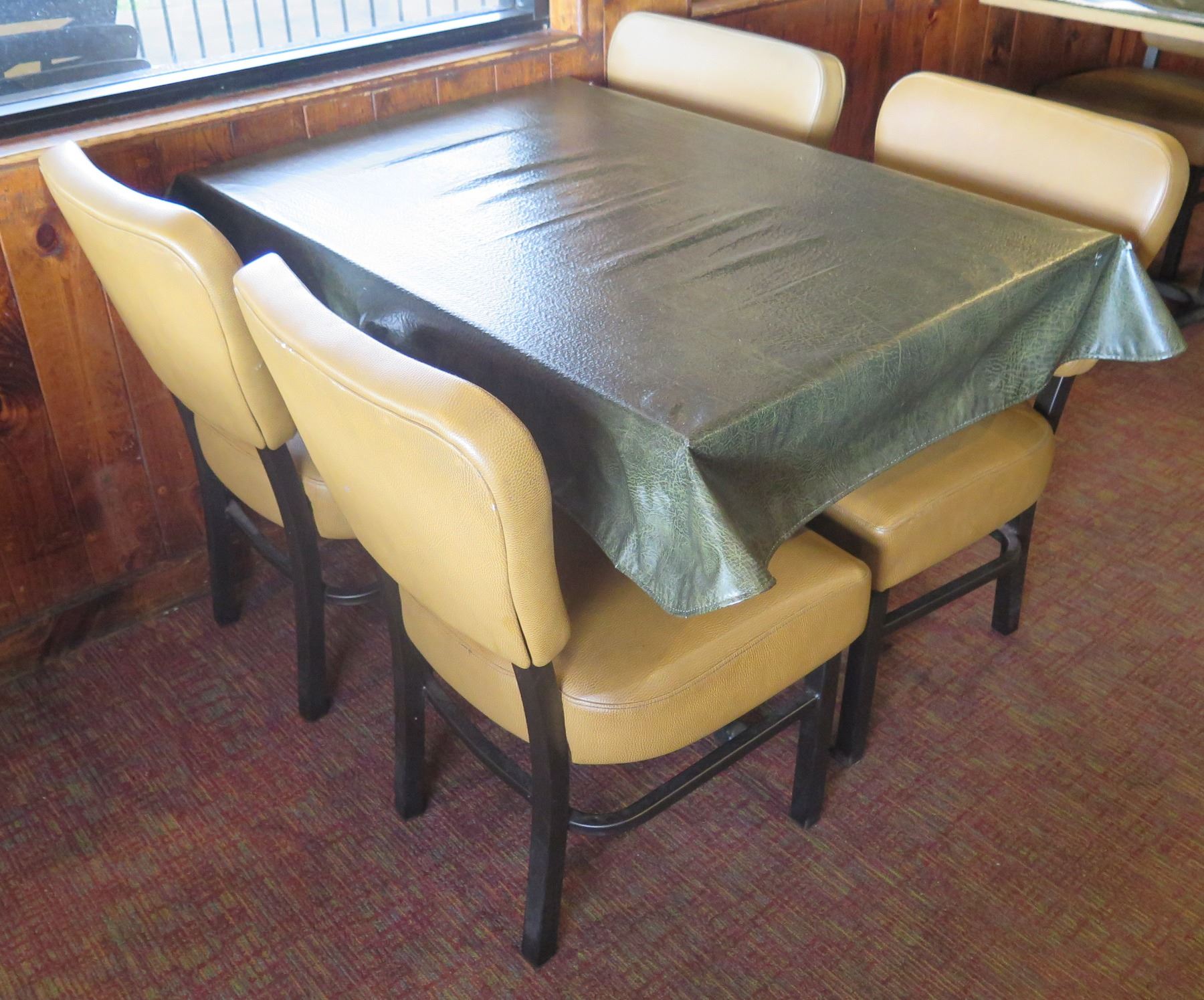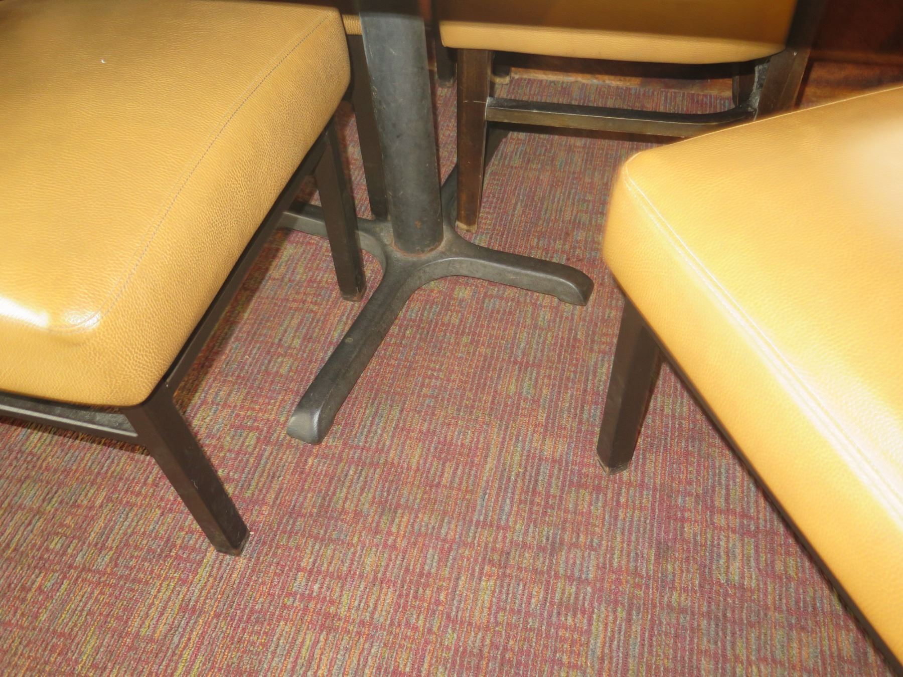 Rectangular Table on Metal Pedestal Base 44"x30"x30"H w/ 4 Chairs 18"x18"x33"H. This is a stock photo, representative of item. Condition may vary.