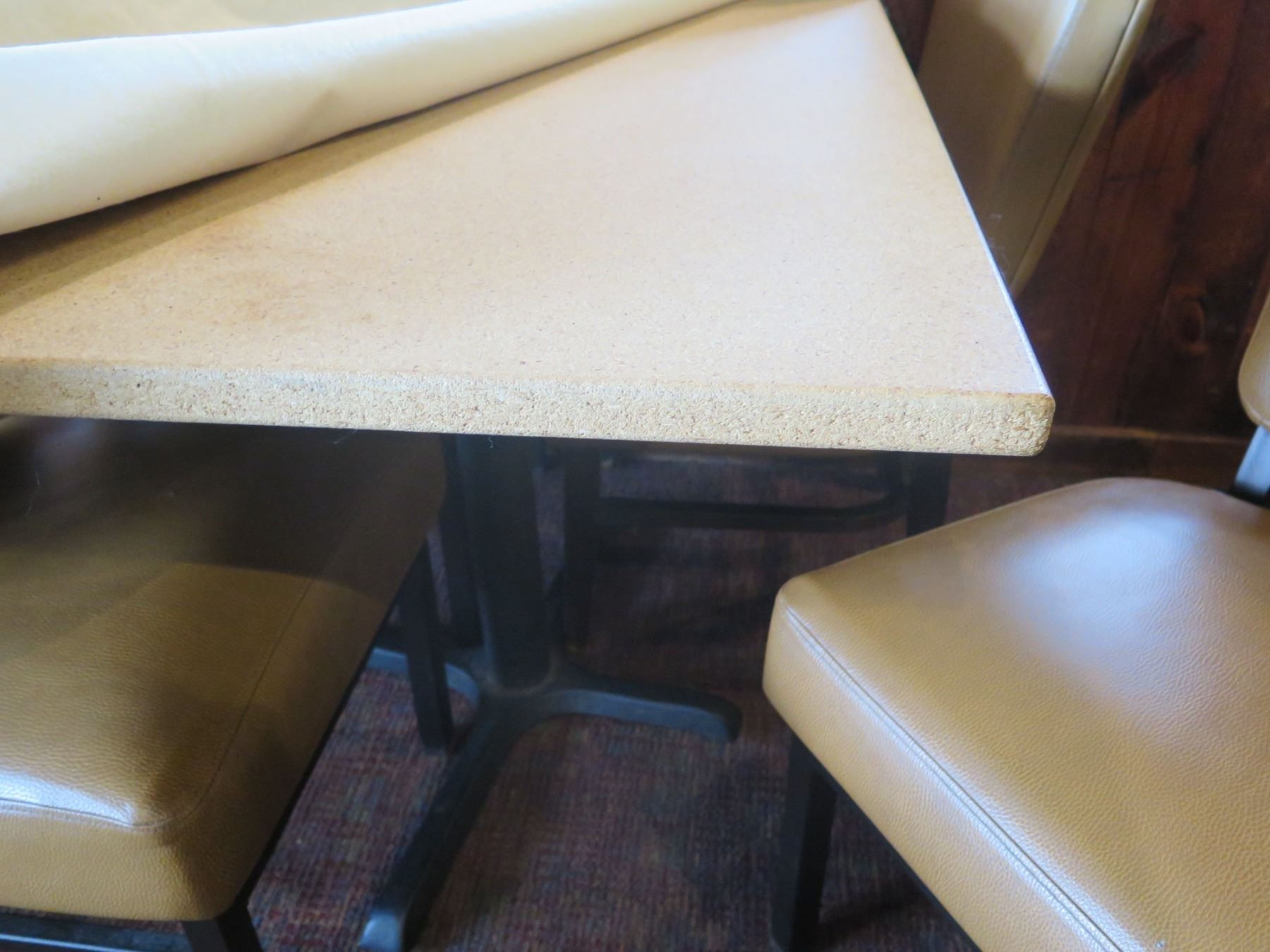 Rectangular Table on Metal Pedestal Base 44"x30"x30"H w/ 4 Chairs 18"x18"x33"H. This is a stock photo, representative of item. Condition may vary.