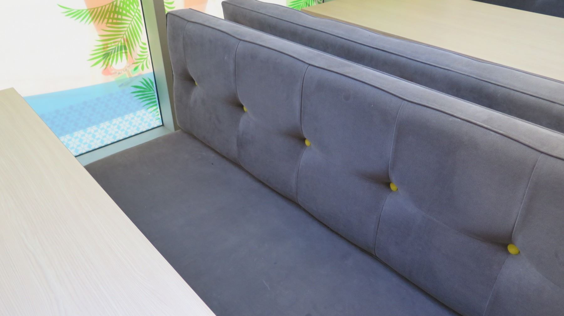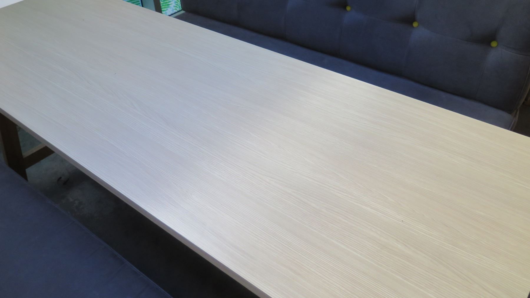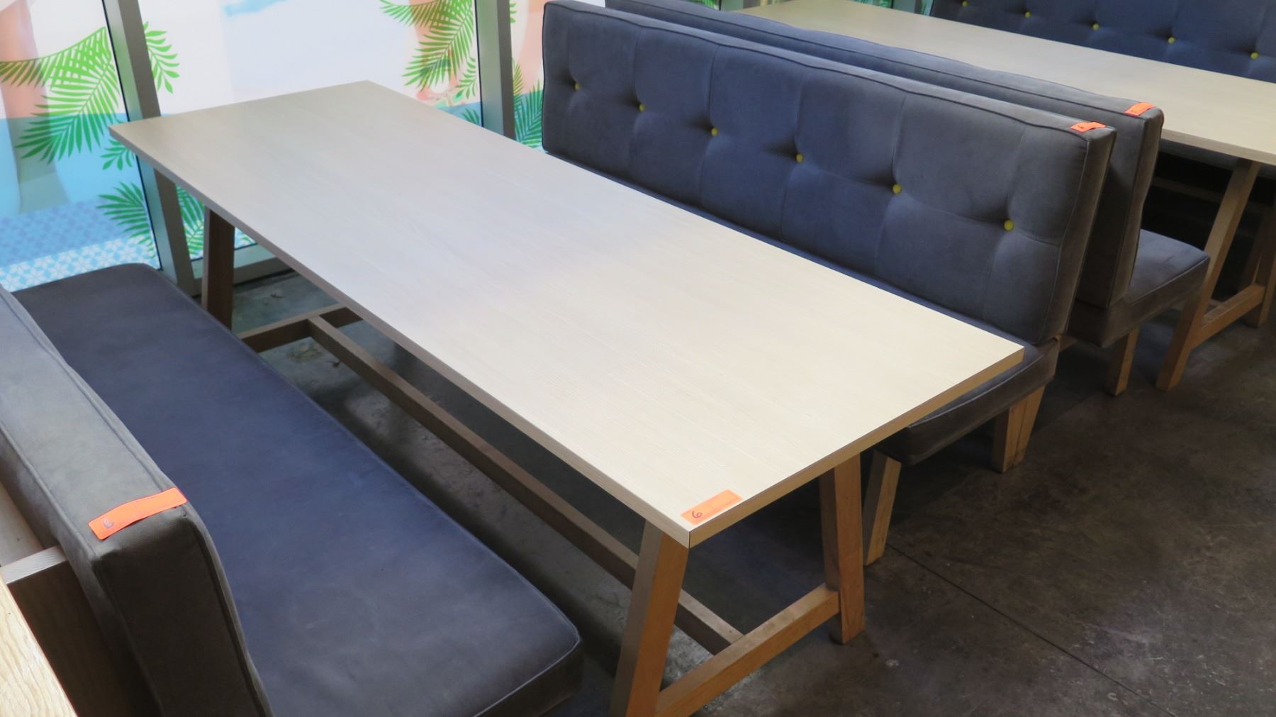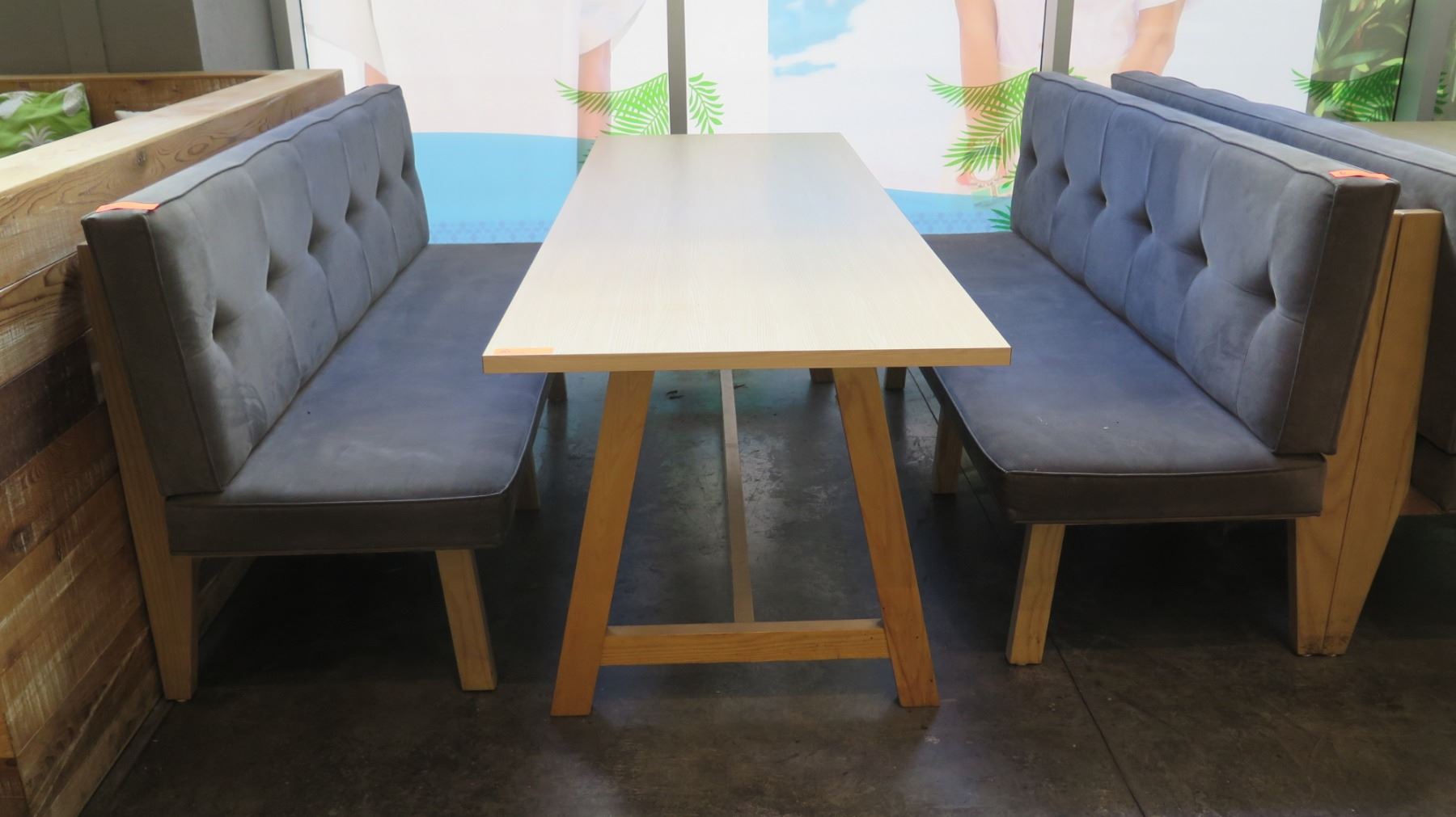 Rectangular Wooden Table (87x29.5") w/ 2 Upholstered Bench Seats (26"x70")