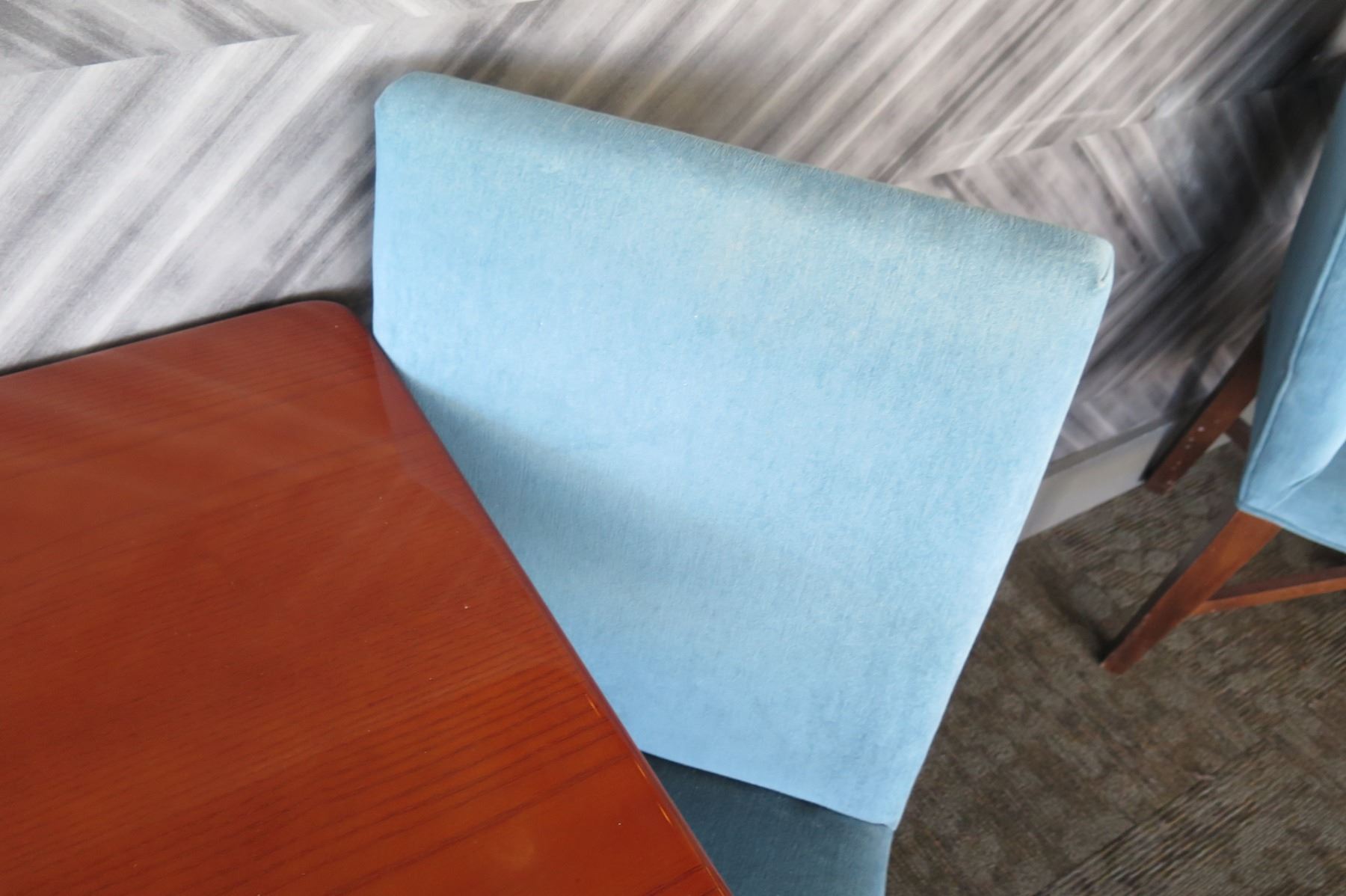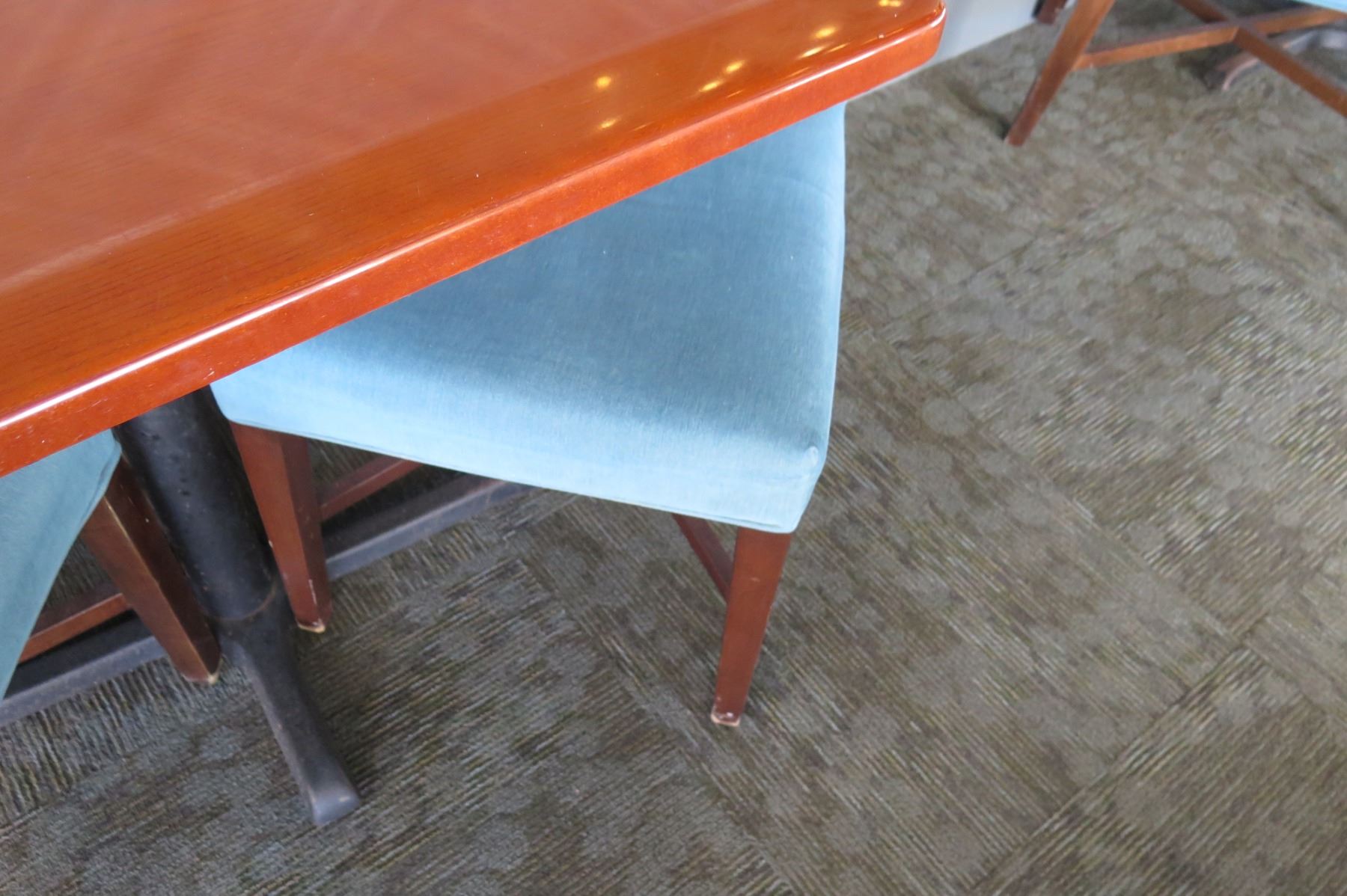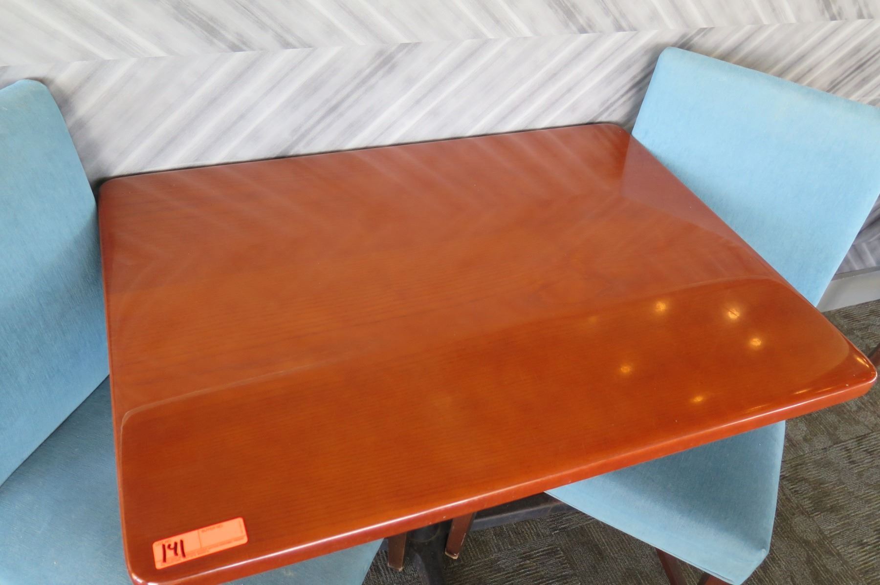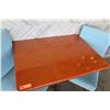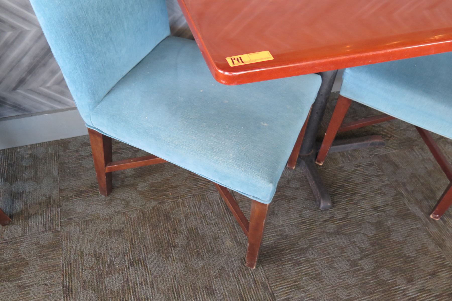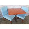 Rectangular Wooden Table w/ Metal Base (38" x 28" x 30") & 2 Upholstered Chairs