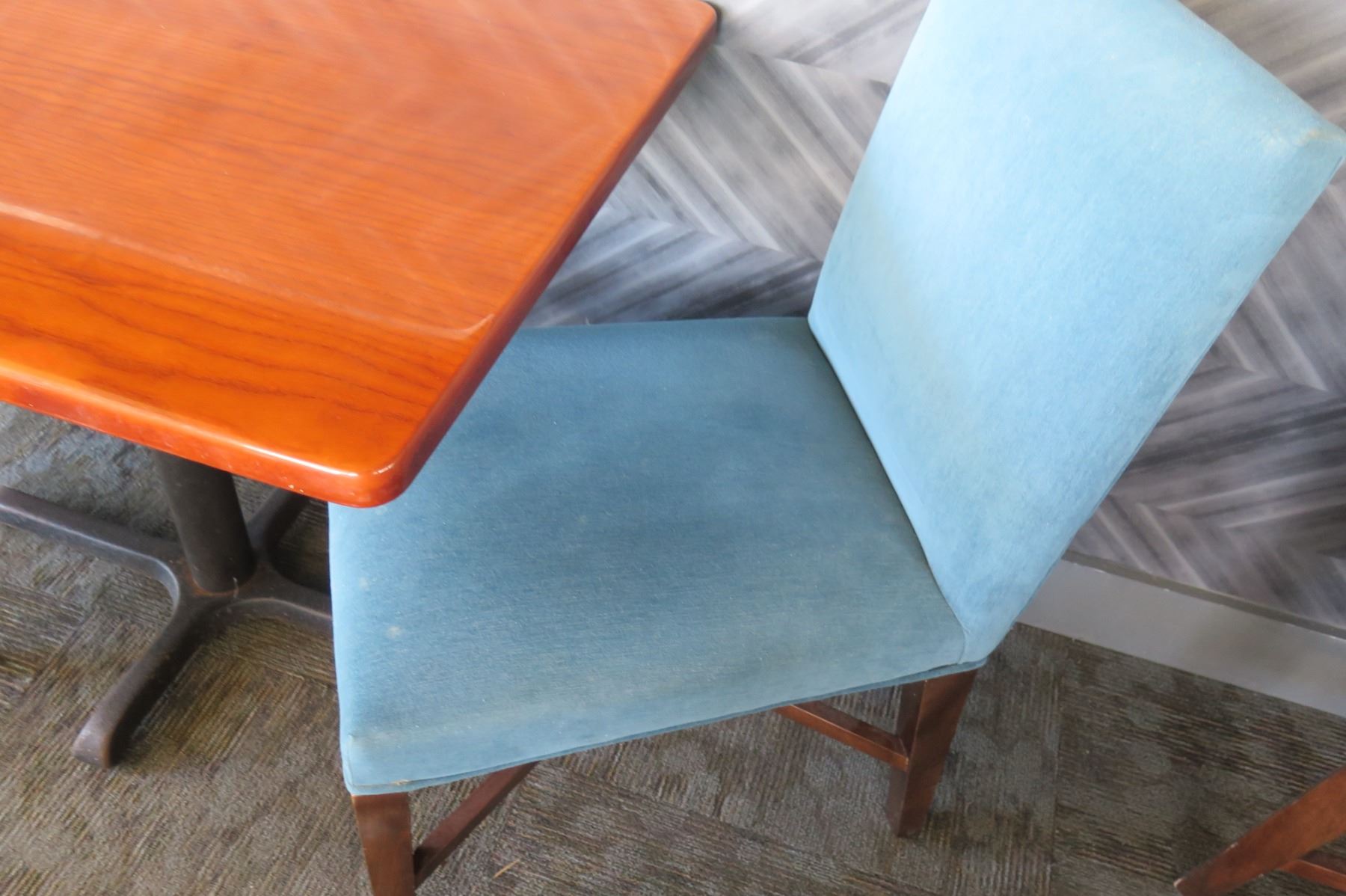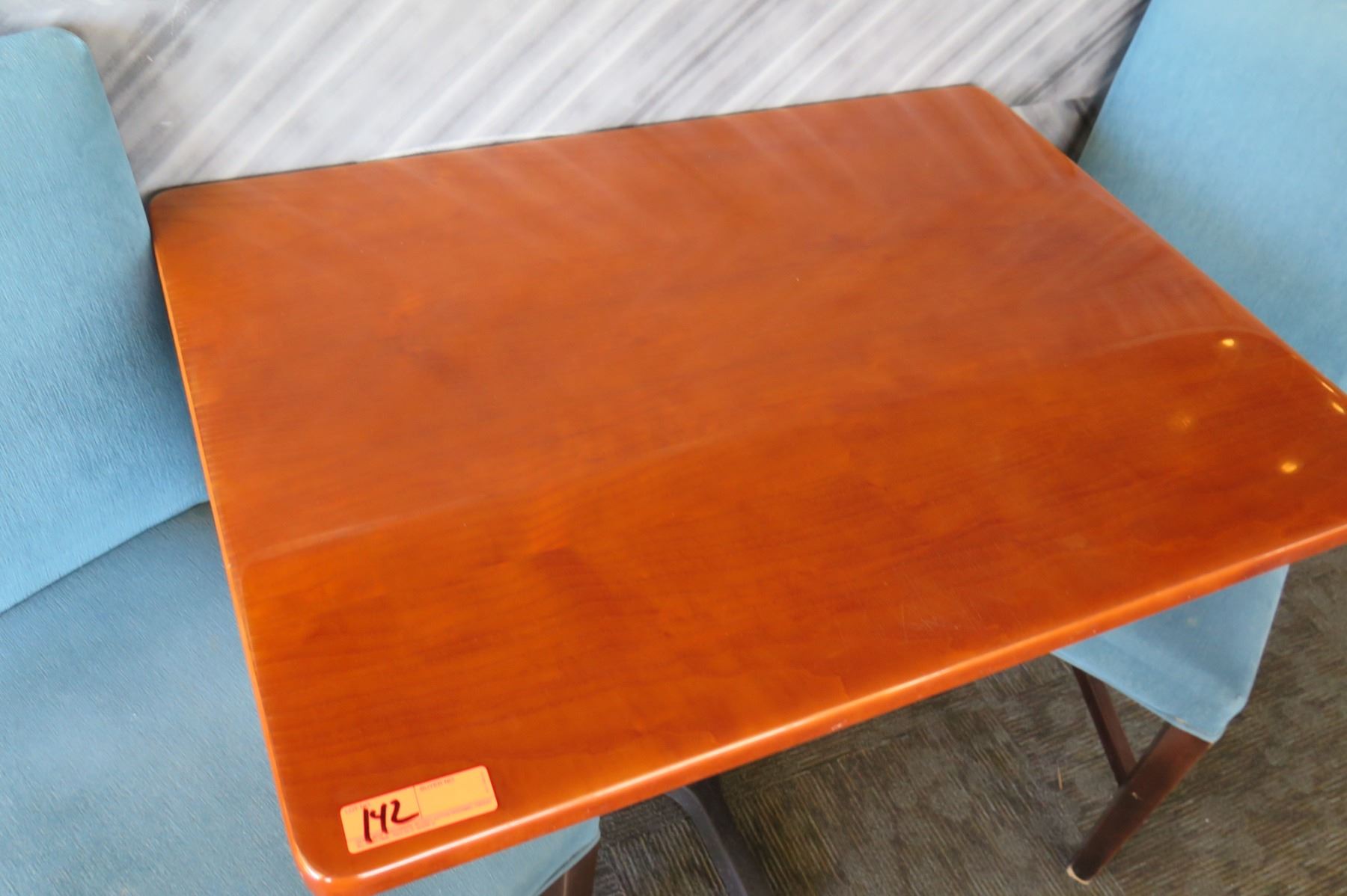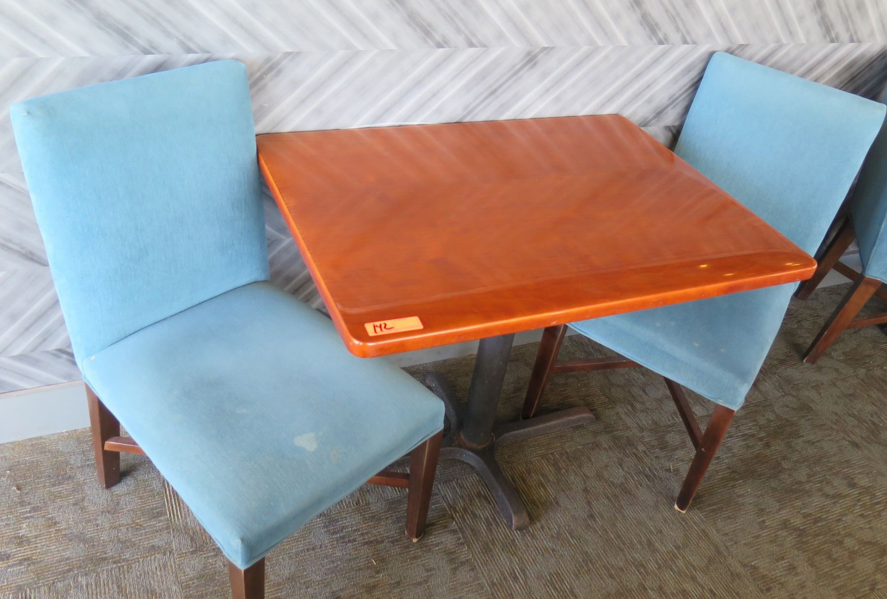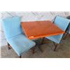 Rectangular Wooden Table w/ Metal Base (38" x 28" x 30") & 2 Upholstered Chairs