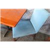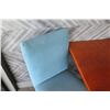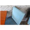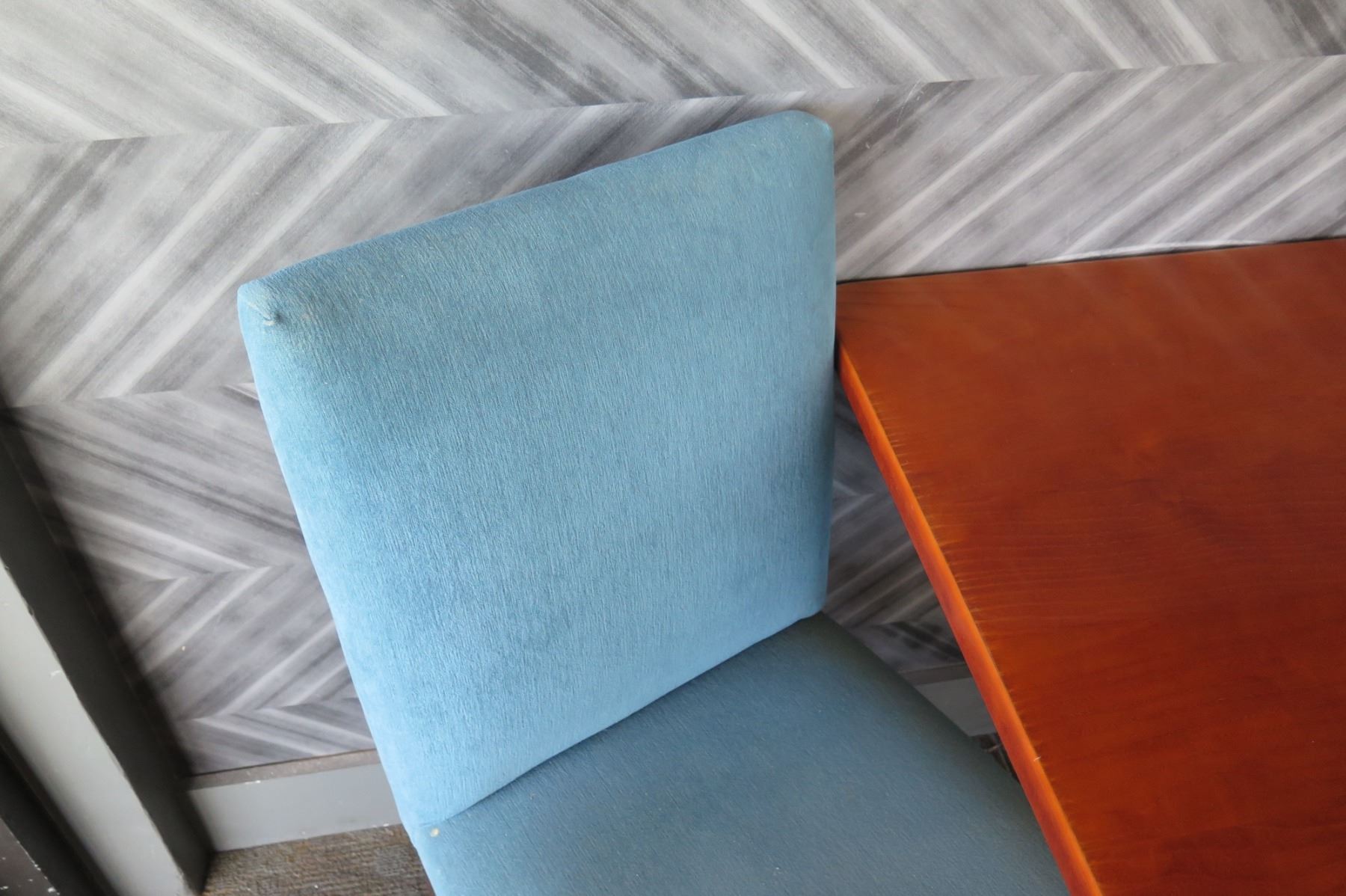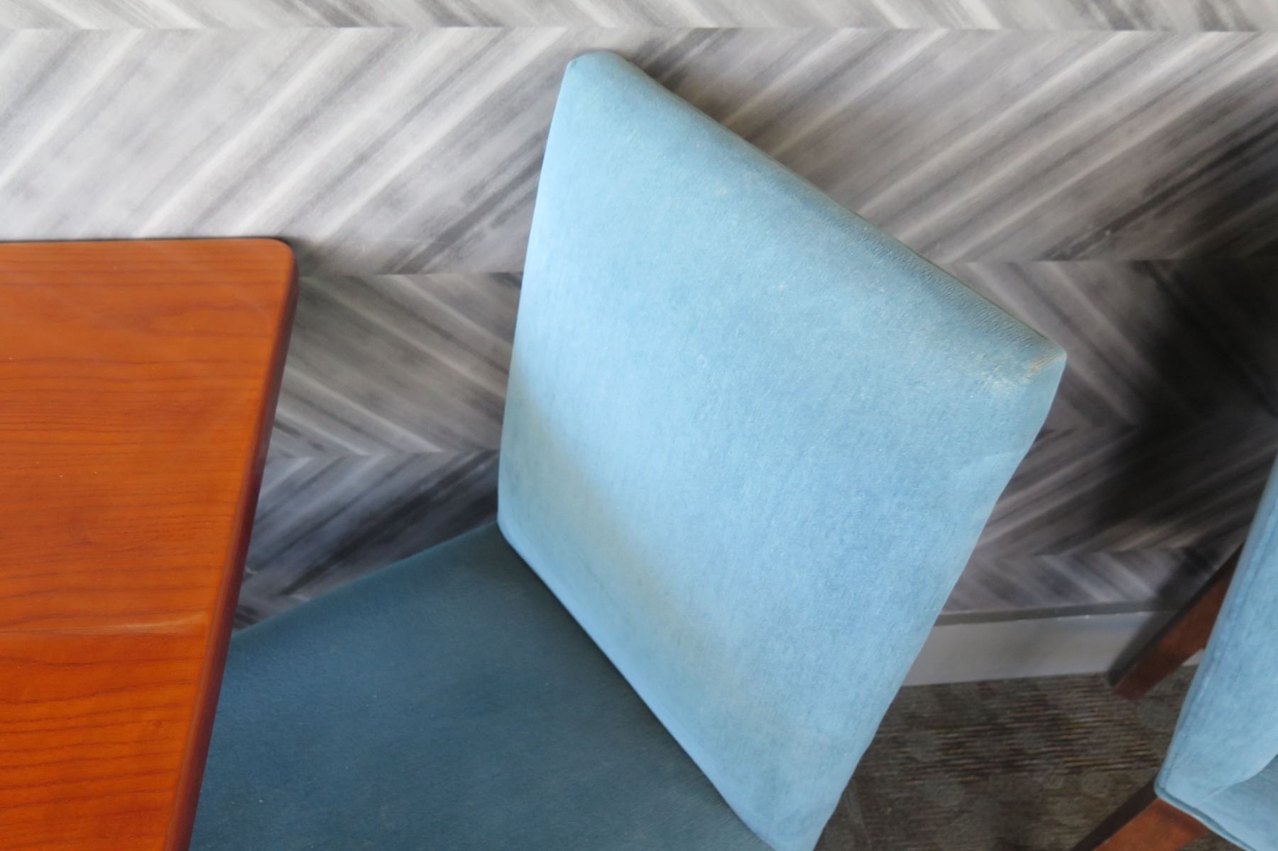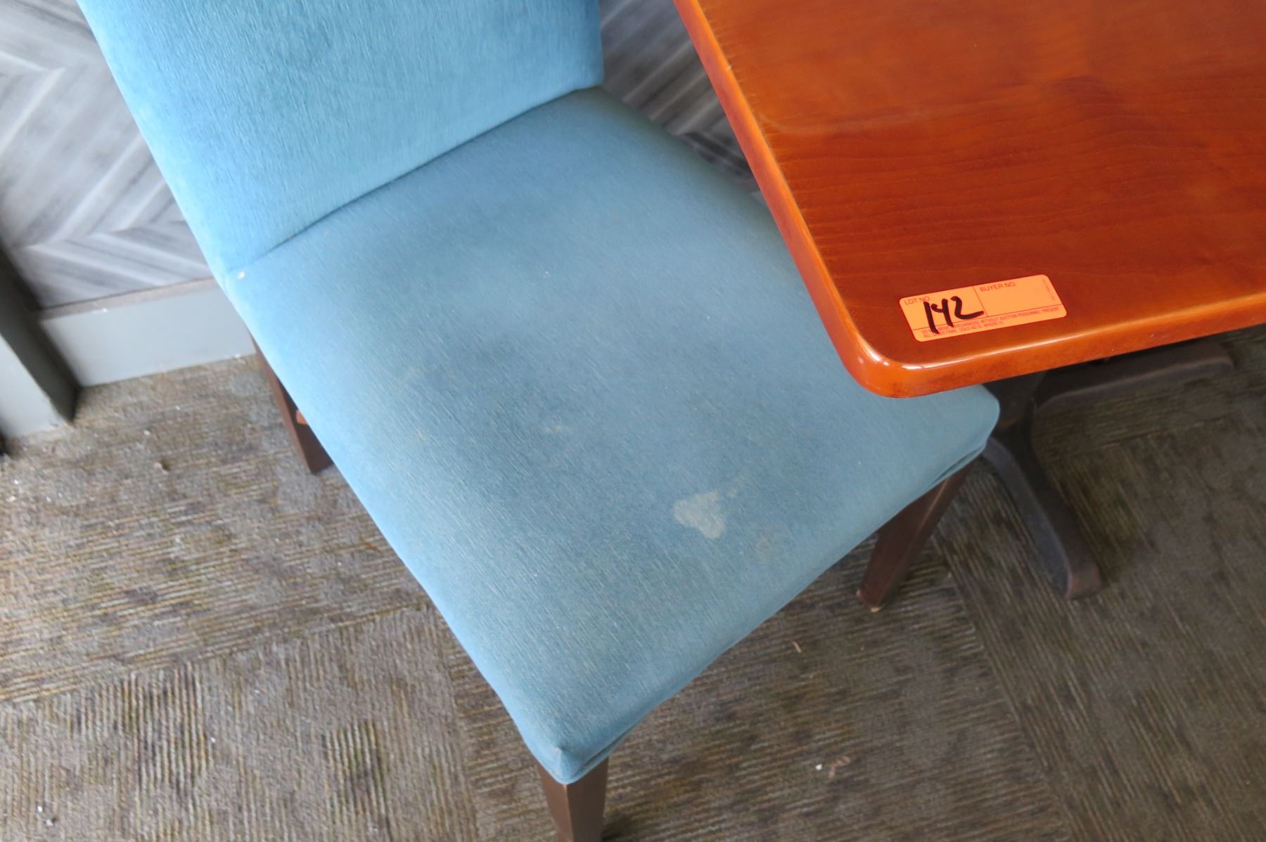 Rectangular Wooden Table w/ Metal Base (38" x 28" x 30") & 2 Upholstered Chairs