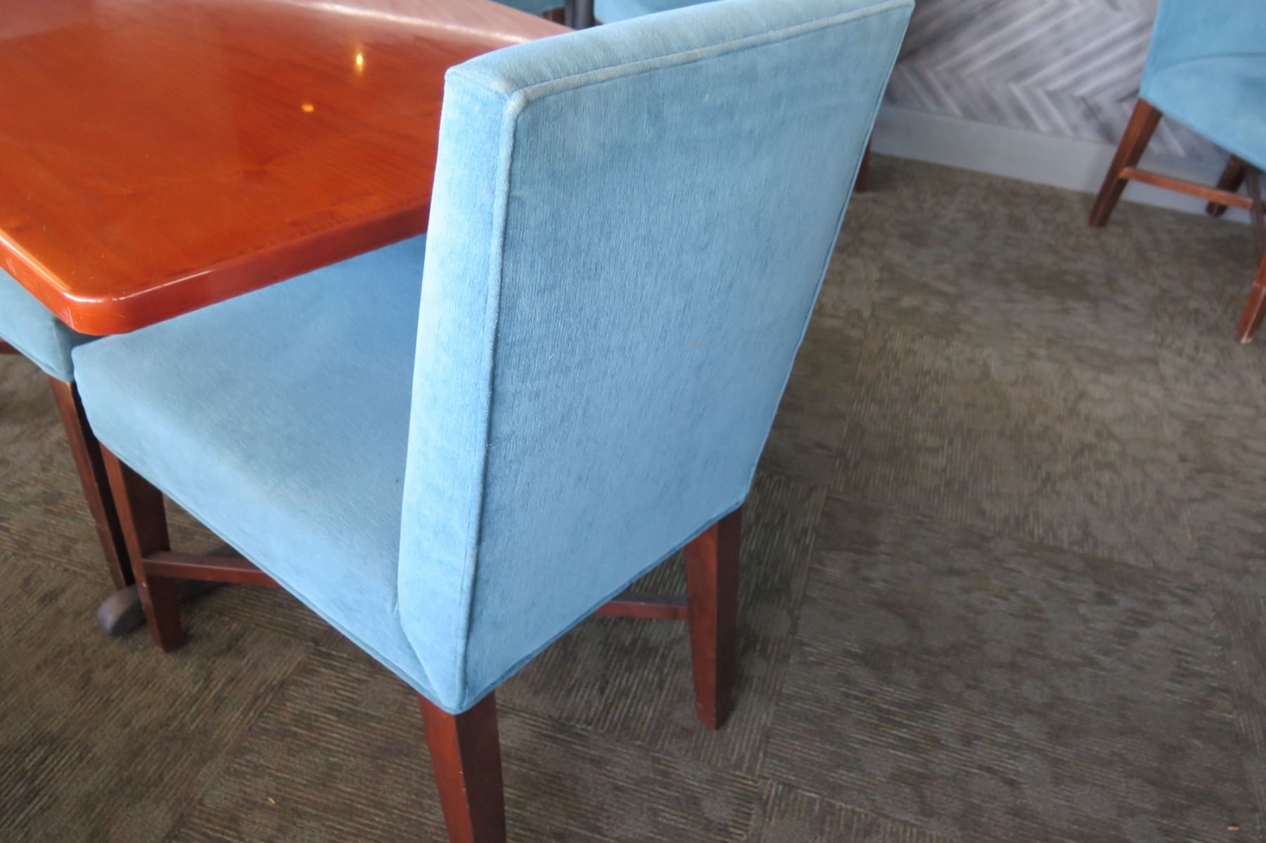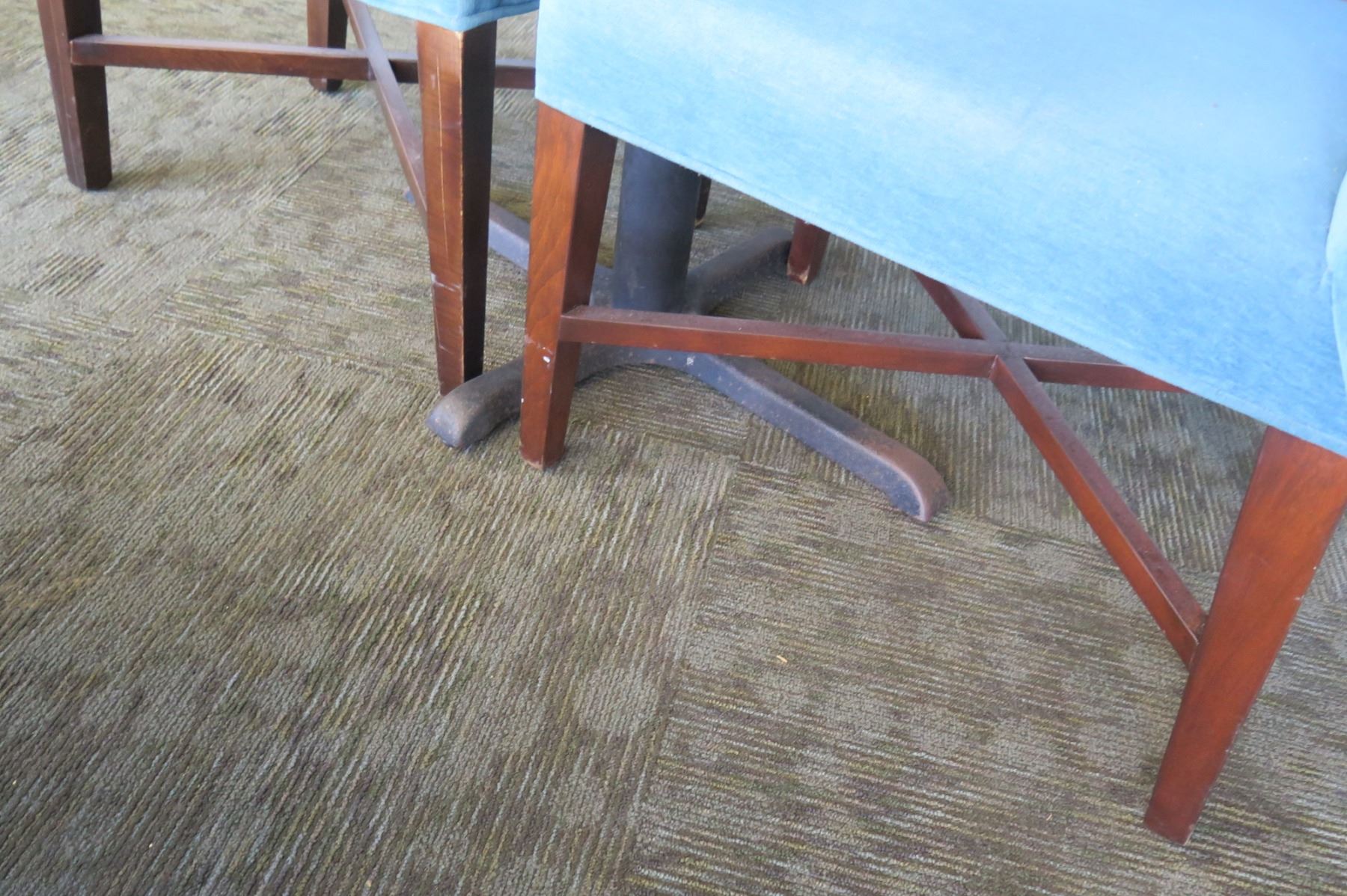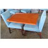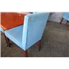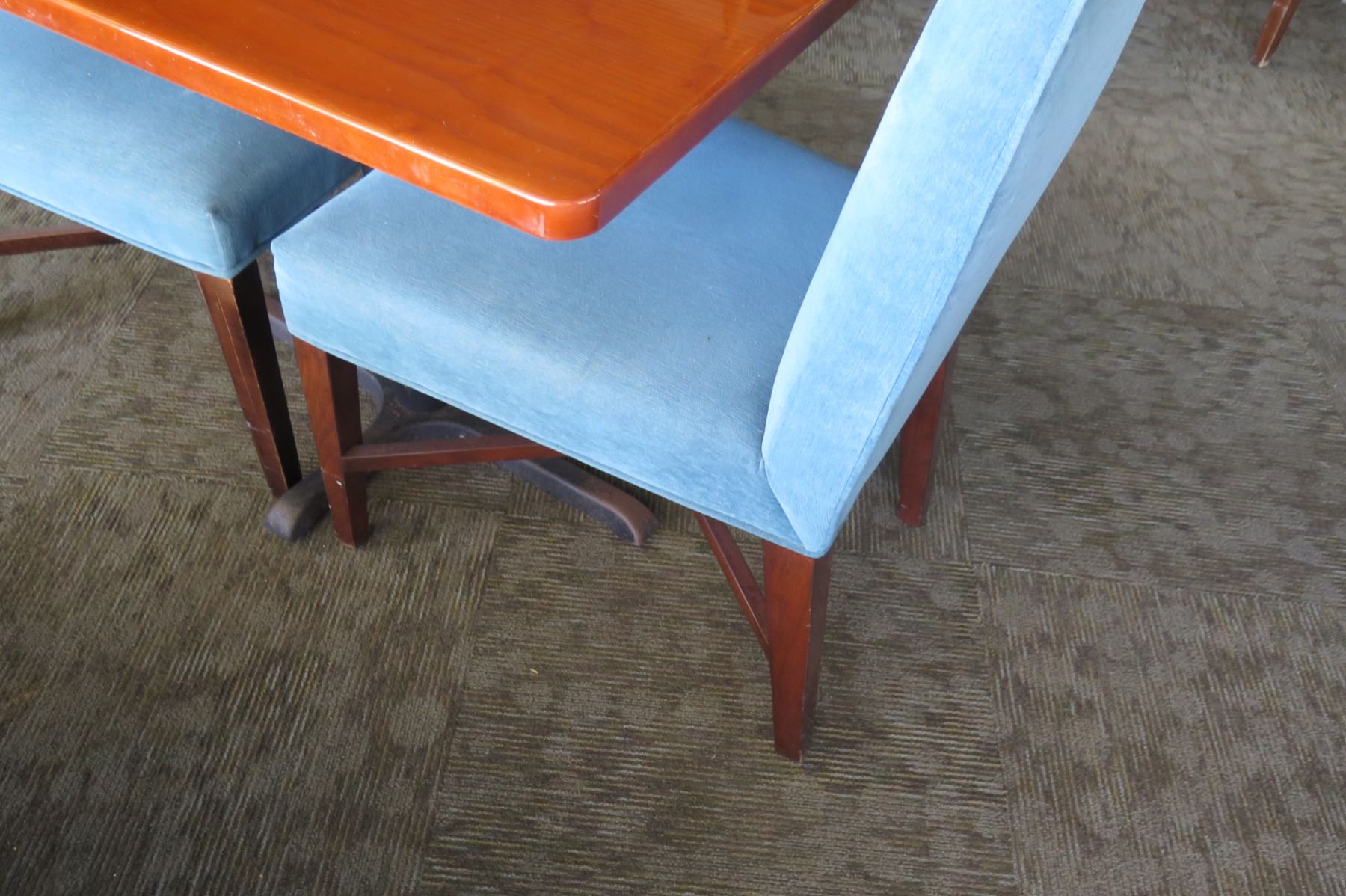Rectangular Wooden Table w/ Metal Base (38" x 28" x 30") & 2 Upholstered Chairs