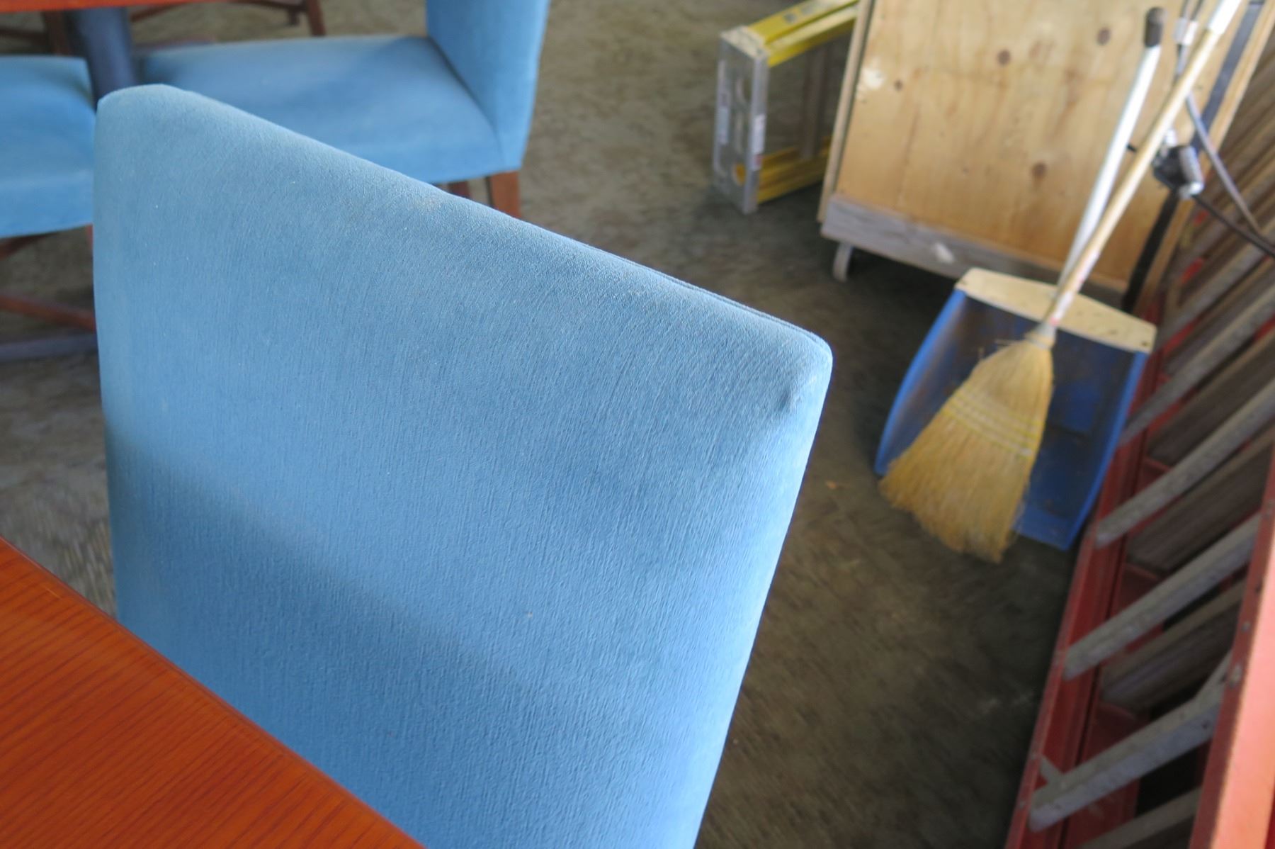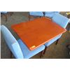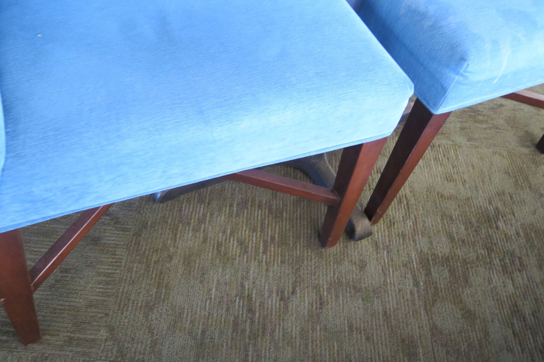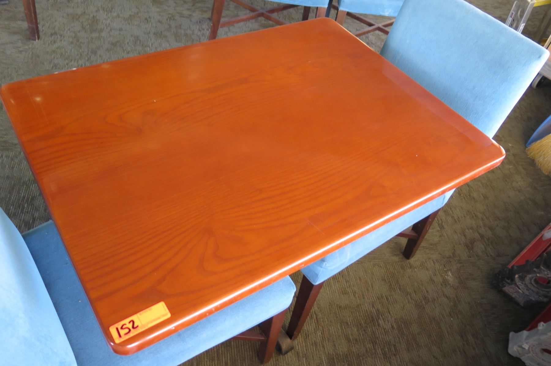 Rectangular Wooden Table w/ Metal Base (38" x 28" x 30") & 2 Upholstered Chairs