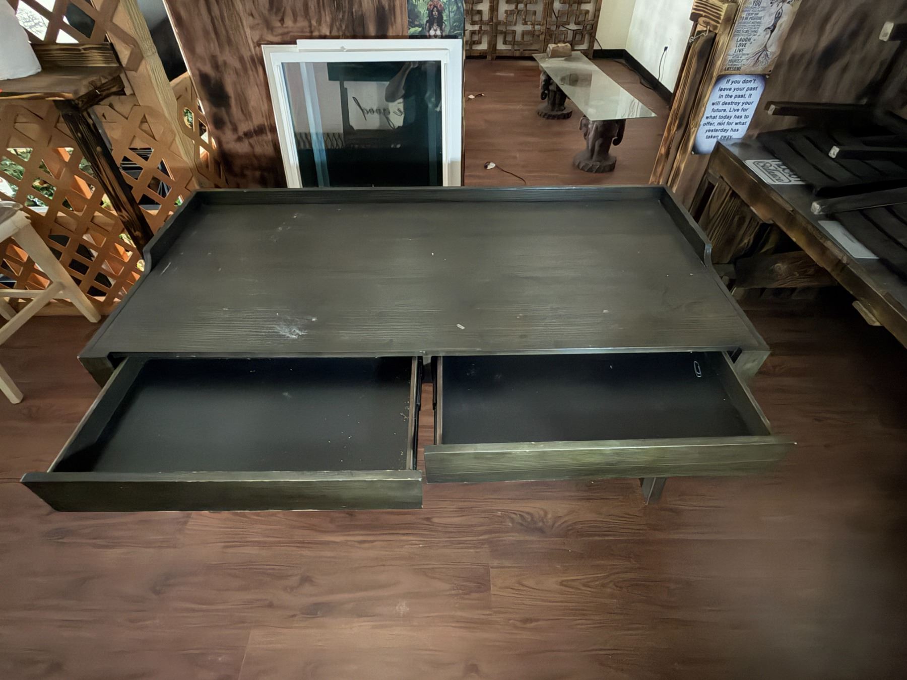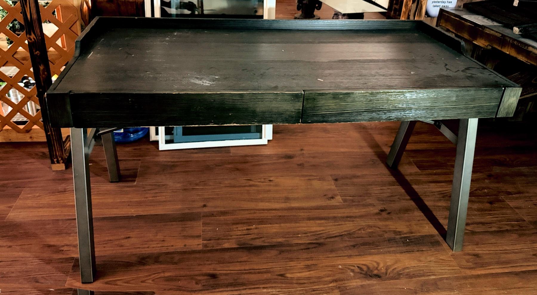 Rectangular Wooden Table w/ Metal Legs & 2 Drawers 60" x 27" x 31"H