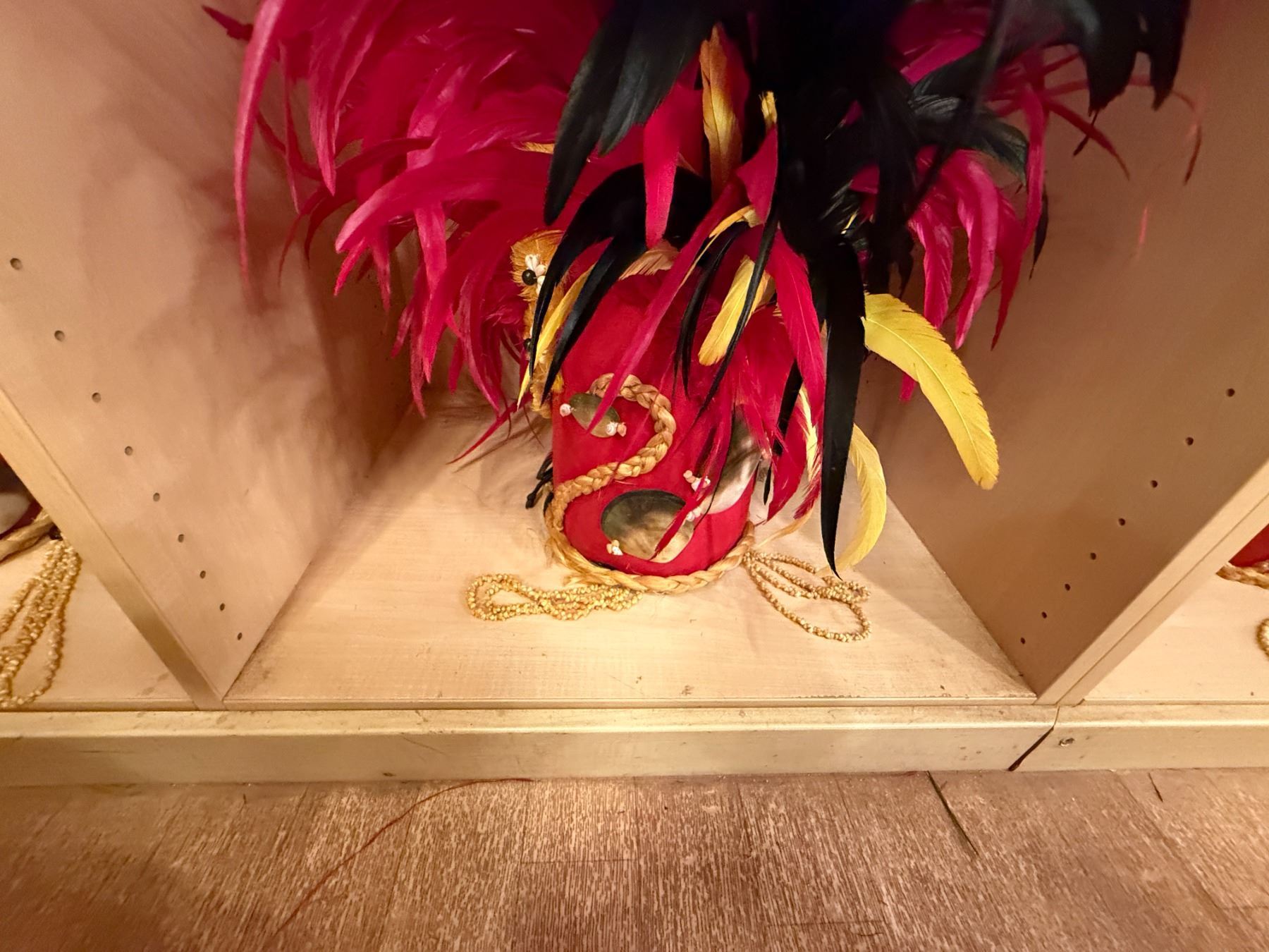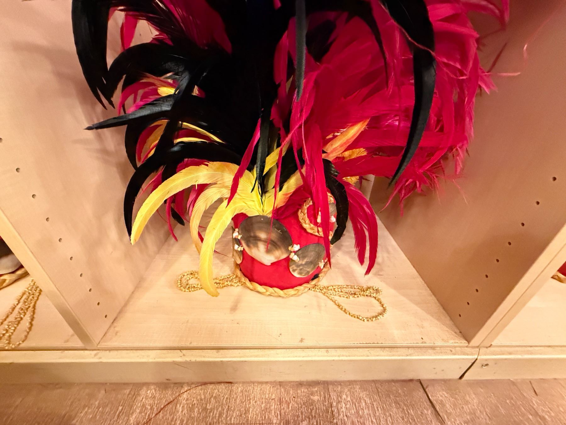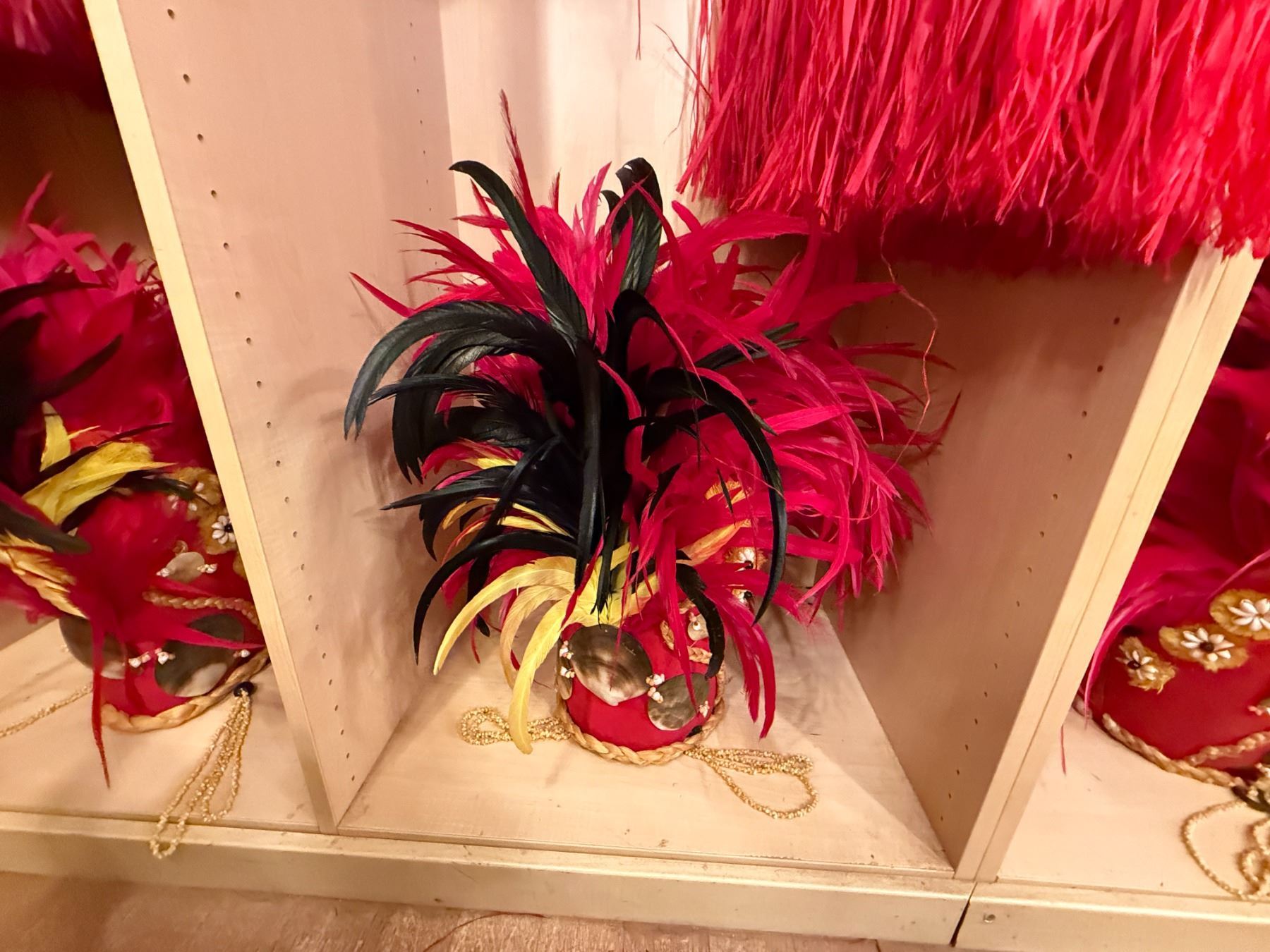 Red Artificial Fringe Dance Skirt w/ Hip Hei Band, Headdress, Uli Uli, Gourd & Tassels