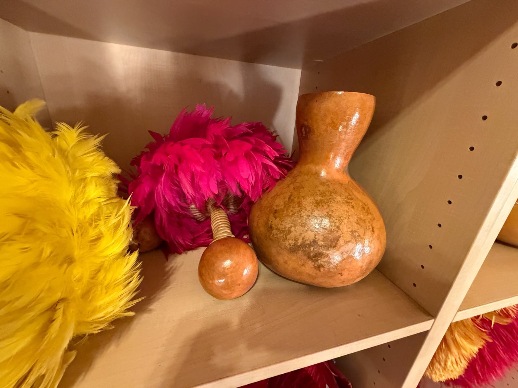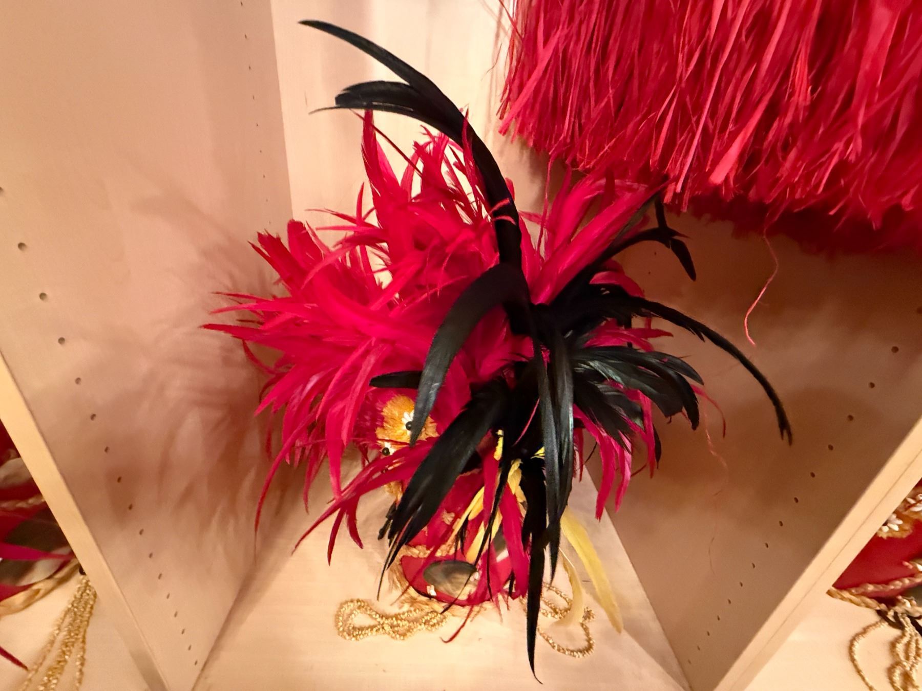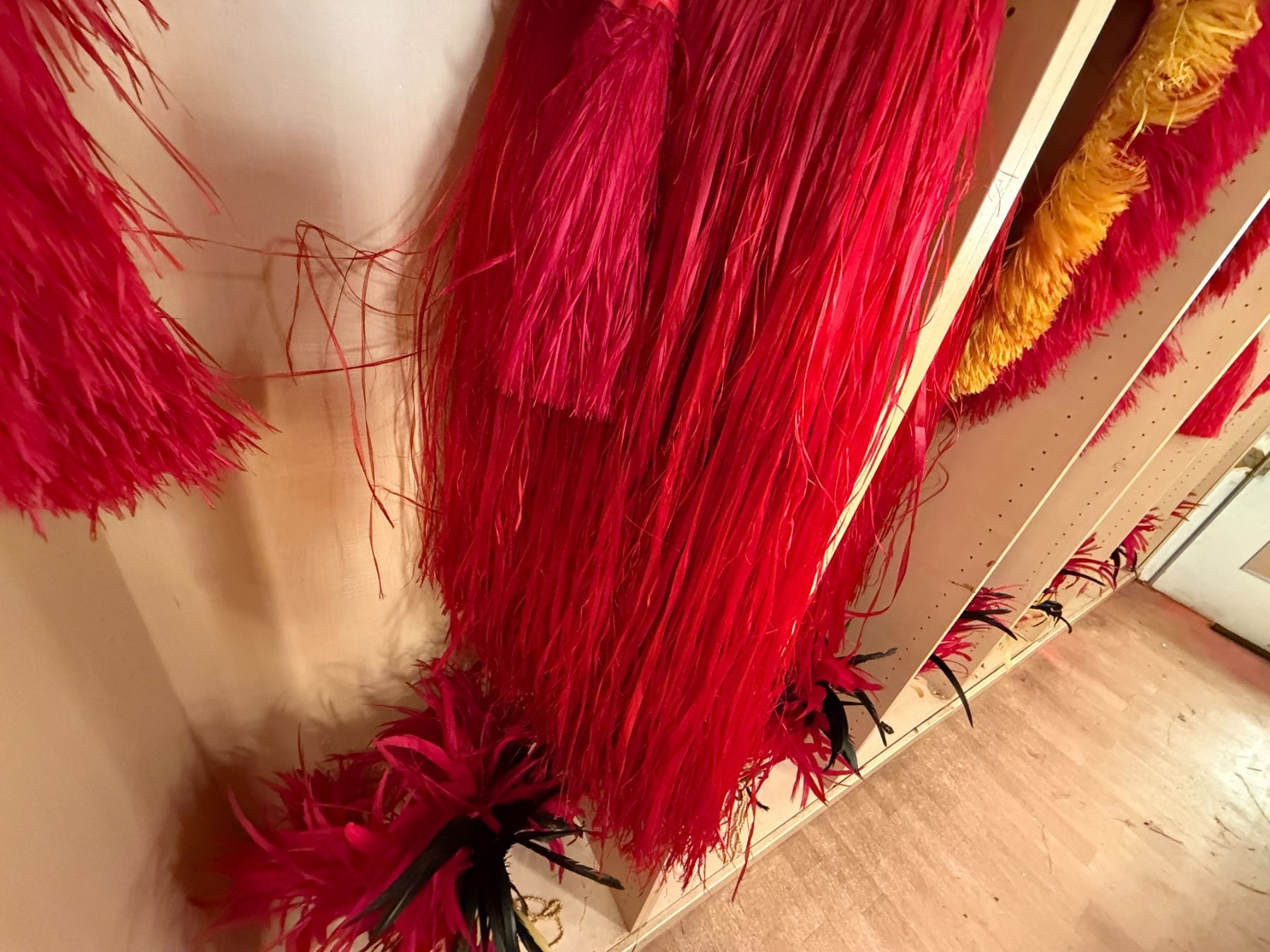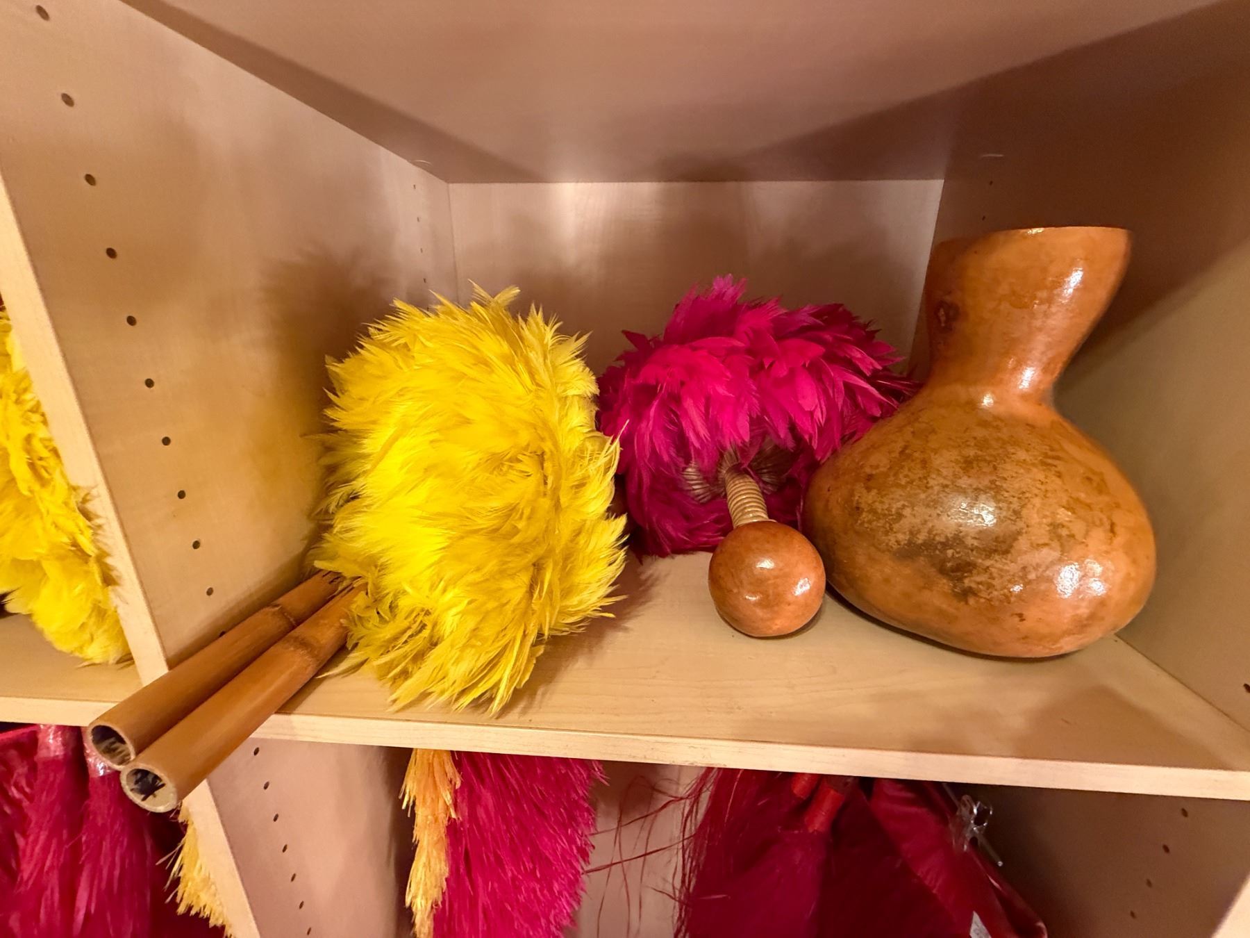 Red Artificial Fringe Dance Skirt w/ Hip Hei Band, Headdress, Uli Uli, Gourd & Tassels