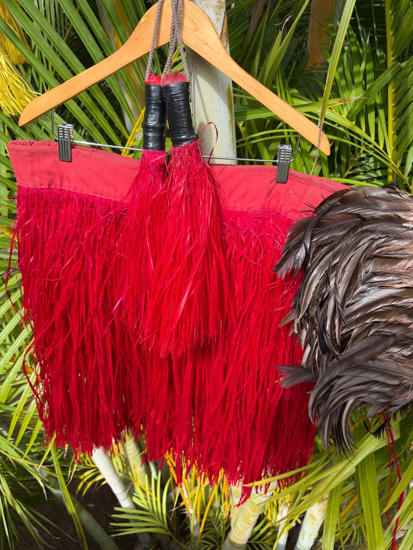 Red Artificial Fringe Dance Skirt w/ Hip Hei Band & Tassels