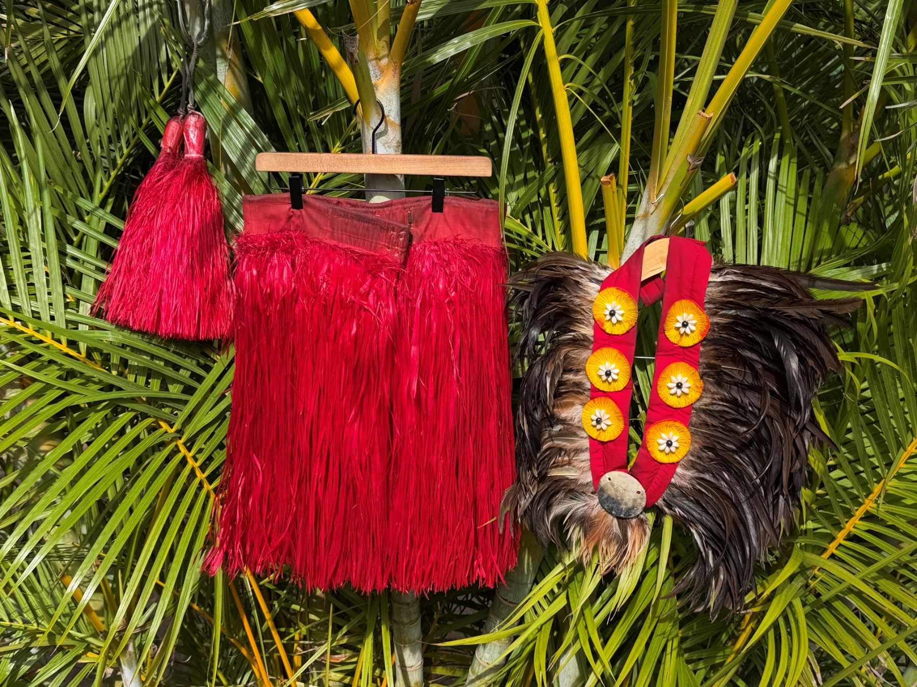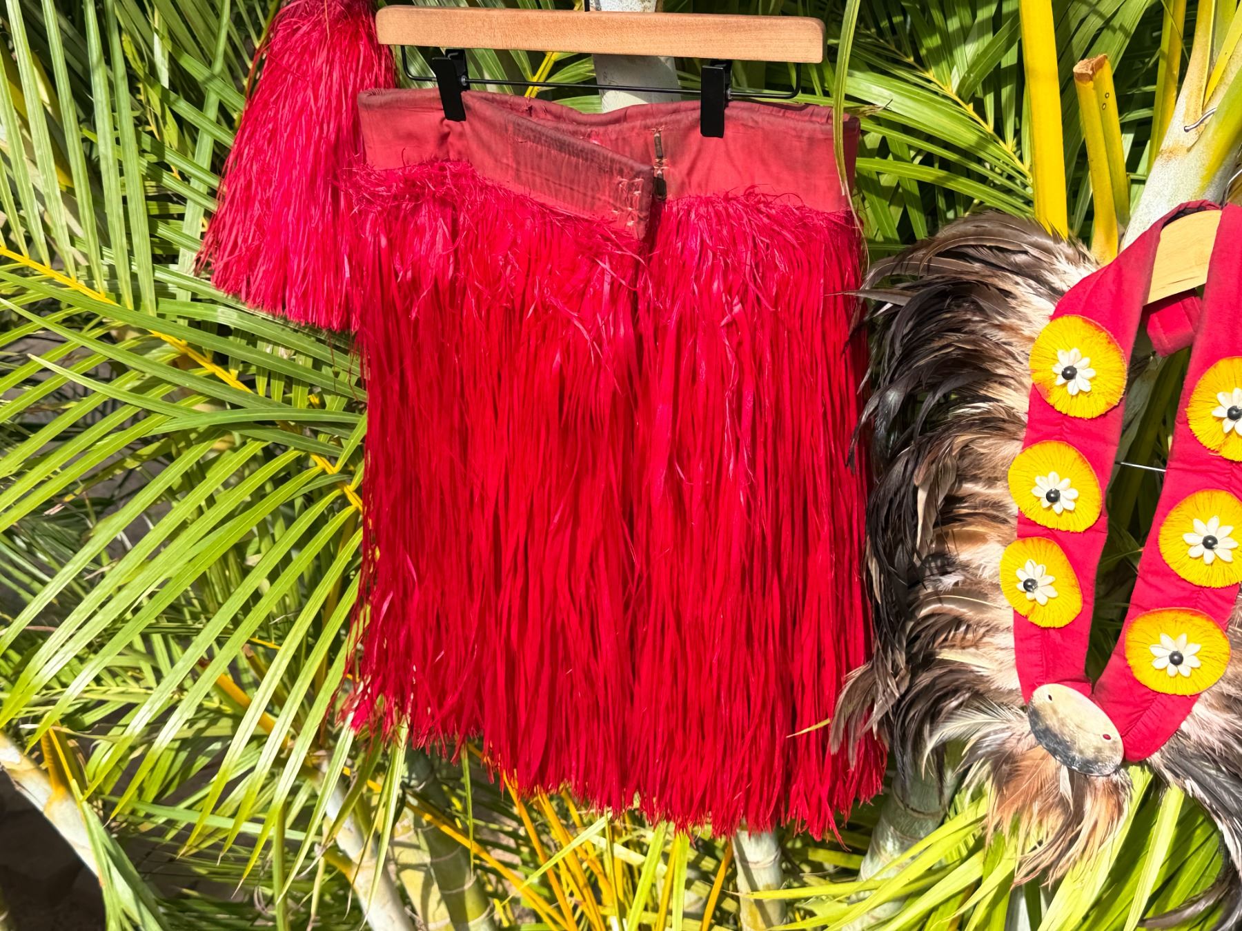 Red Artificial Fringe Dance Skirt w/ Hip Hei Band & Tassels