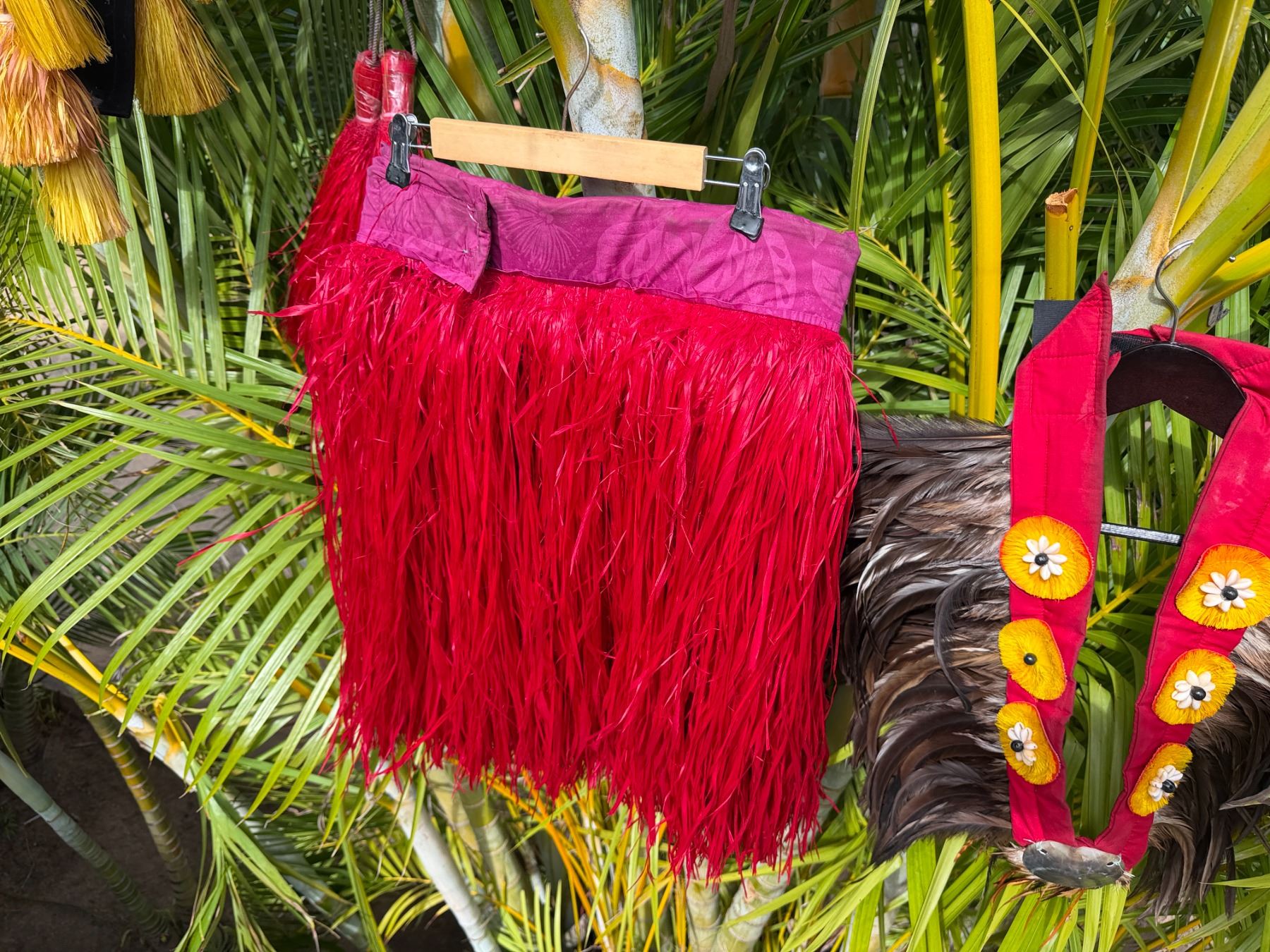 Red Artificial Fringe Dance Skirt w/ Hip Hei Band & Tassels