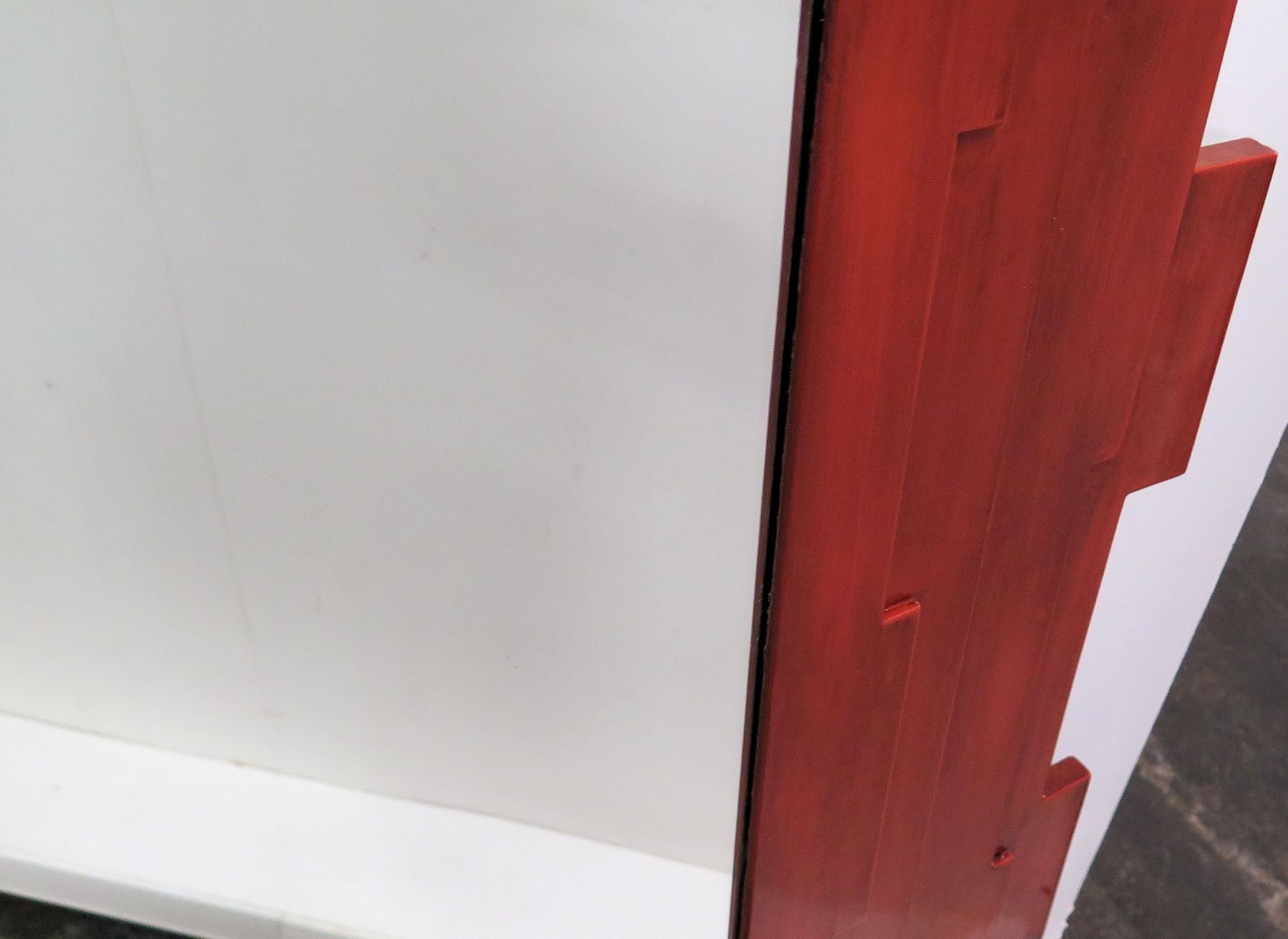 Red Geometric Lacquered Mirror 59" x 54". These can be seen in a photo with Jim Nabors in his home that was sold earlier this year. See last photo.