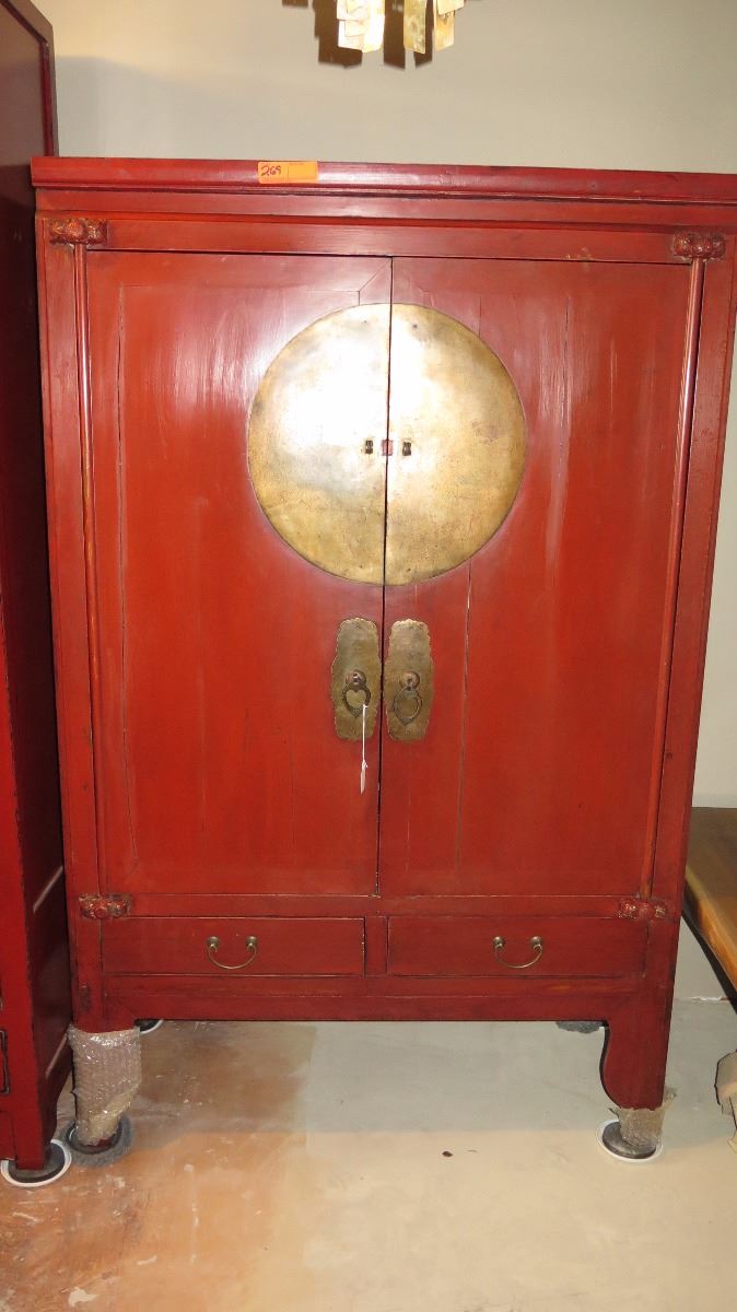 Red Lacquer Cabinet w/2 Drawers (Armoire Style) - 42" X 18" X 65.5" H