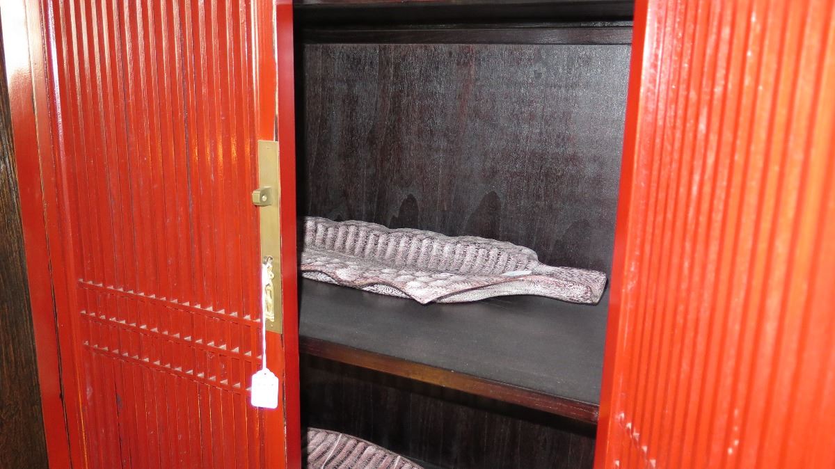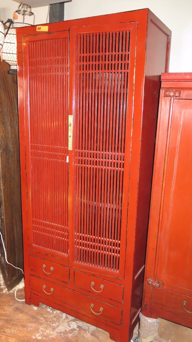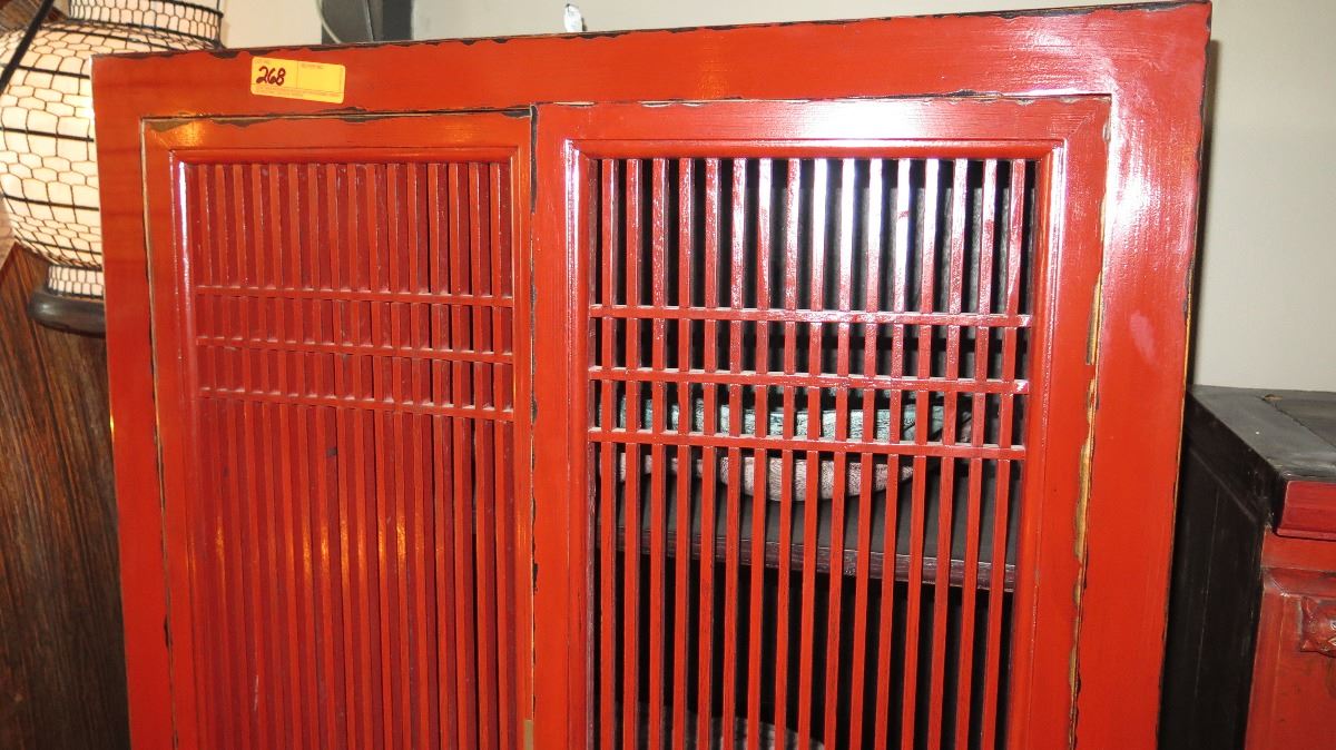 Red Lacquer Cabinet w/Slatted Dbl Doors, 2 Bottom Drawer 42" X 19" X 66" H