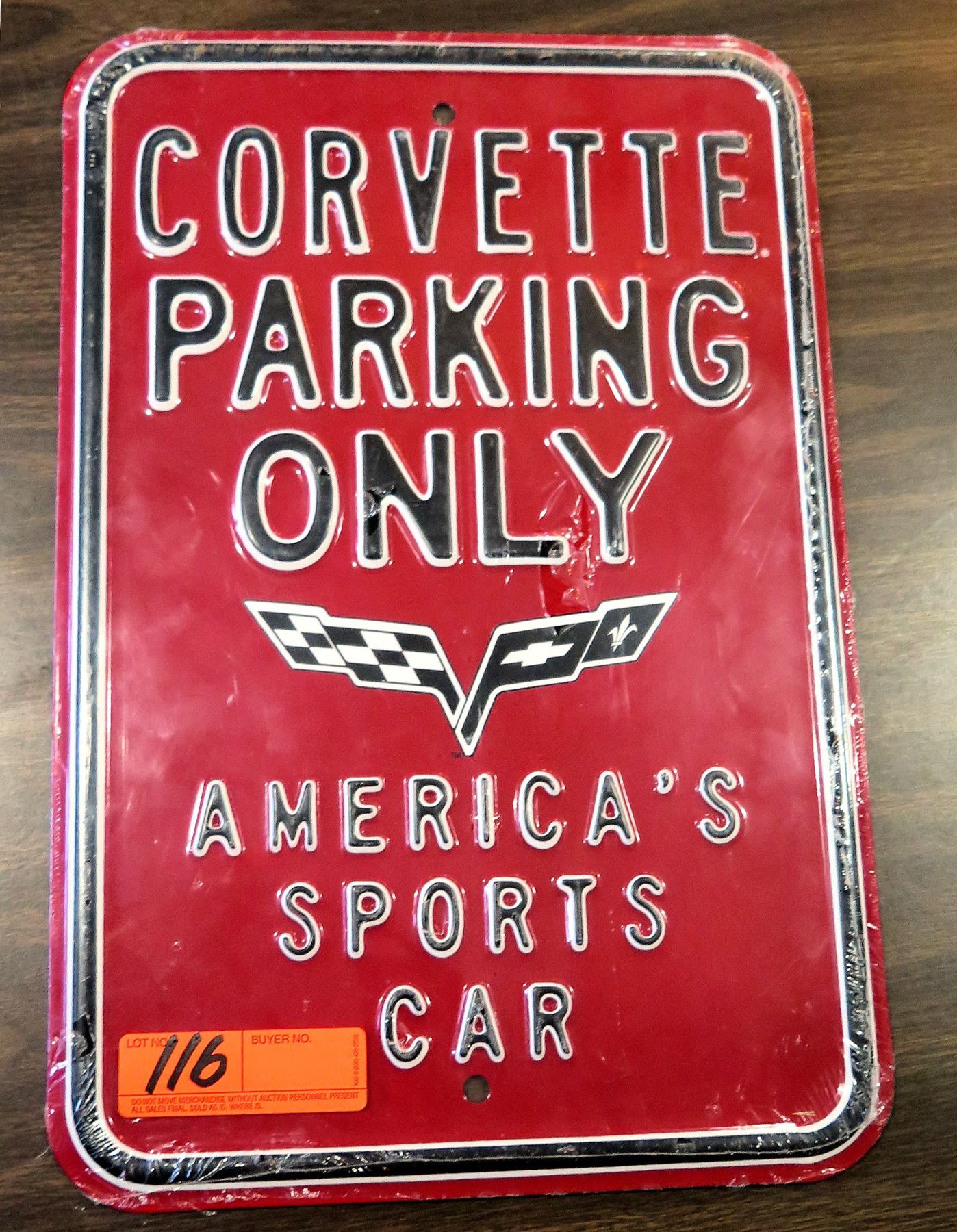 Red Metal Sign 'Corvette Parking Only - America's Sports Car'
