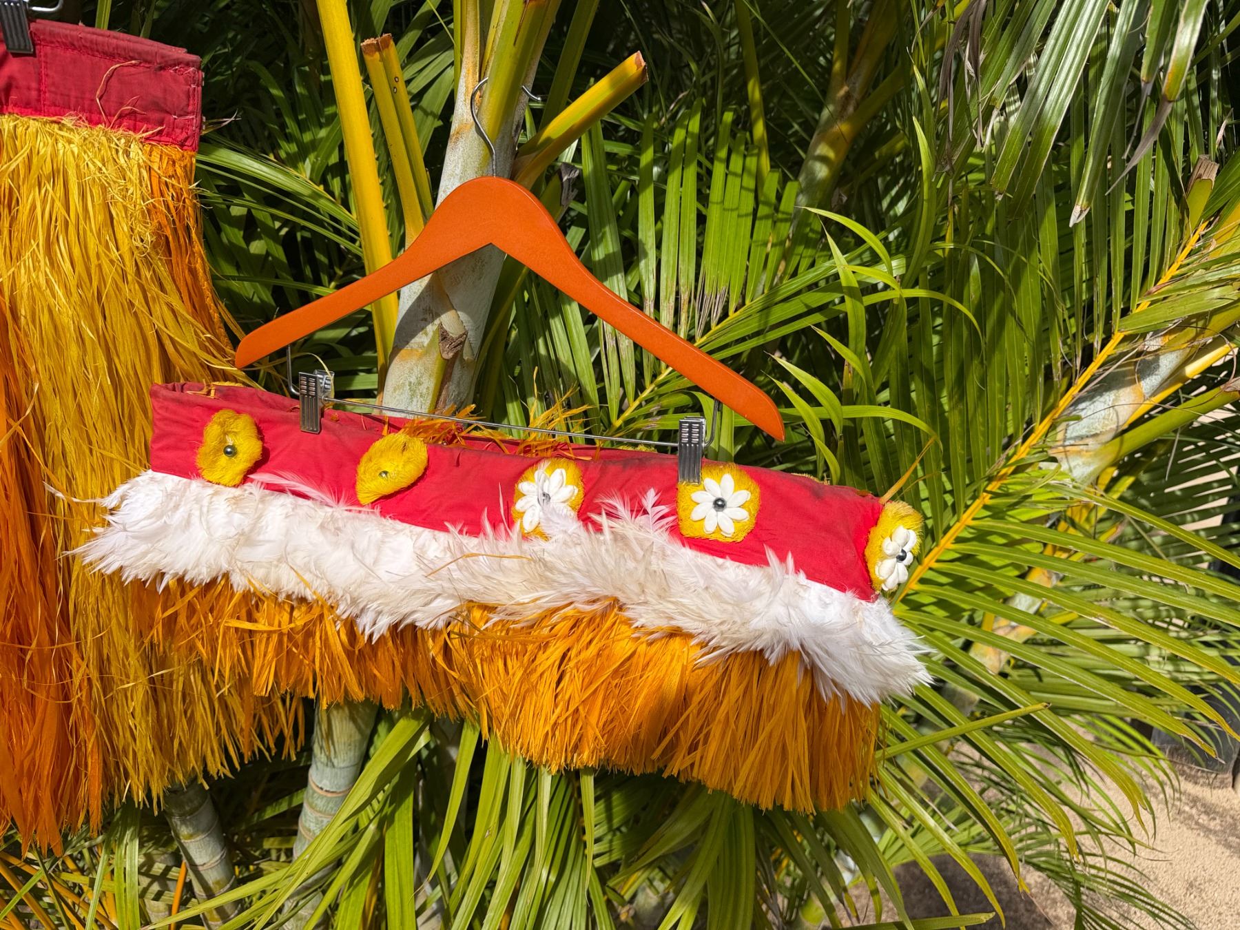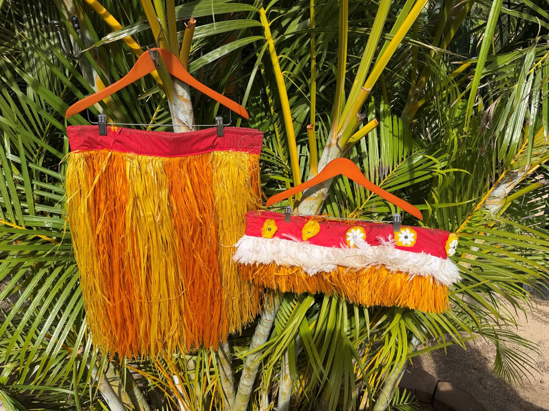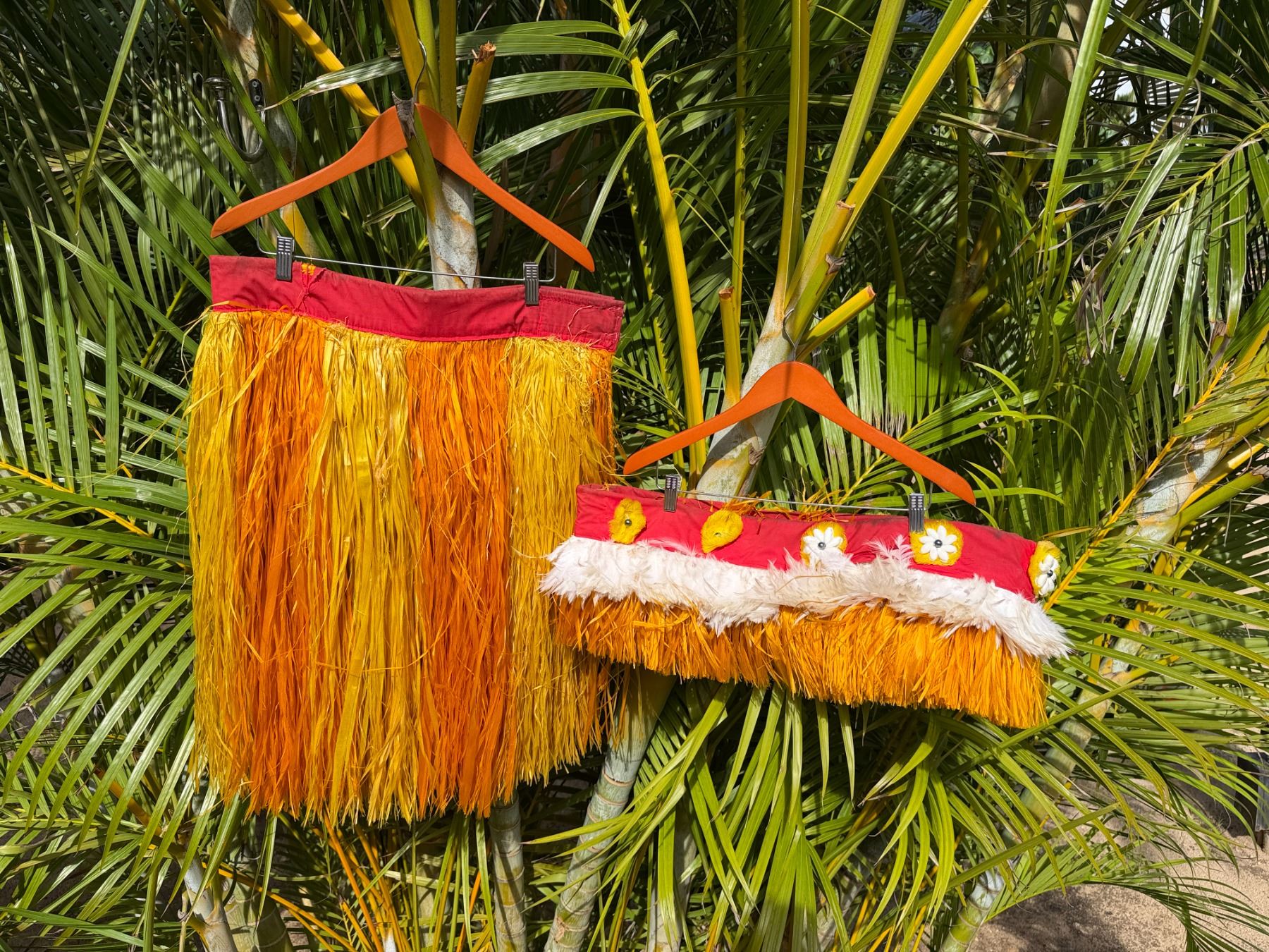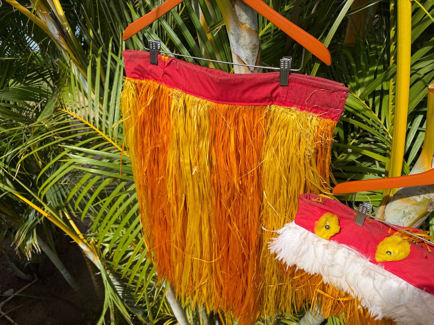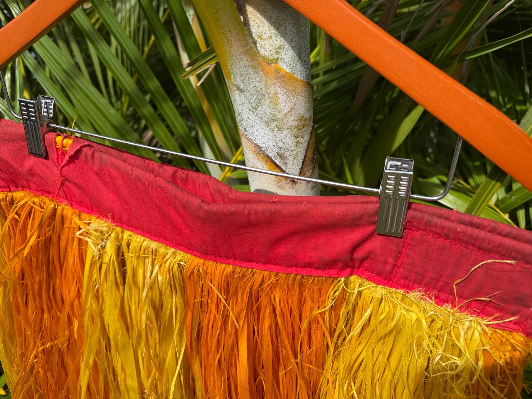 Red & Yellow Artificial Fringe Dance Skirt w/ Hip Hei Band