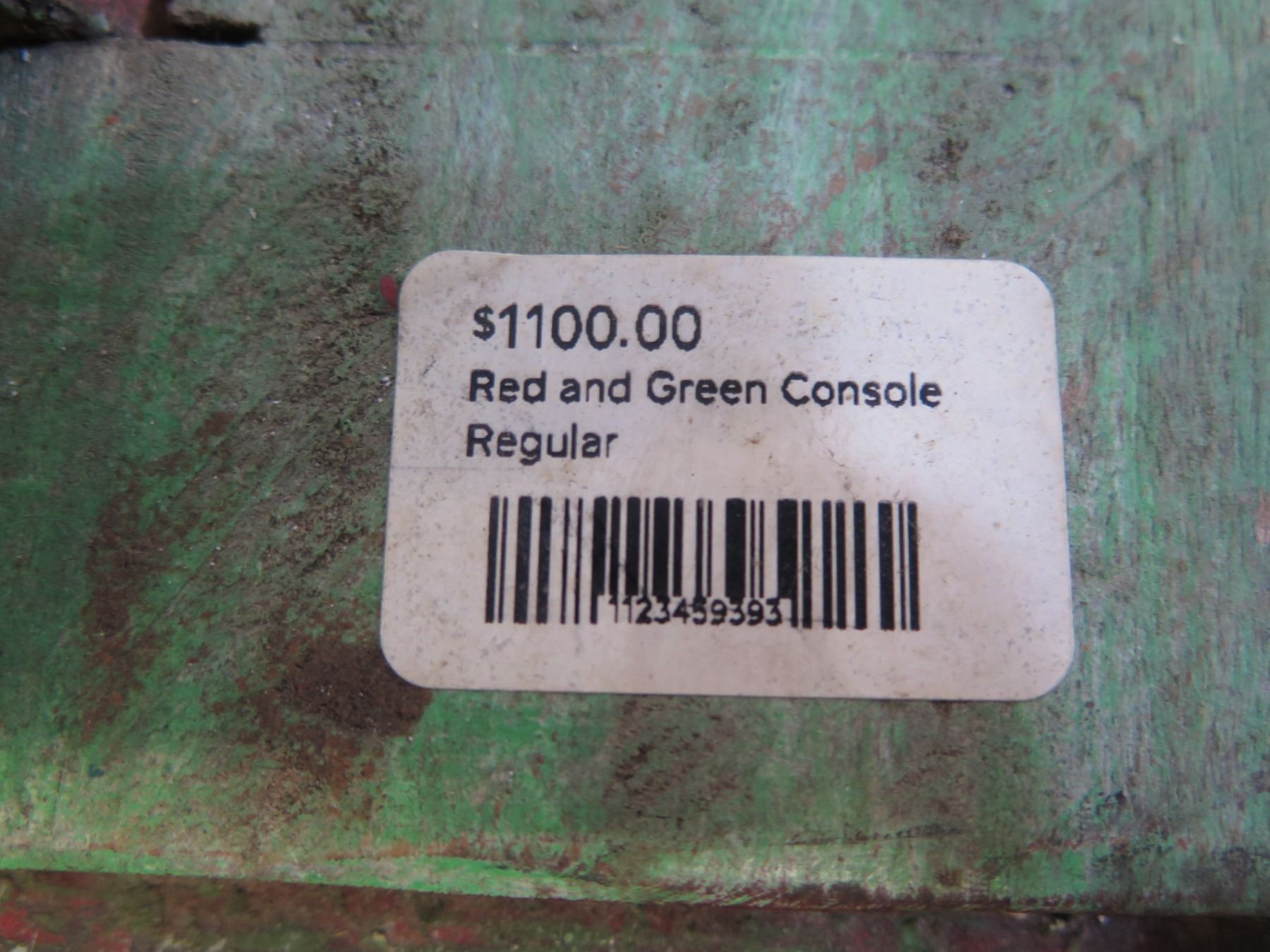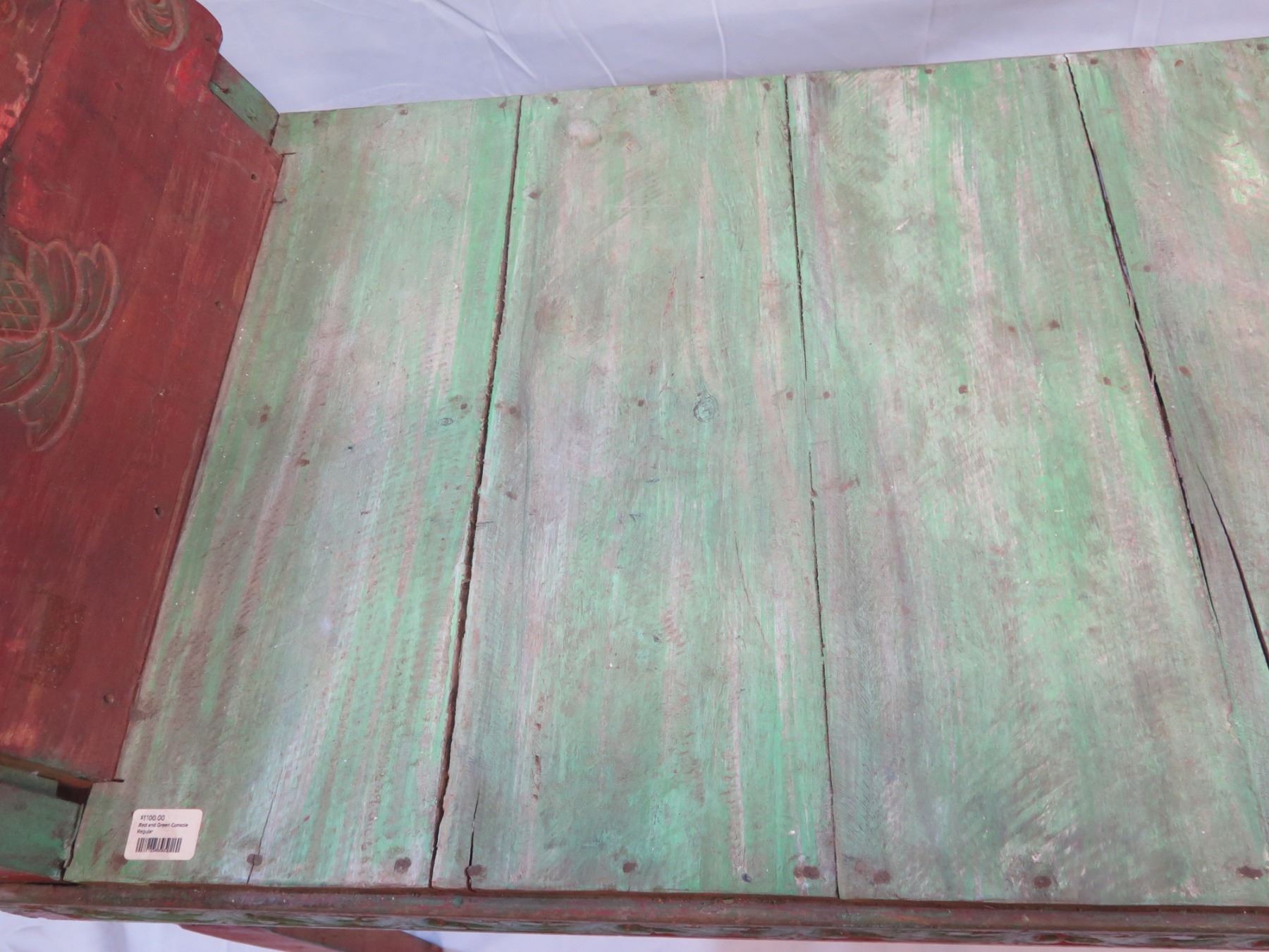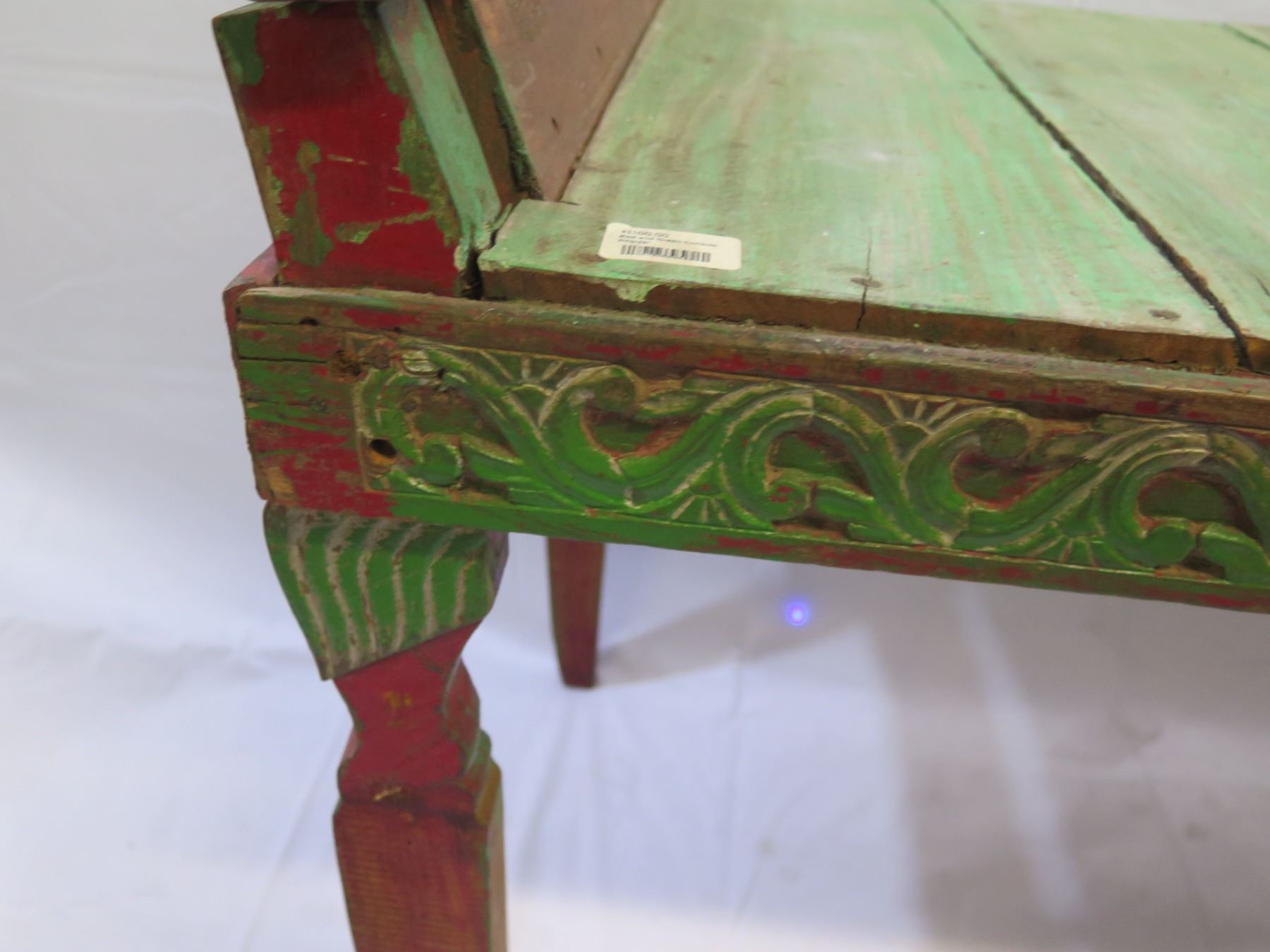 Red and Green Console w/ Raised Ends 60"x23"x26"H (Retail $1100)
