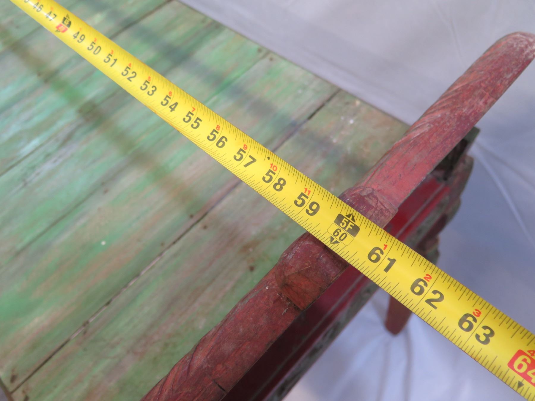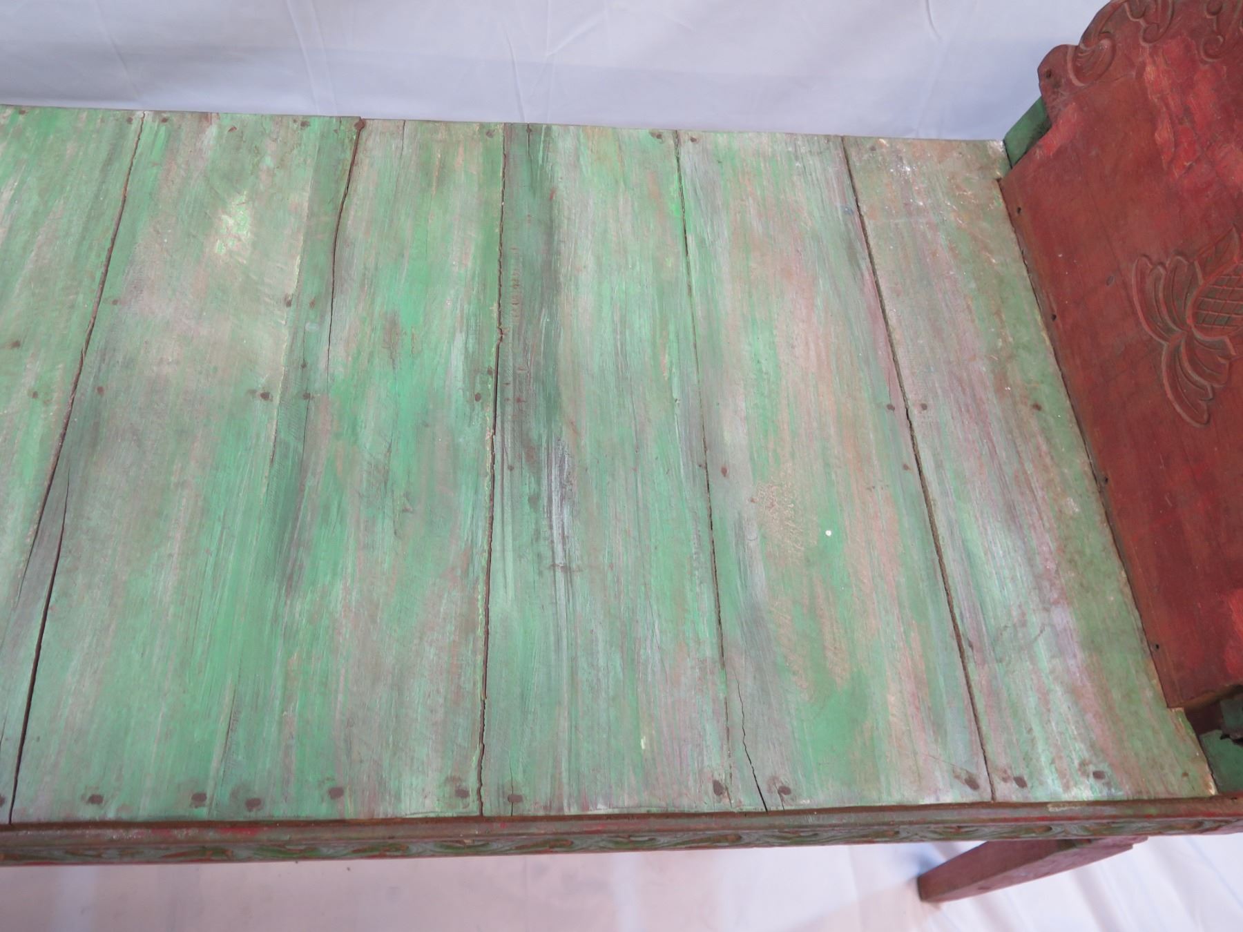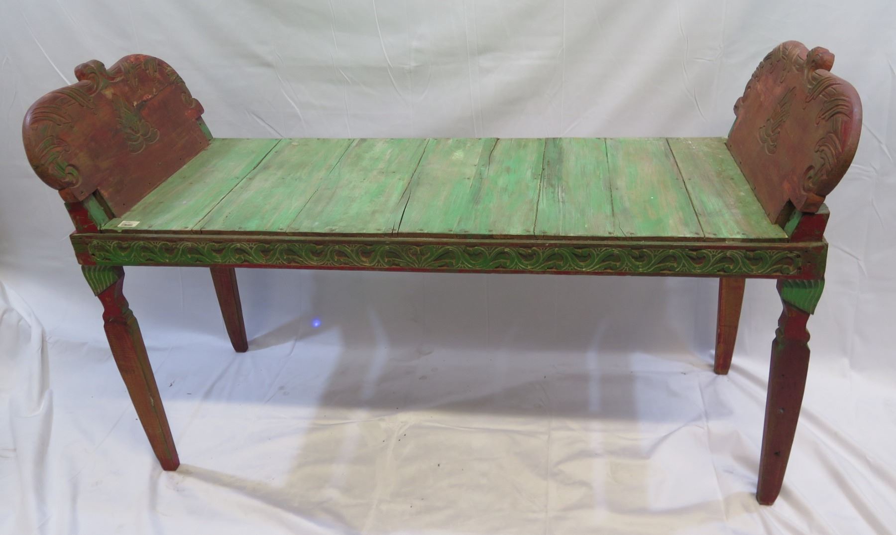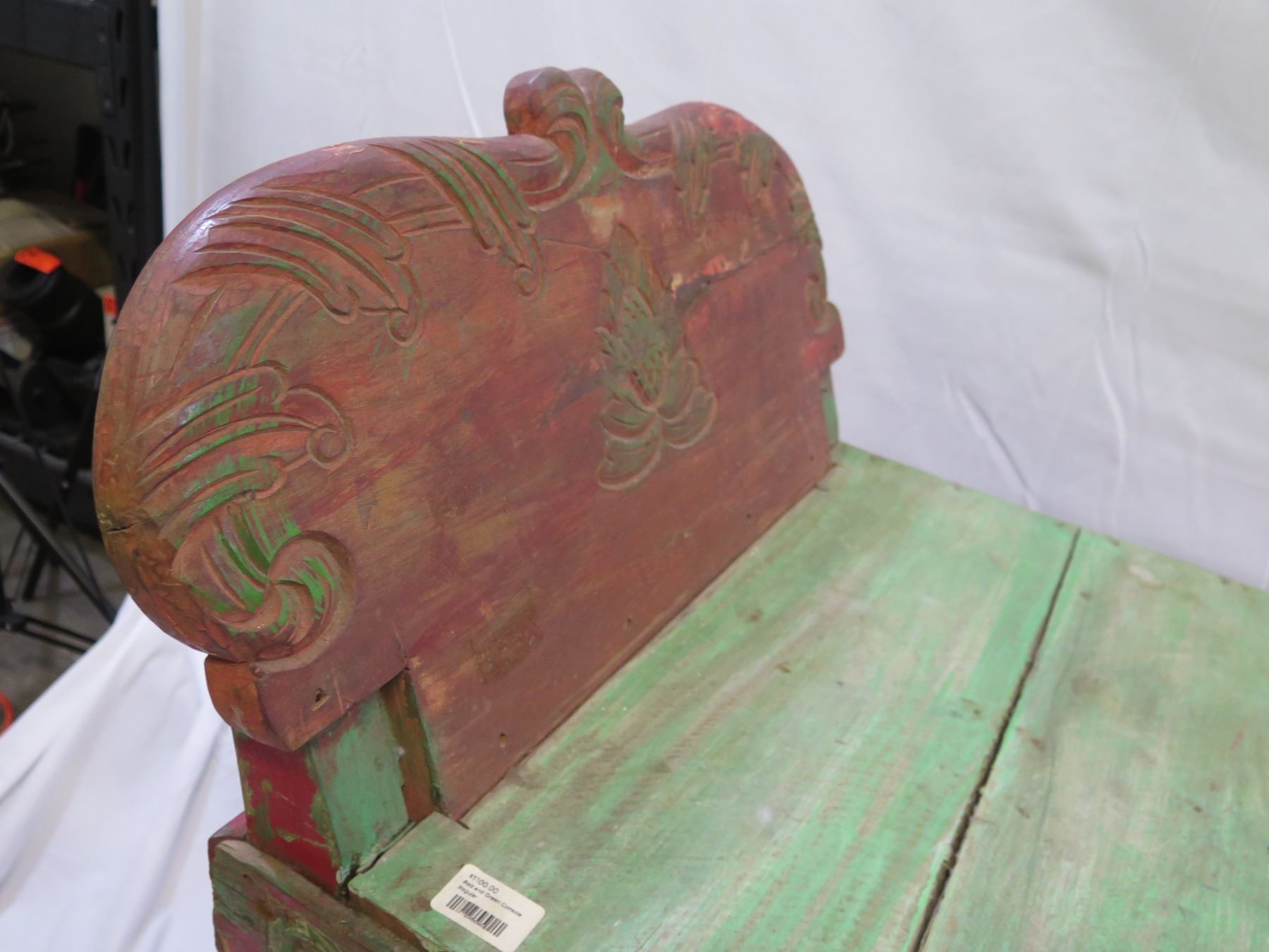 Red and Green Console w/ Raised Ends 60"x23"x26"H (Retail $1100)