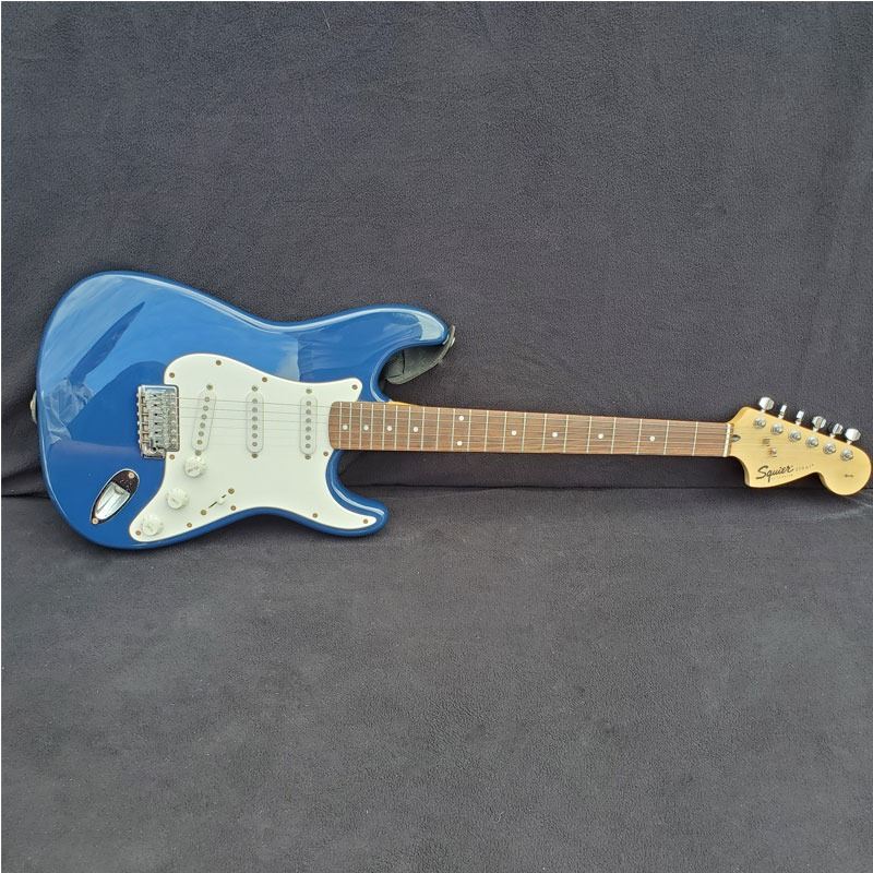 Package Includes Refurbished Squire Stratocaster (made by Fender) and 2 new Wah pedals and a box of Ernie Ball Regular Slinky Strings. Donated By: Chicago Fret Works, Morley, Ernie Ball