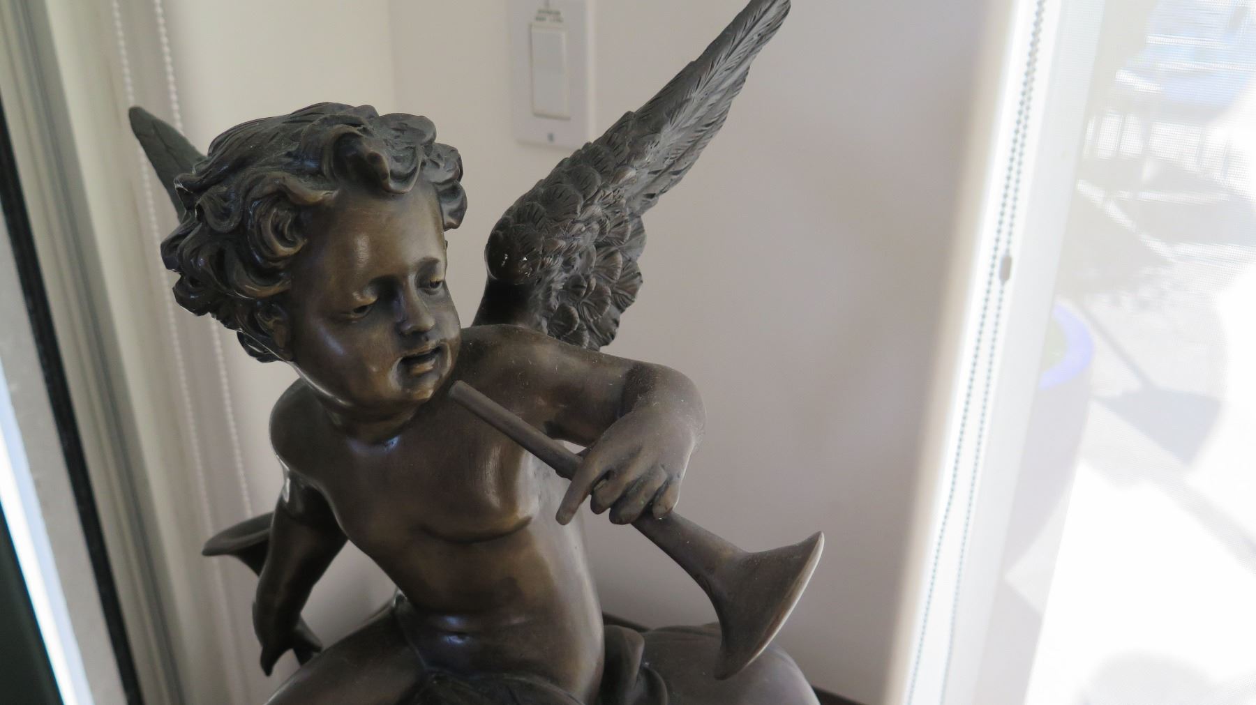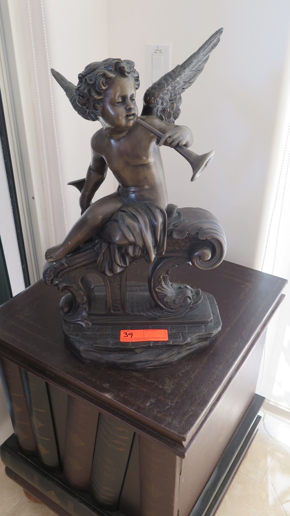Renaissance Cherub Playing w/Horn, Bronze Cast? Approx. 20" H