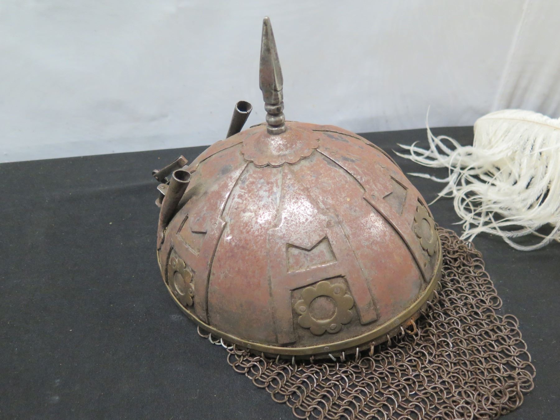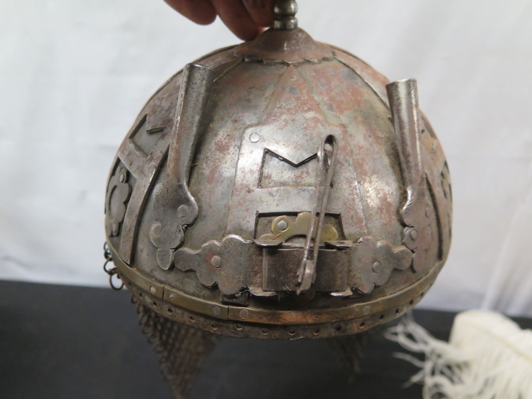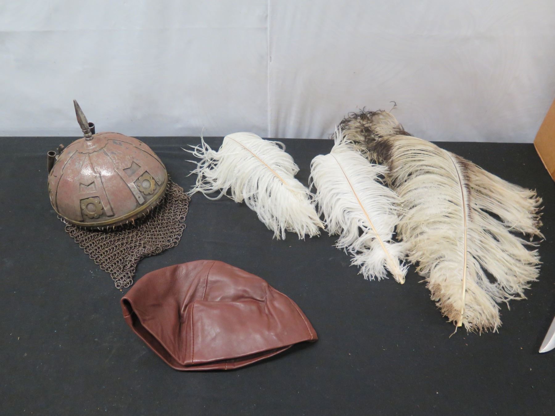 Renaissance Fair Viking Helmet w/ Chain Mask, Cap & Feathers