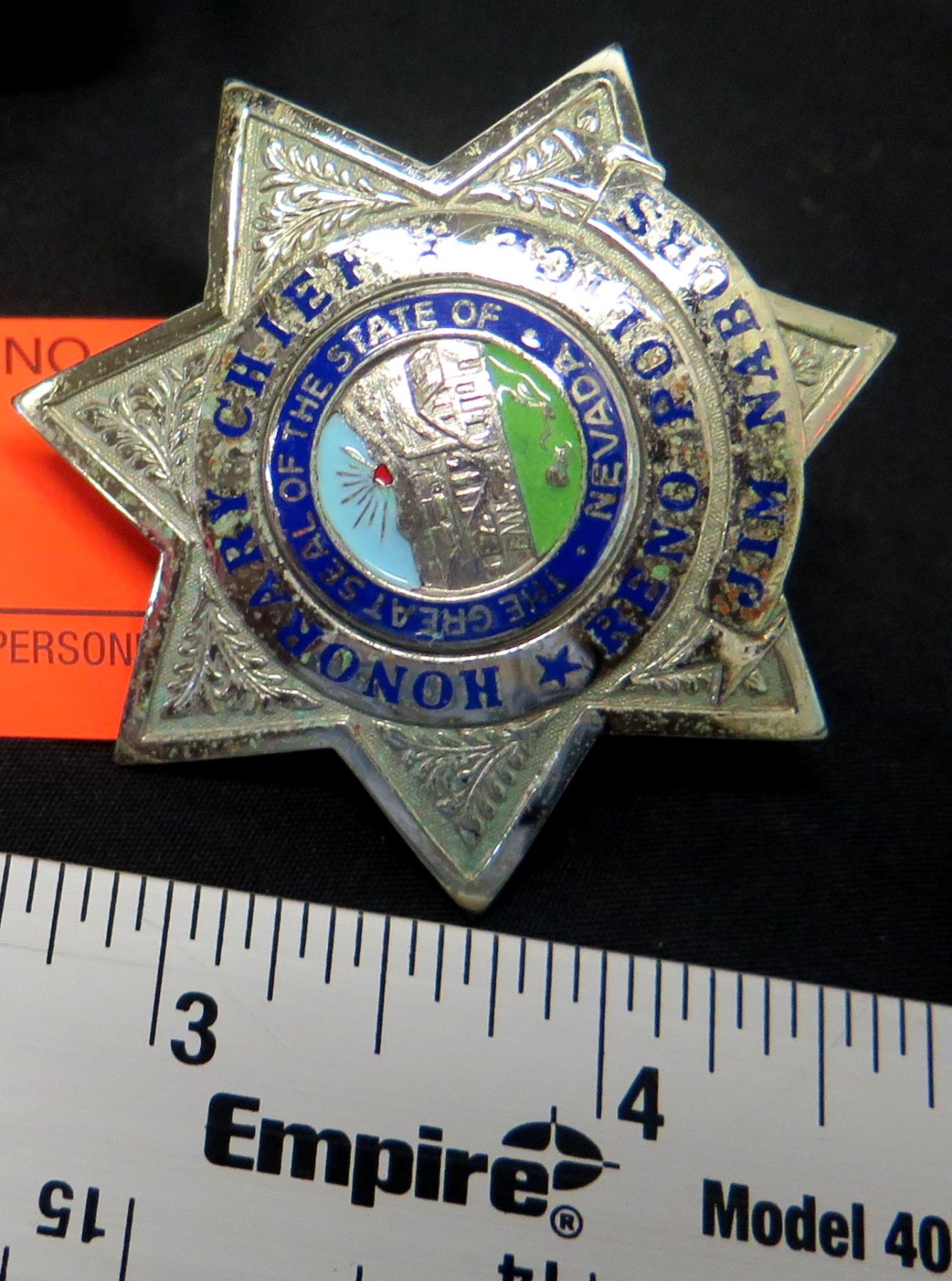 Reno Police Honorary Chief Badge, Jim Nabors (some wear & tear)