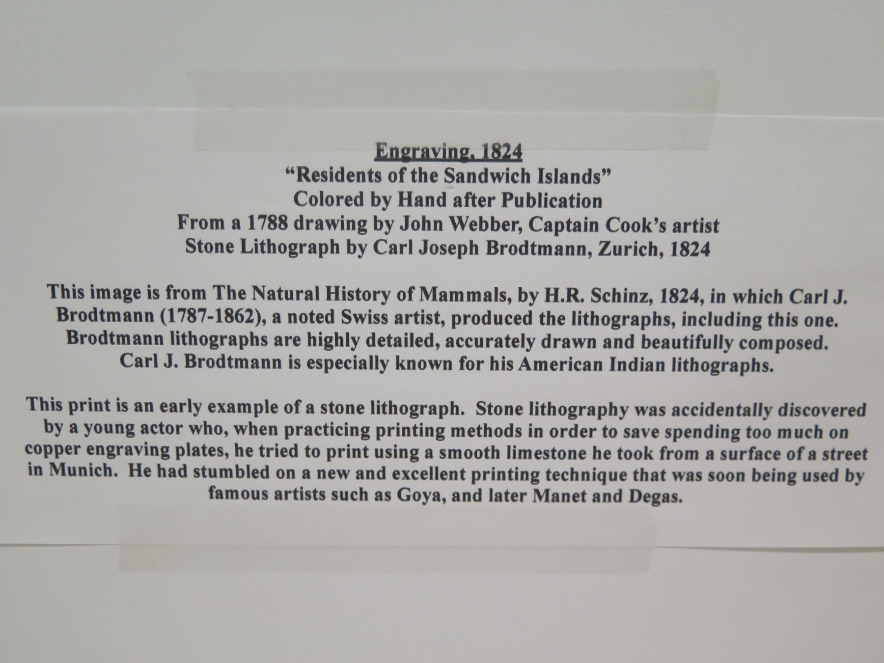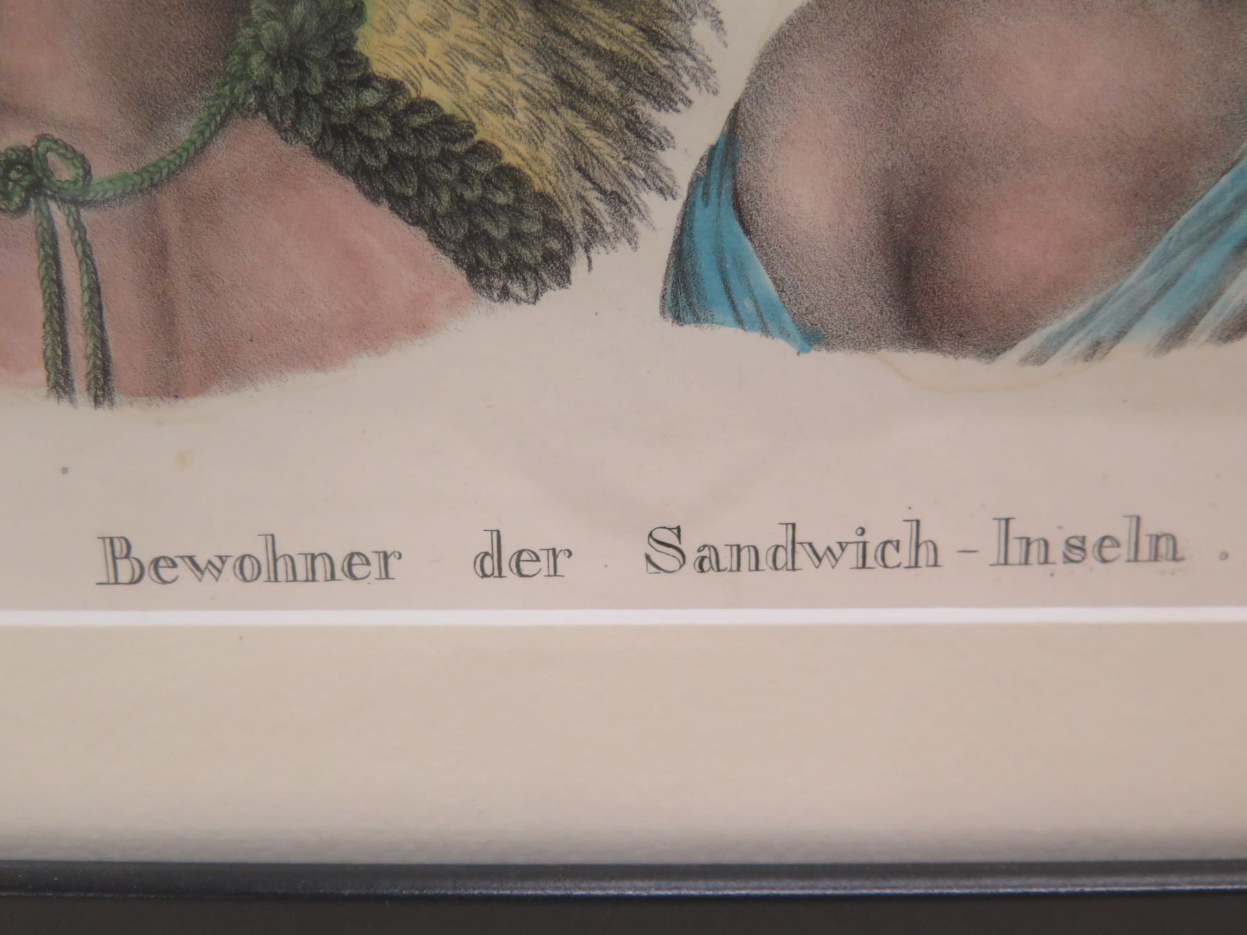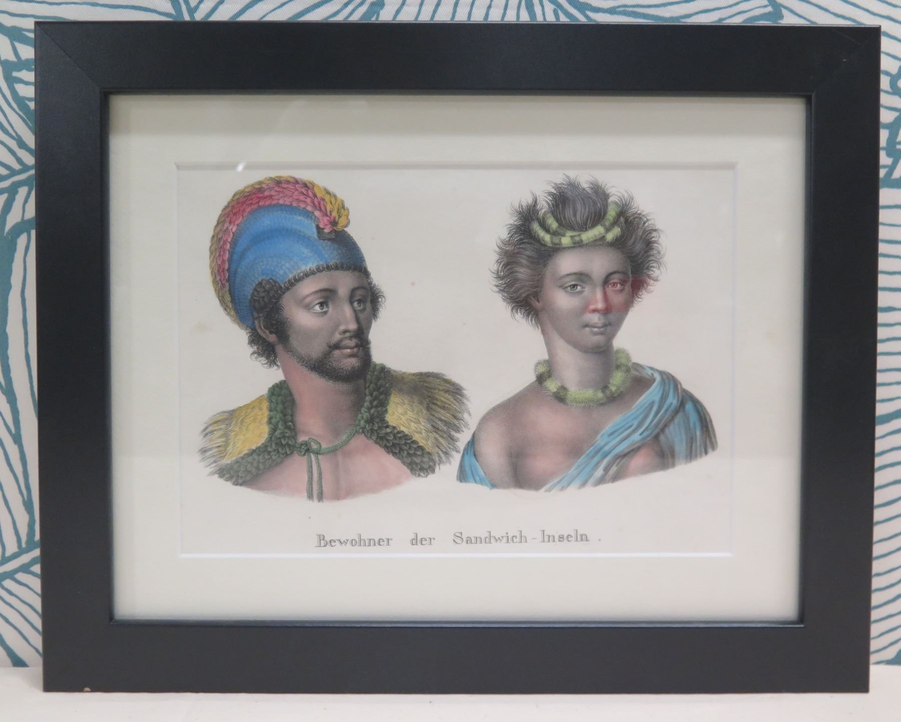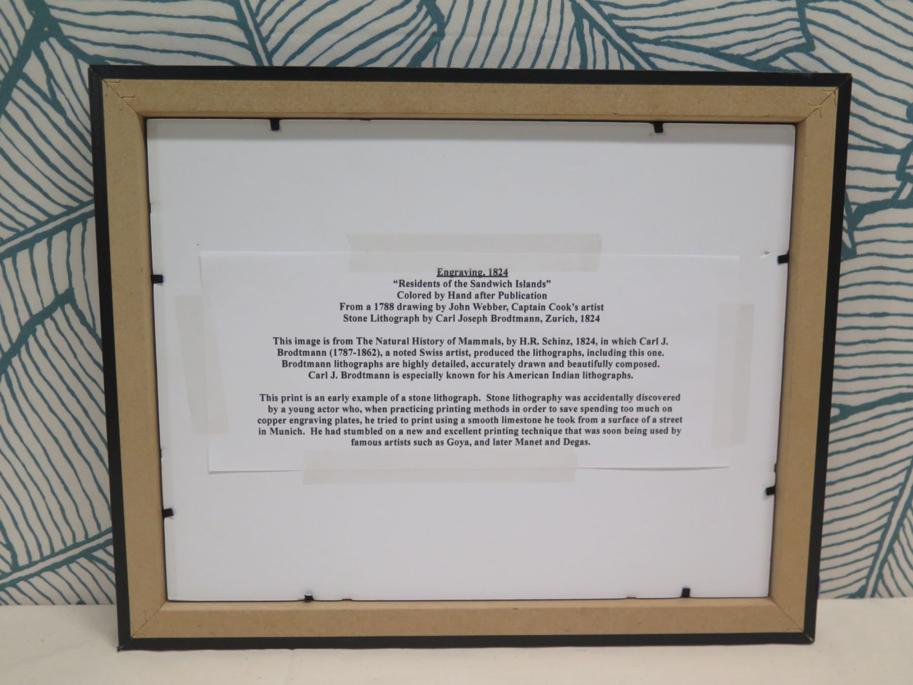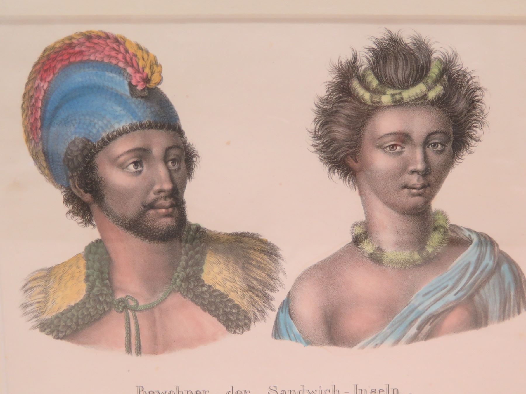 Residents of Sandwich Islands 1824 Engraving, Hand Colored, Framed, 15"x12"