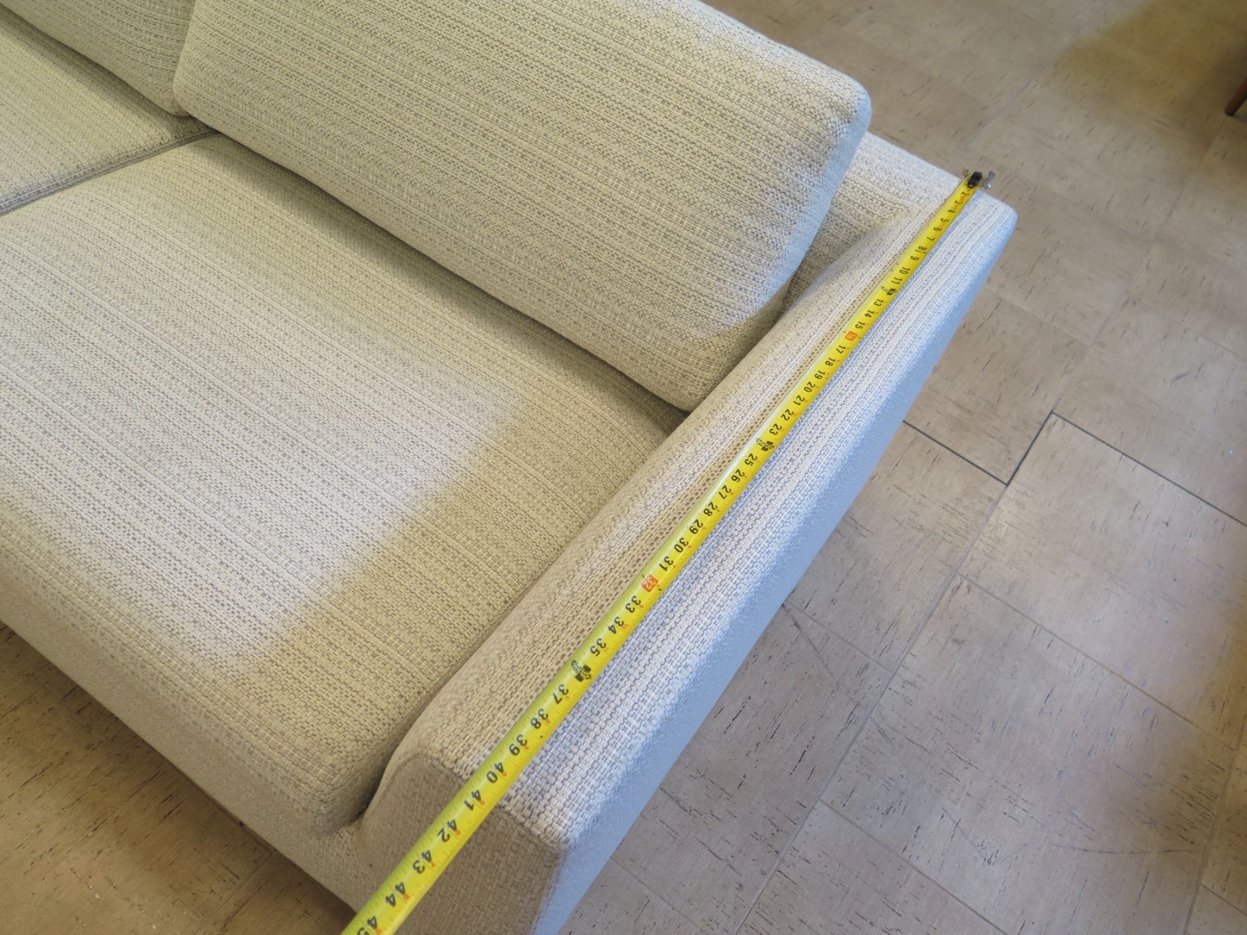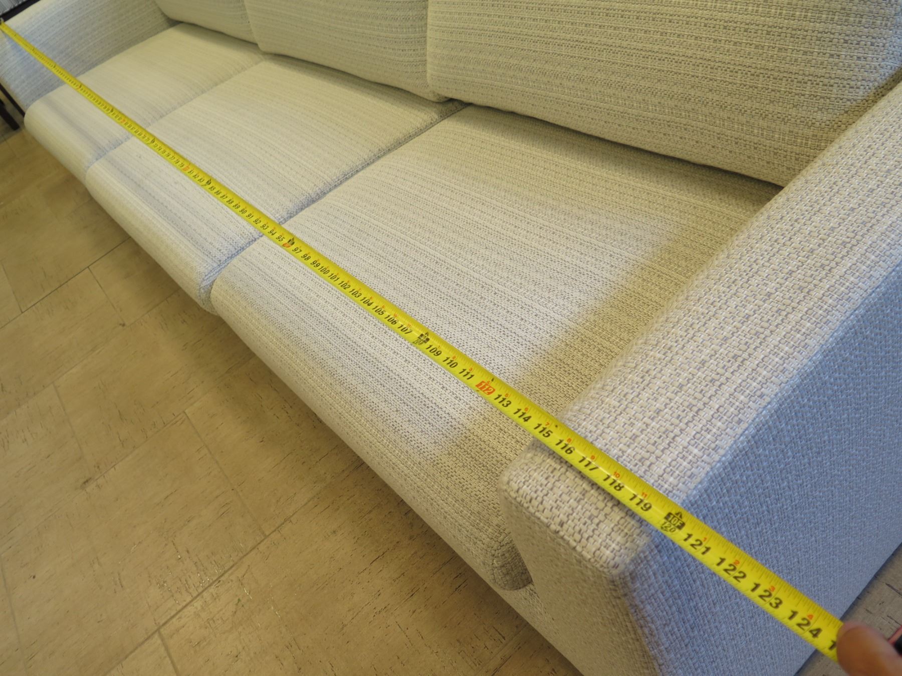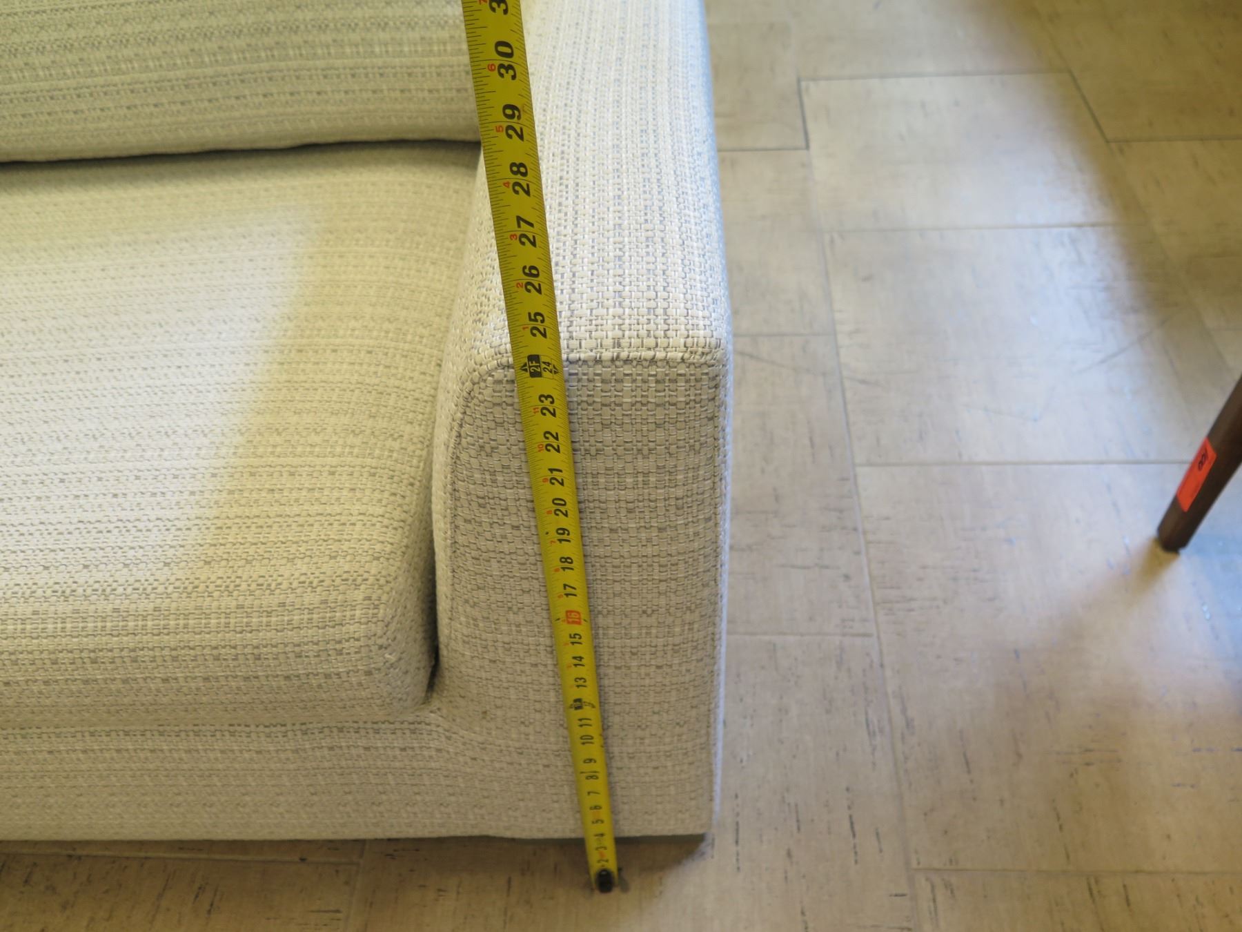 Restoration Hardware Sofa, 10 Feet Long. See the pictures of the tape measure for other measurements.