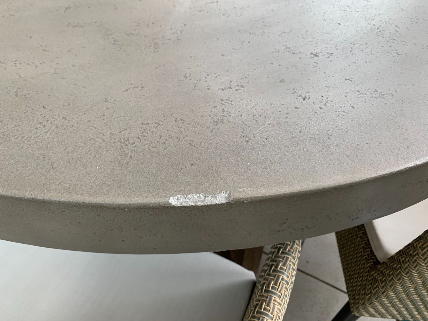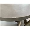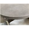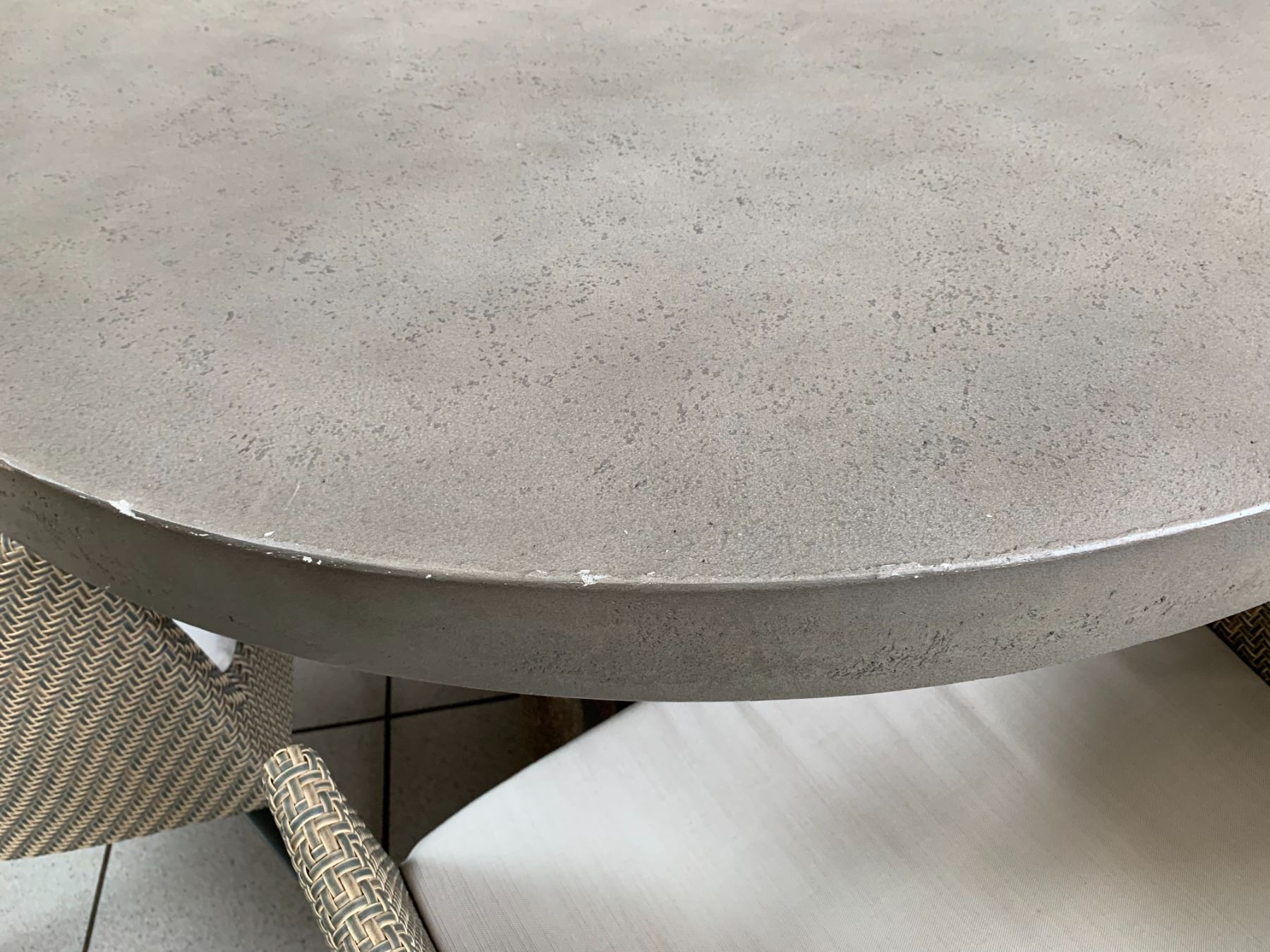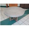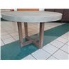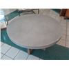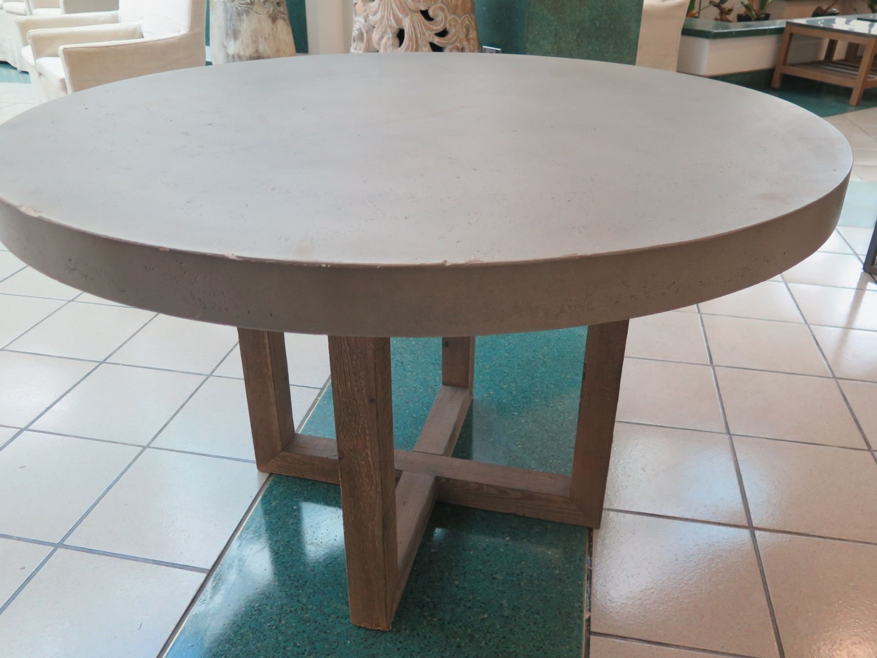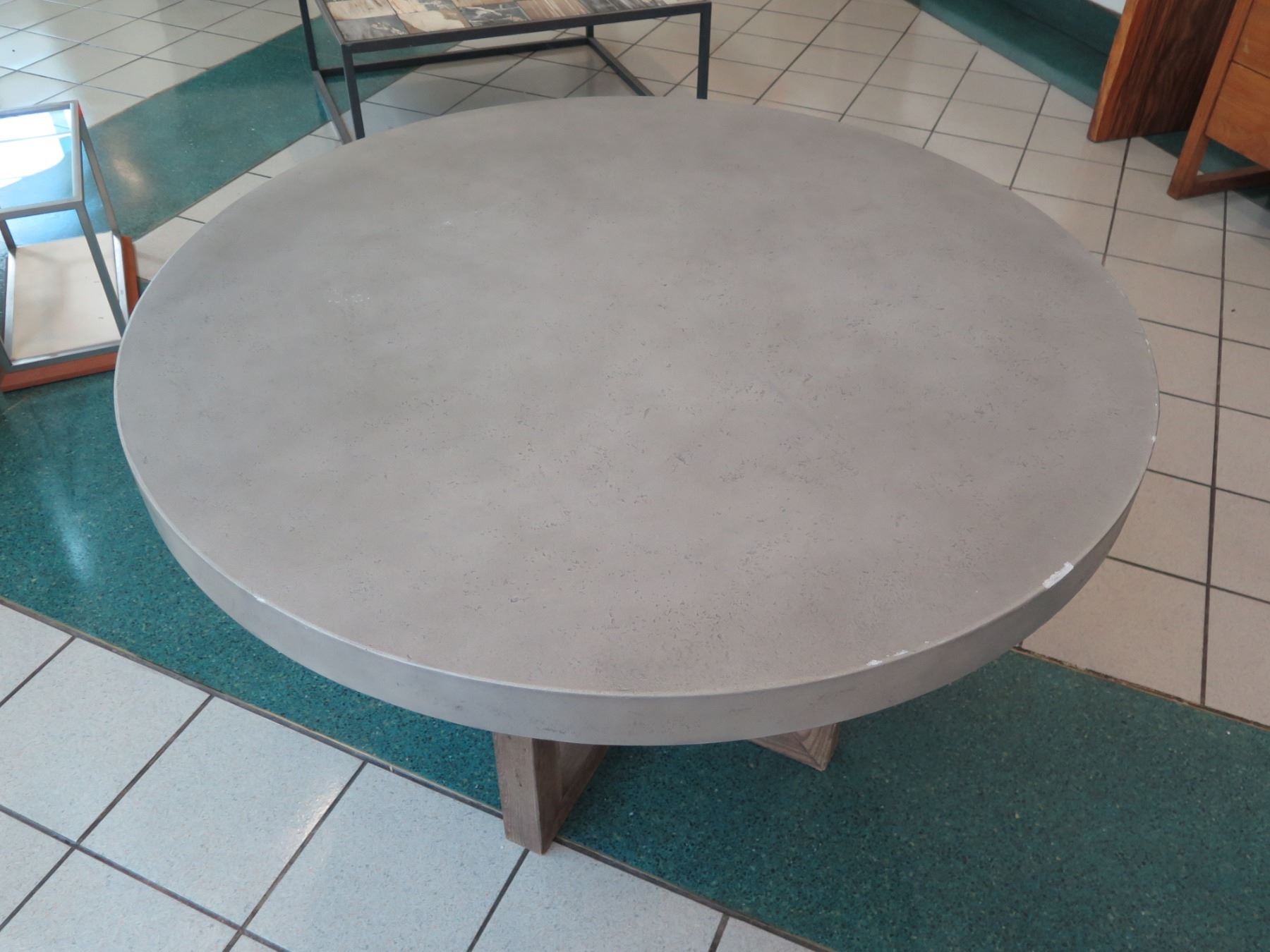 Restoration Hardware Round Table, Stone-Look Composite Top w/ Wooden Base, 48" Dia, 30"H. Shows wear along edges (as shown in the pictures).