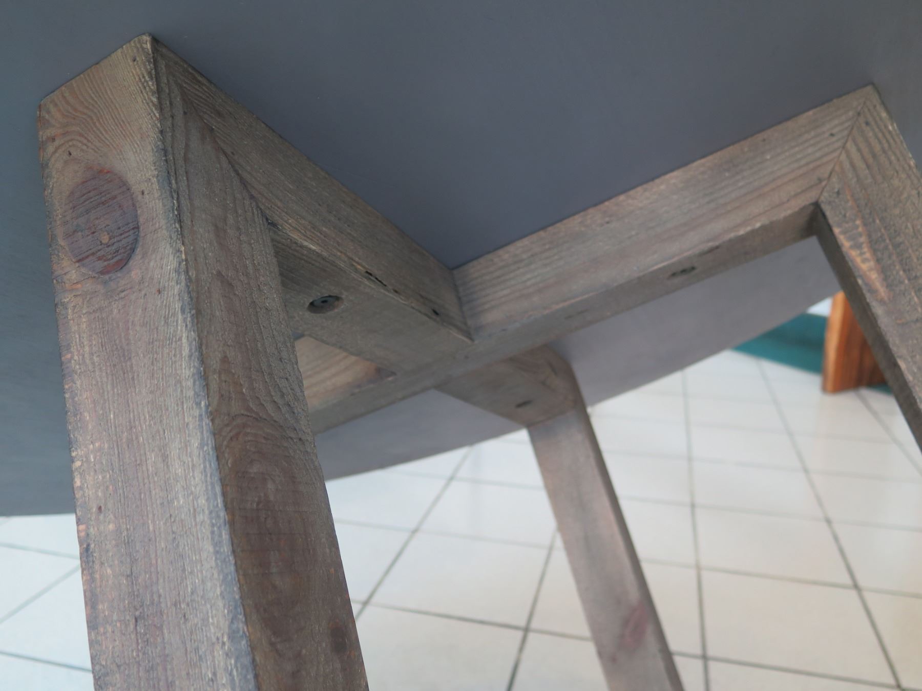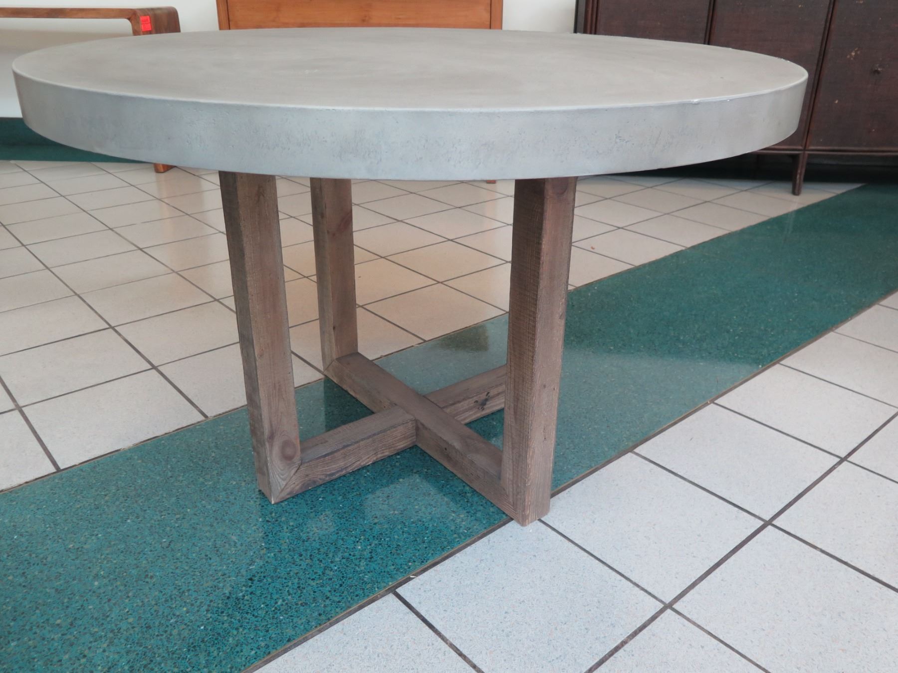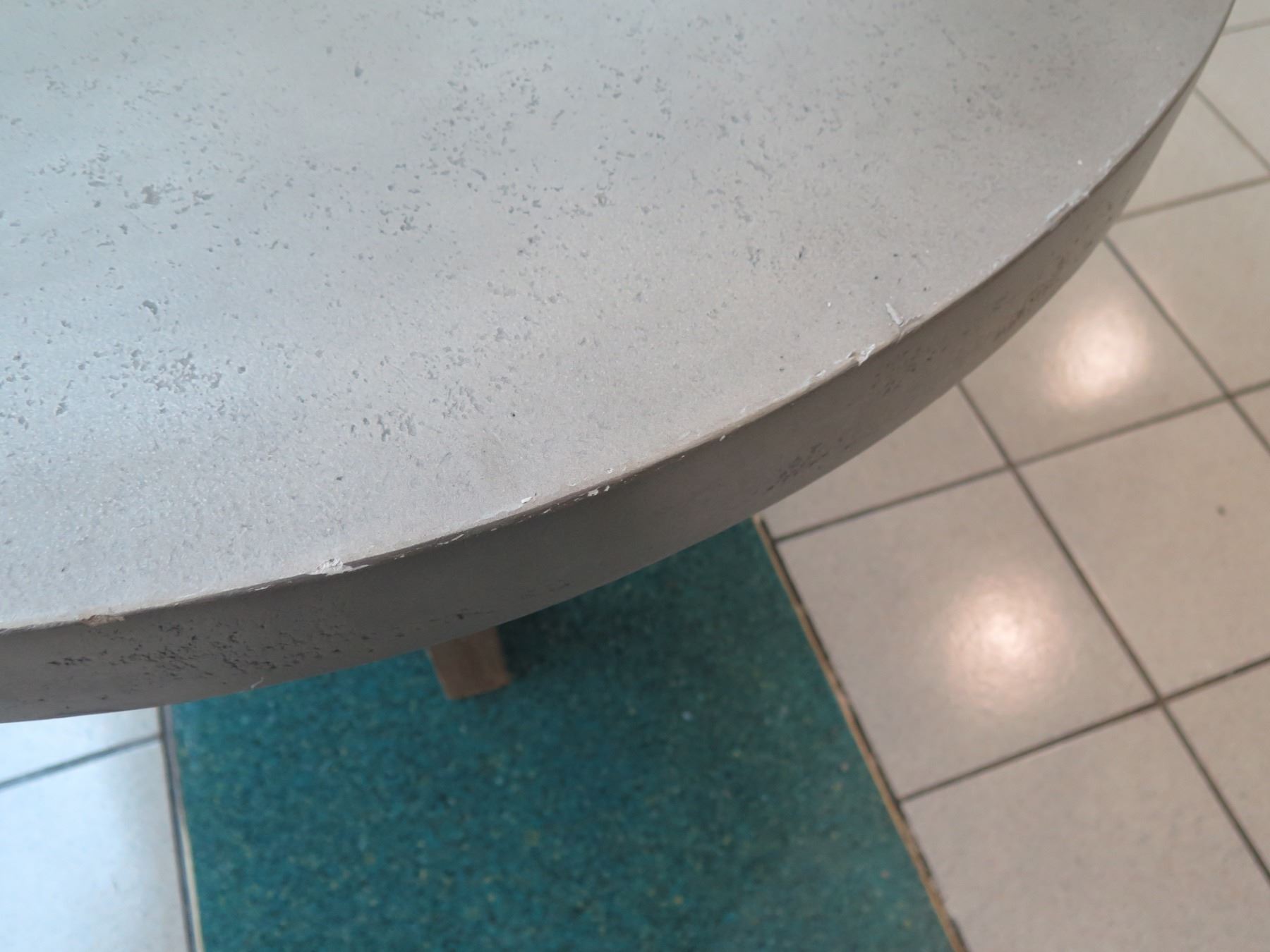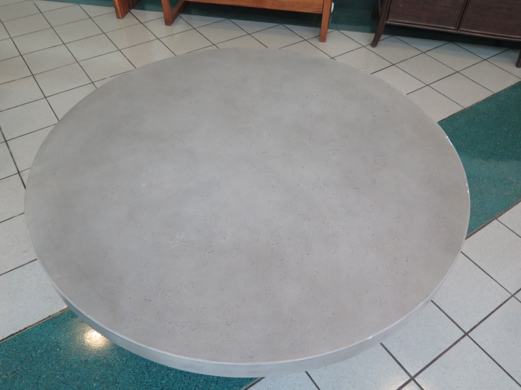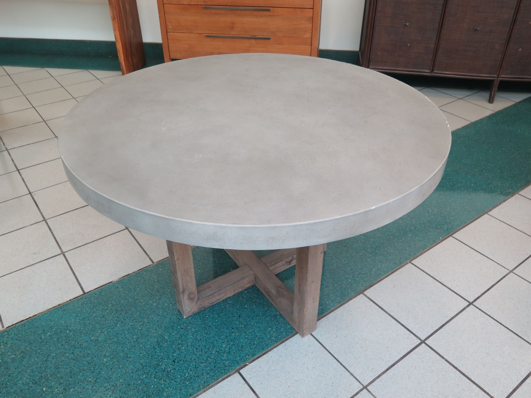 Restoration Hardware Round Table, Stone-Look Composite Top w/ Wooden Base, 48" Dia, 30"H. Shows wear along edges (as shown in the pictures).