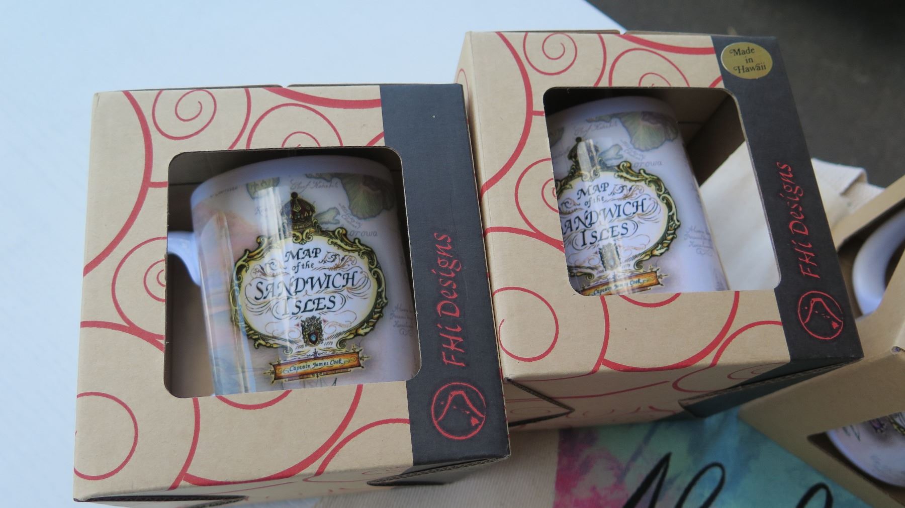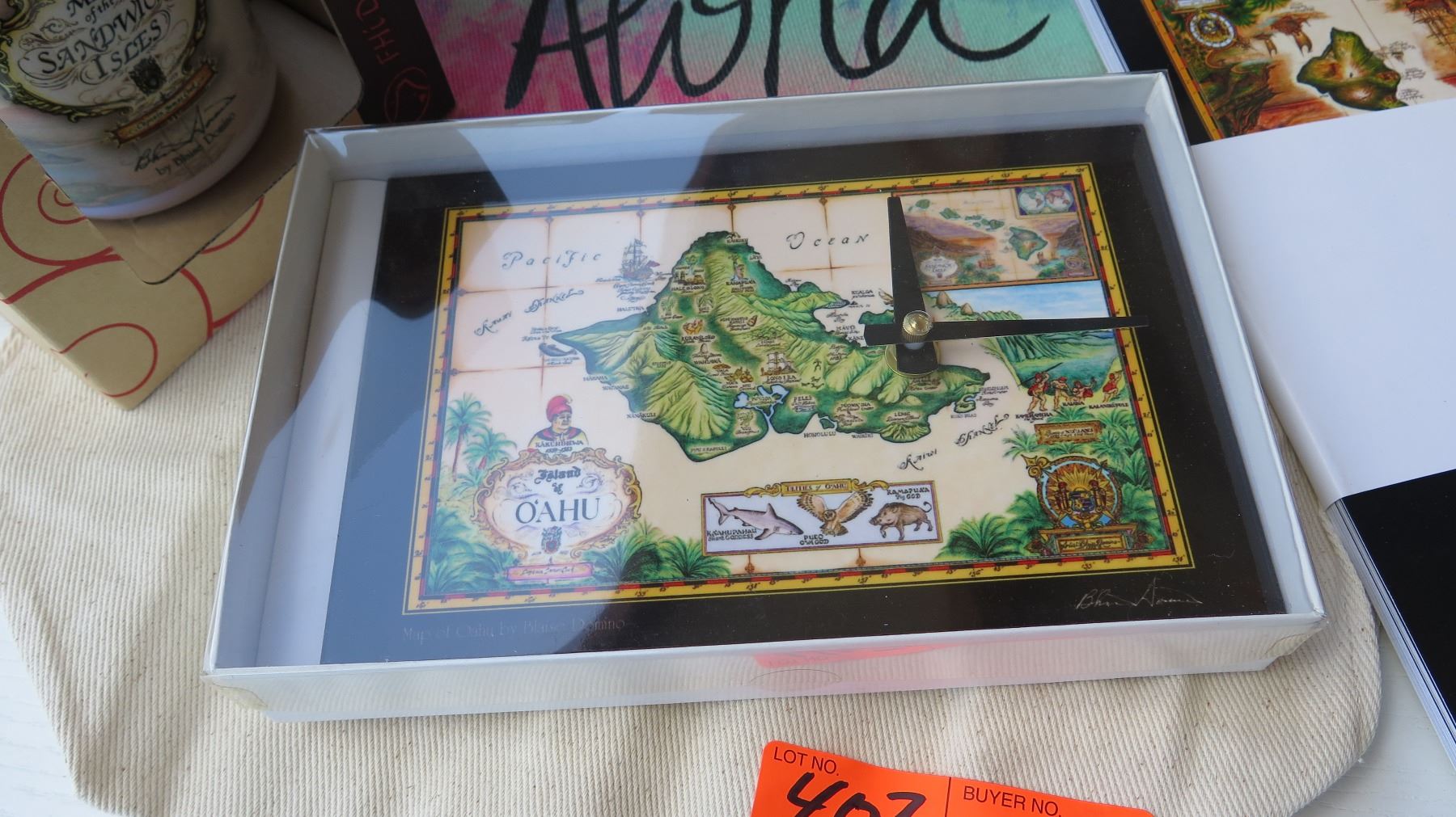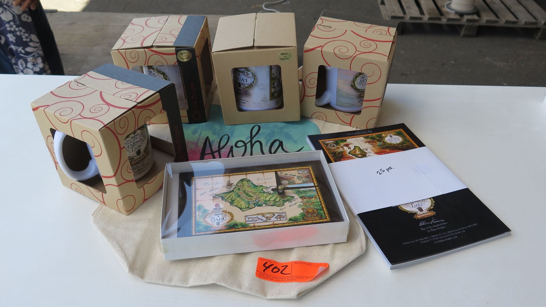 Retail Mdse: Blaise Domino Mugs (4 qty), Oahu Clock, 25 Sandwich Isles Note Cards