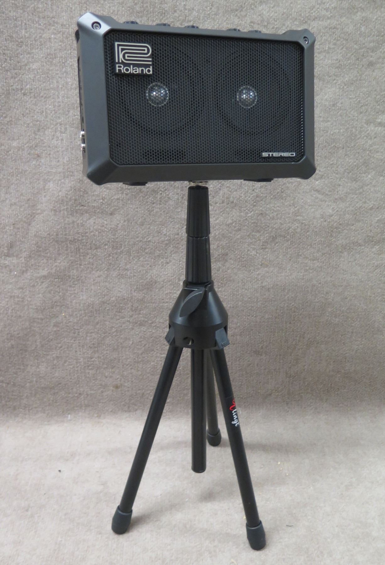 Roland Stereo E4M3296 Mobile Cube Amplifier on Tripod Stand