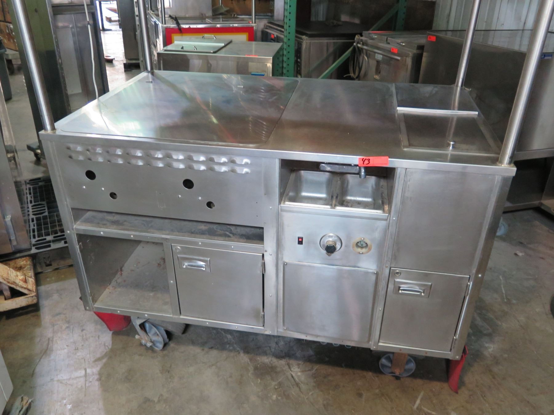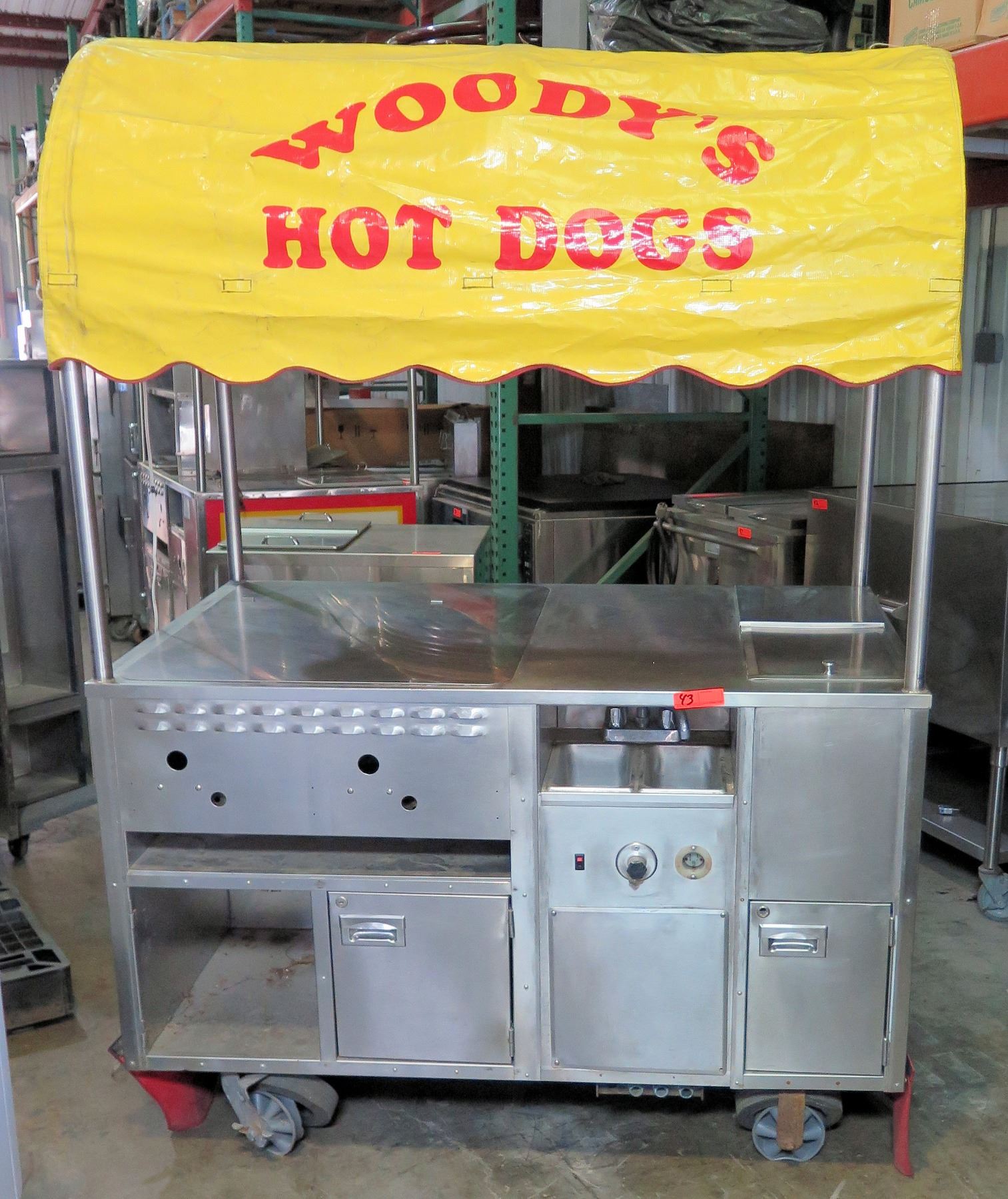 Rolling Hot Dog Cart w/ Canopy 58”W x 35"D x 78”H