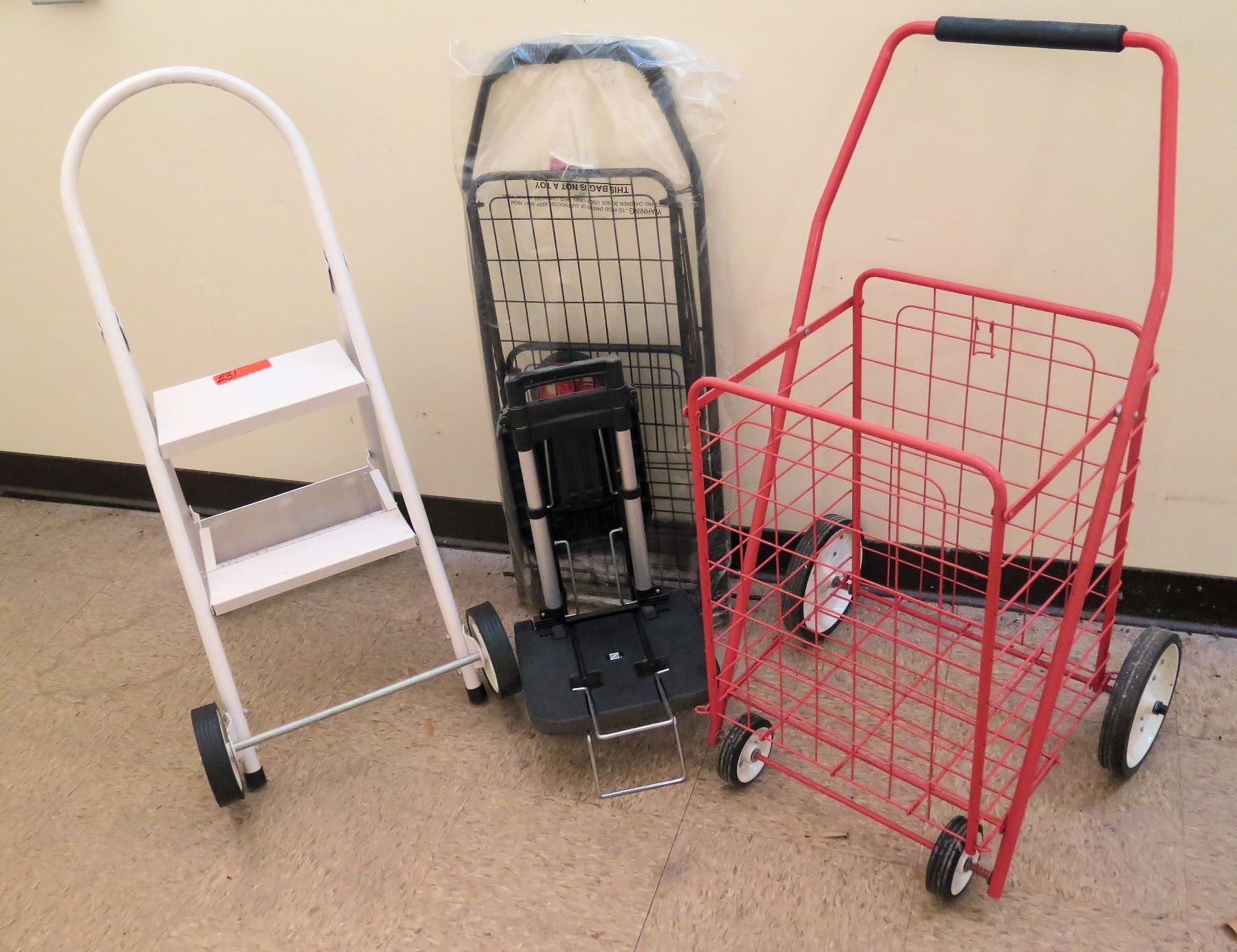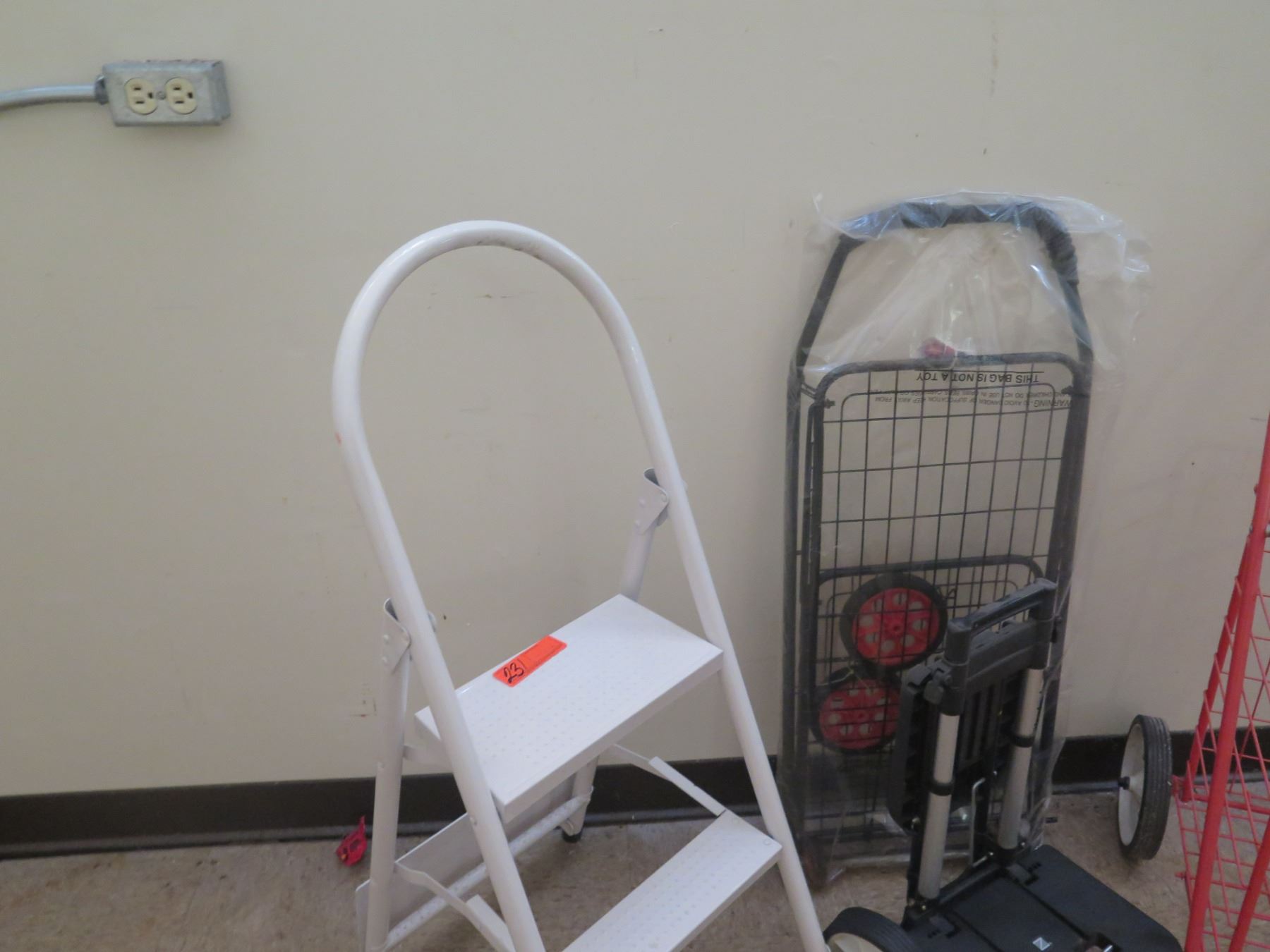 Rolling Metal 2 Stair Stepstool w/ 2 Metal Mesh Rolling Carts