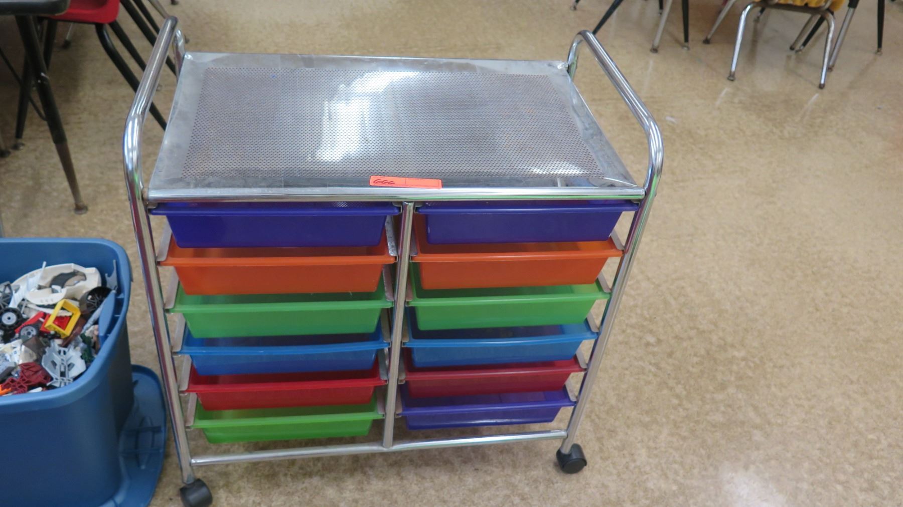 Rolling Metal Cart w/ Colored Bins